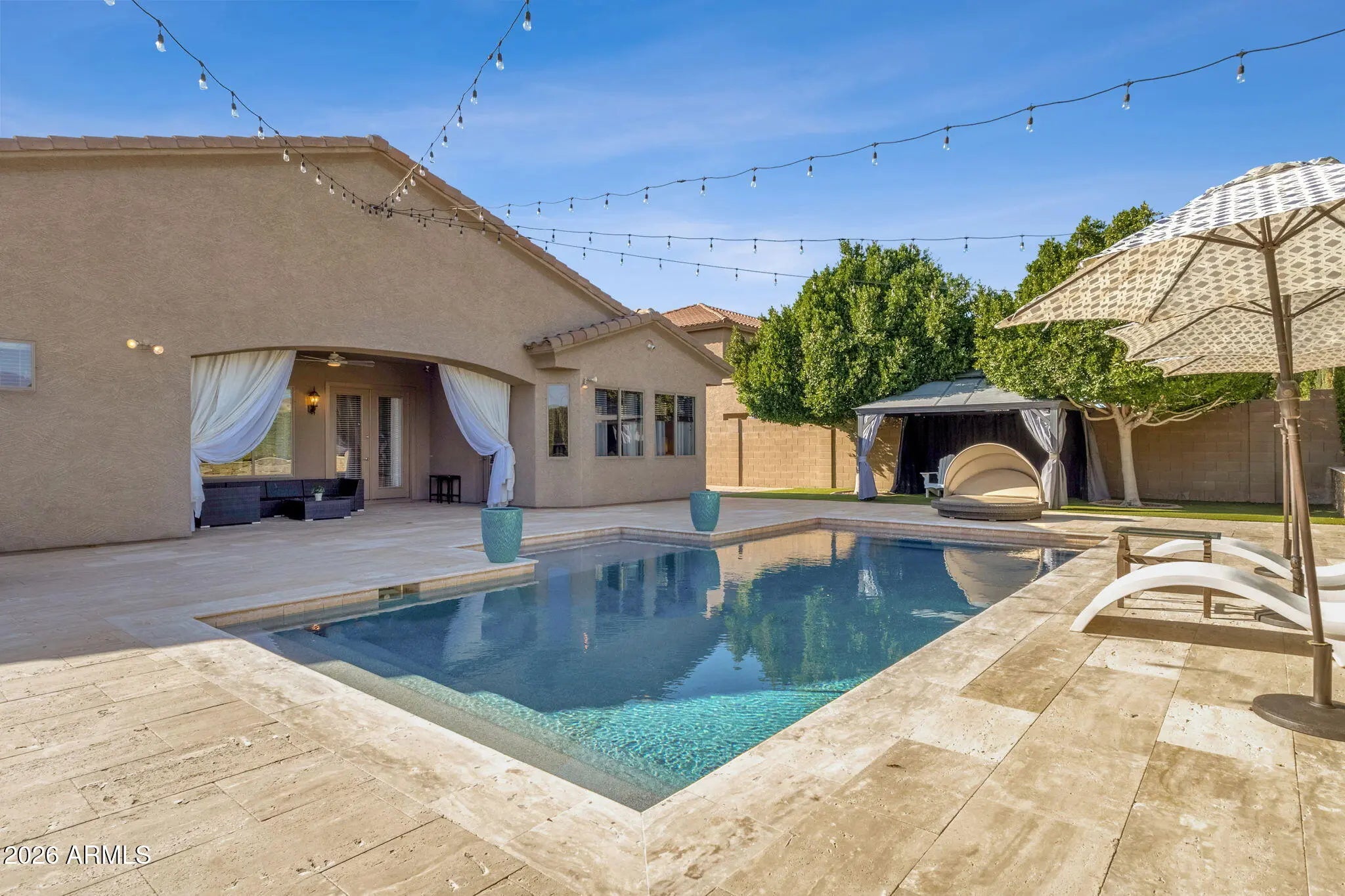 Immaculate single-level home with resort-style backyard in Valley Vista. Welcome to this beautifully updated residence tucked away in the desirable Valley Vista community of North Phoenix. Built in 2008 and thoughtfully renovated throughout, this home offers a flexible, spacious floor plan designed for both everyday living and memorable entertaining. Featuring 4 bedrooms and 3 full baths, one secondary bedroom is currently opened to the primary suite and used as a private sitting room—easily converted back to a true fourth bedroom if desired. he layout includes a welcoming family room with a striking fireplace and custom beverage center complete with a wine refrigerator, a separate den ideal for a home office or media room, and a living/dining space currently styled as an expansive game room. A 3-car garage and RV gate with remote access add rare functionality. Step outside and discover a backyard that truly sets this home apart. Backing to the canal for added privacy, the outdoor space feels like a private retreat with a gorgeous pool, expansive pavered deck, built-in BBQ, fire pit, covered patio, and a separate covered gazeboperfect for relaxing, entertaining, or hosting unforgettable gatherings year-round. Located in North Phoenix with convenient access to shopping, dining, outdoor recreation, and major commuting routes, this home is also minutes from the rapidly expanding TSMC semiconductor facility, making it especially appealing for professionals seeking a high-quality home close to one of the area's largest and most influential employment centers. Homes like this don't come along often