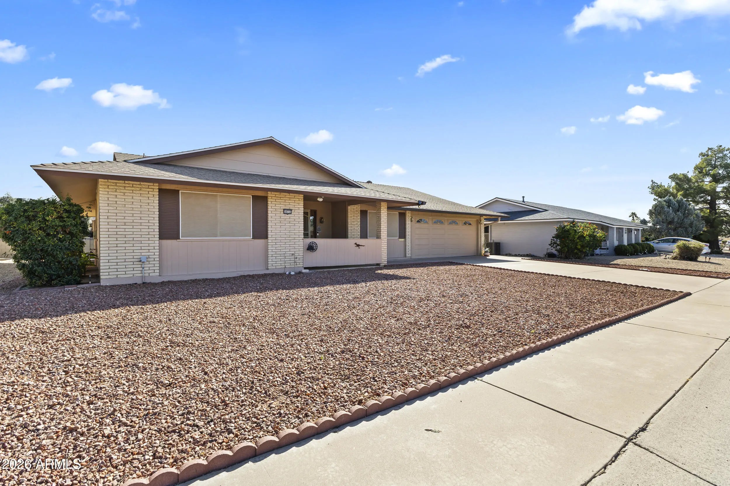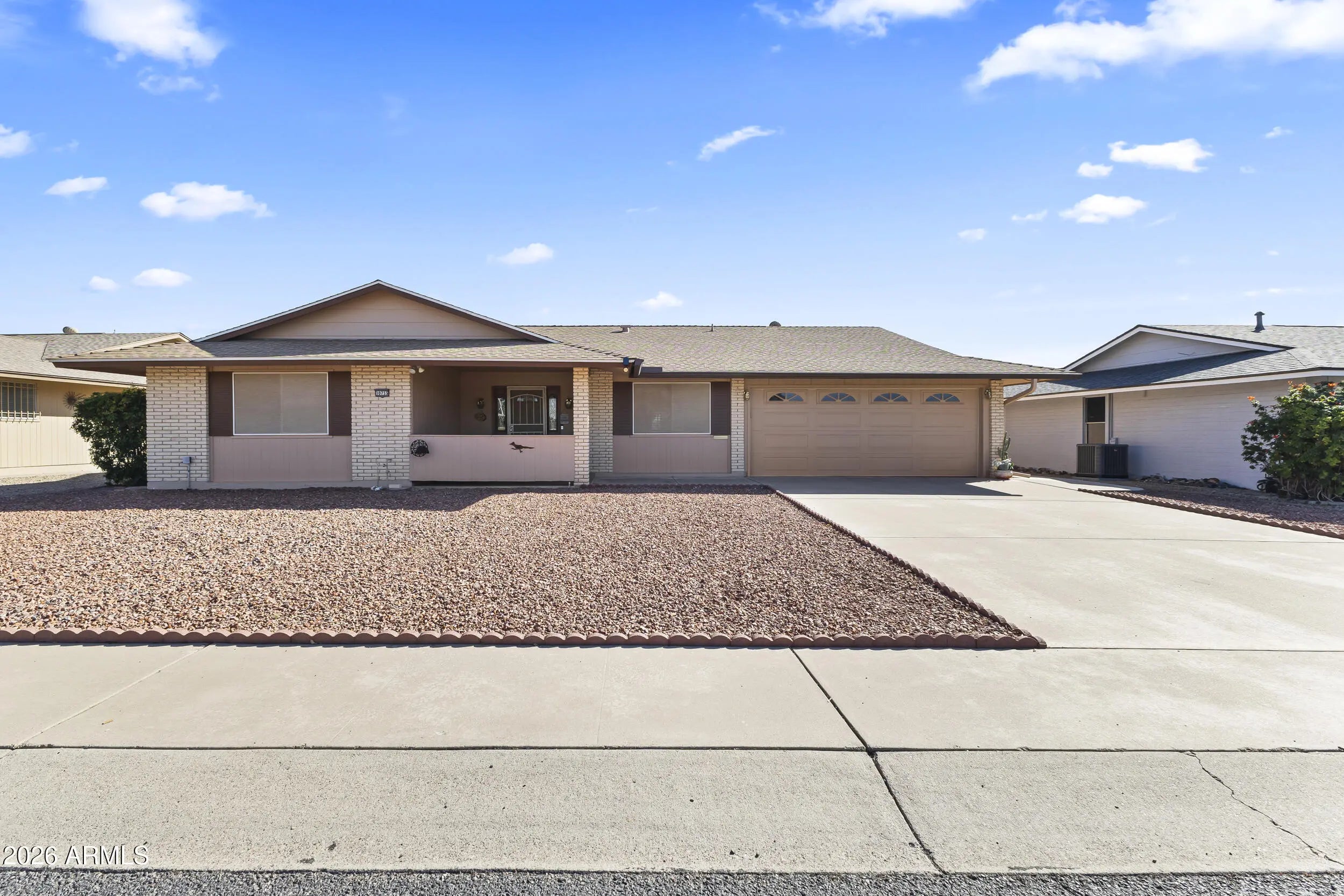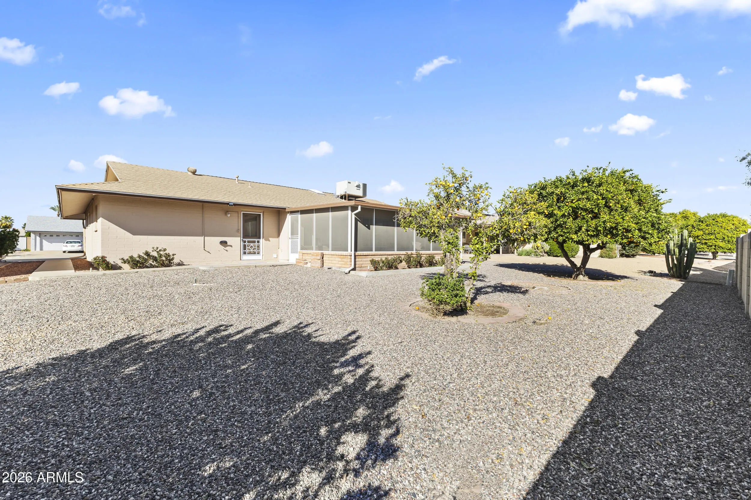 Immaculate 2 bed, 2 bath home w/ extended living space, UNDER $300K! Light & bright floorplan w/ fresh interior paint. The eat-in kitchen includes a wall-mounted oven, electric cooktop, dishwasher & disposal, providing a functional & inviting place to eat. The owner's suite has a built-in vanity, convenient linen cabinet & walk-in closet. Outside you'll love the desert landscaping, orange trees & huge Arizona room w/ tile flooring & screens. Perfect for entertaining & enjoying our beautiful AZ weather! There's also a 2-car garage w/ attached cabinets, insulated door & huge utility room. Plus, this is one of the most meticulously maintained homes in the entire community! Enjoy all the premier Sun City amenities, close to shopping, dining, medical & entertainment. Welcome home!