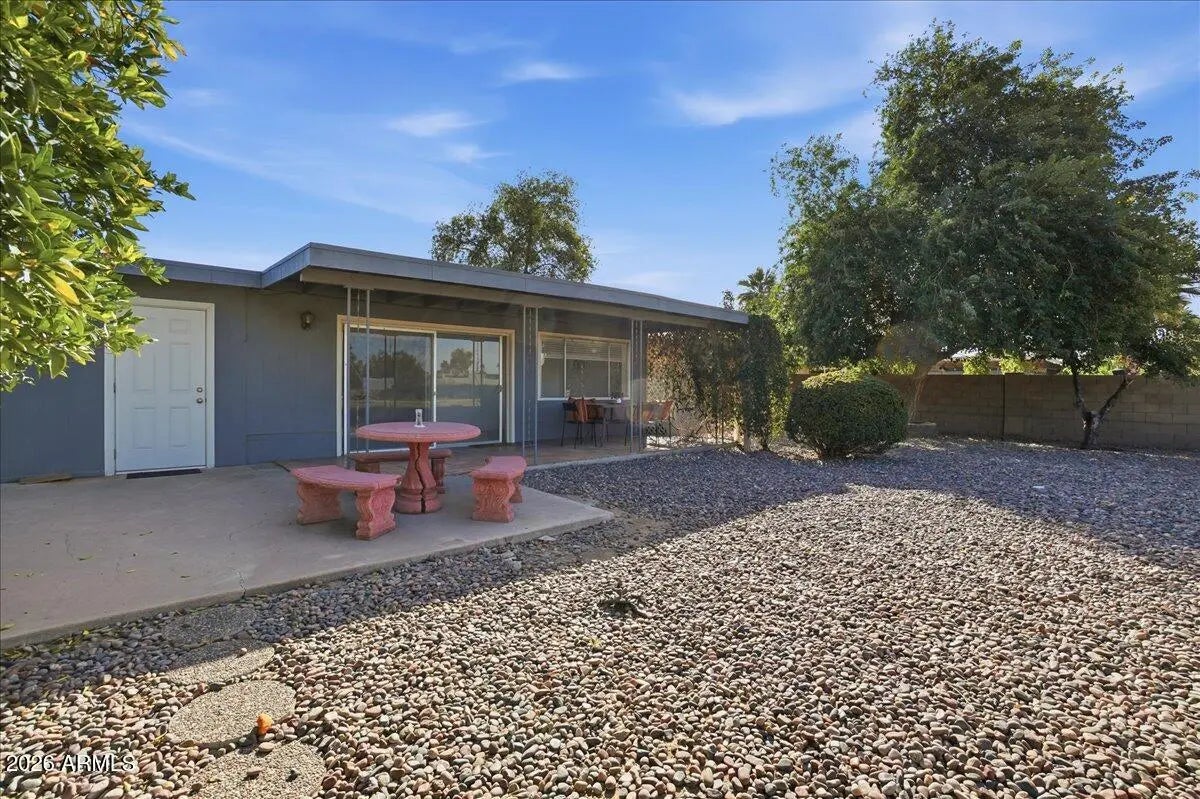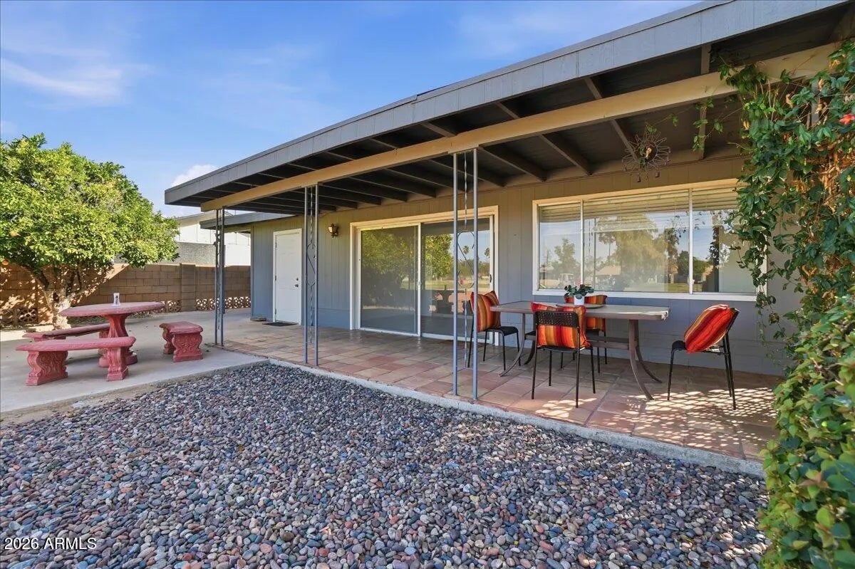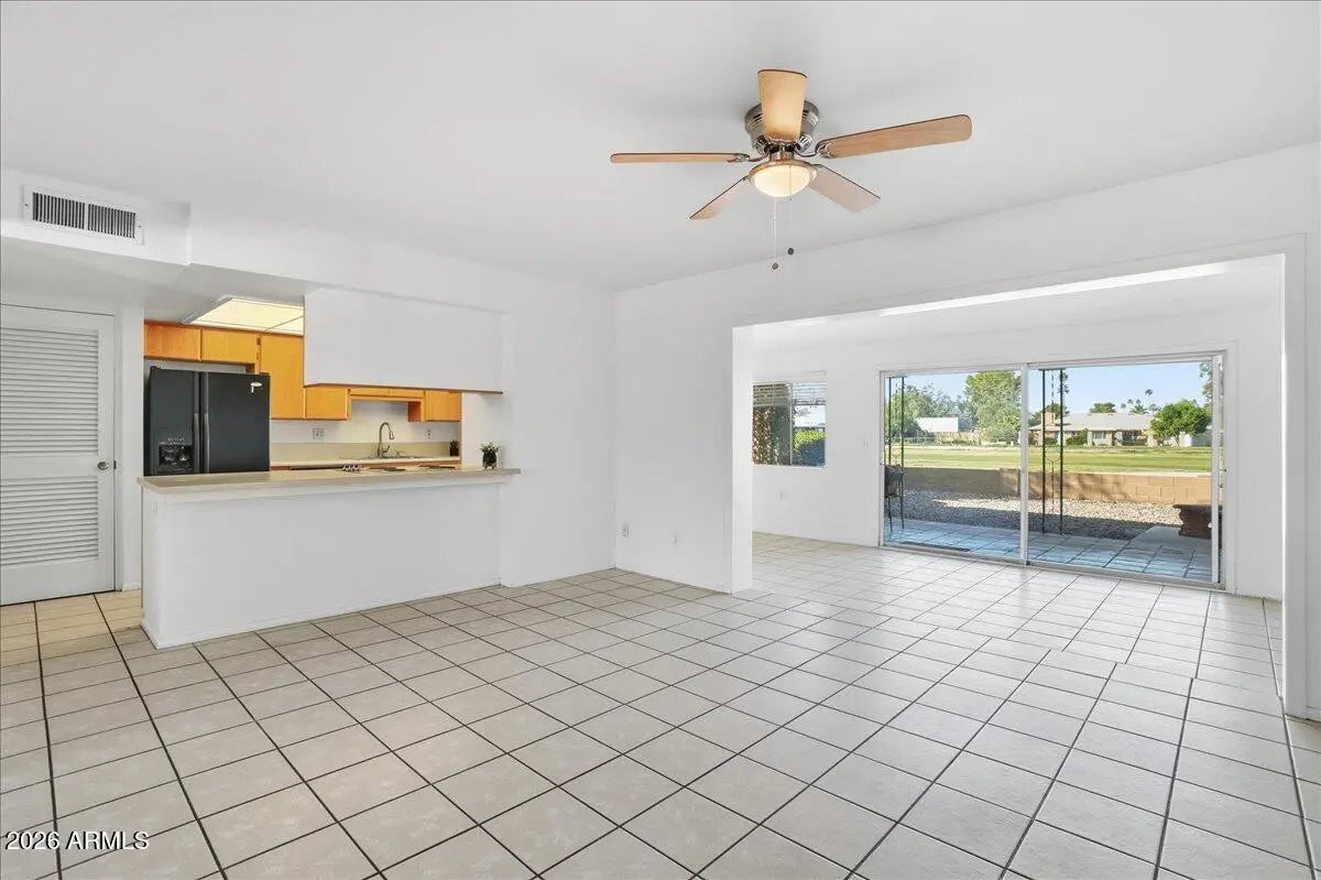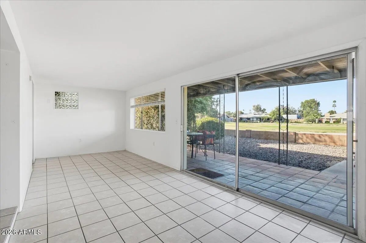 Welcome to this bright and spacious 3-bedroom, 2-bath home located in a desirable golf course community. The home offers multiple living spaces, including a comfortable living room, generous dining area, and an enclosed Arizona room providing flexible space for relaxing, working, or entertaining. The backyard backs the golf course, offering open views along with a covered patio and mature trees for shade and privacy. Interior features include large, light-filled bedrooms with vinyl and tile flooring, plus recent updates including fresh interior paint, new ceiling fans, and new window blinds. A one-car garage with additional space offers room for storage or a workshop. Conveniently located near US-60 with easy access to shopping and dining.
