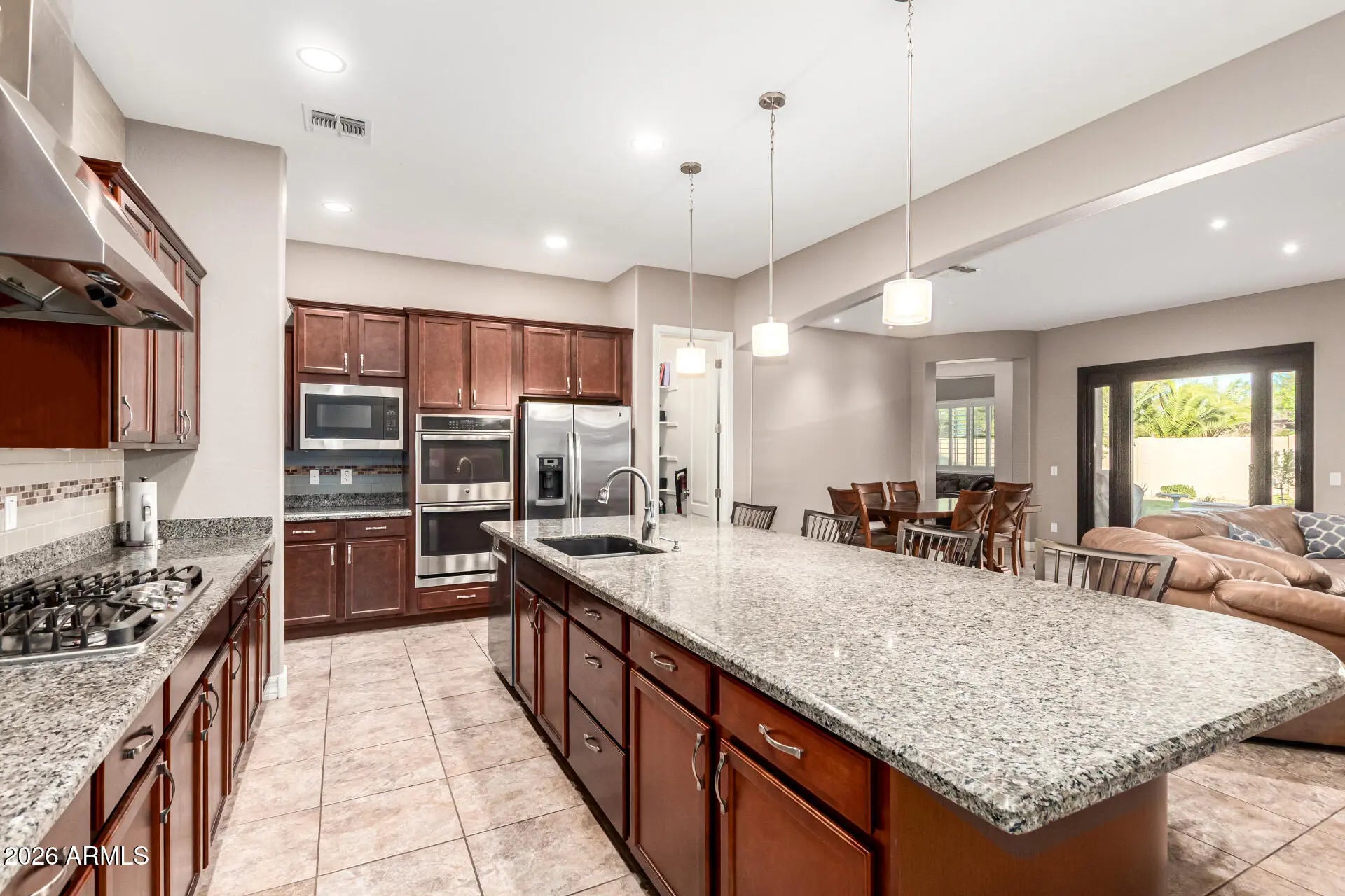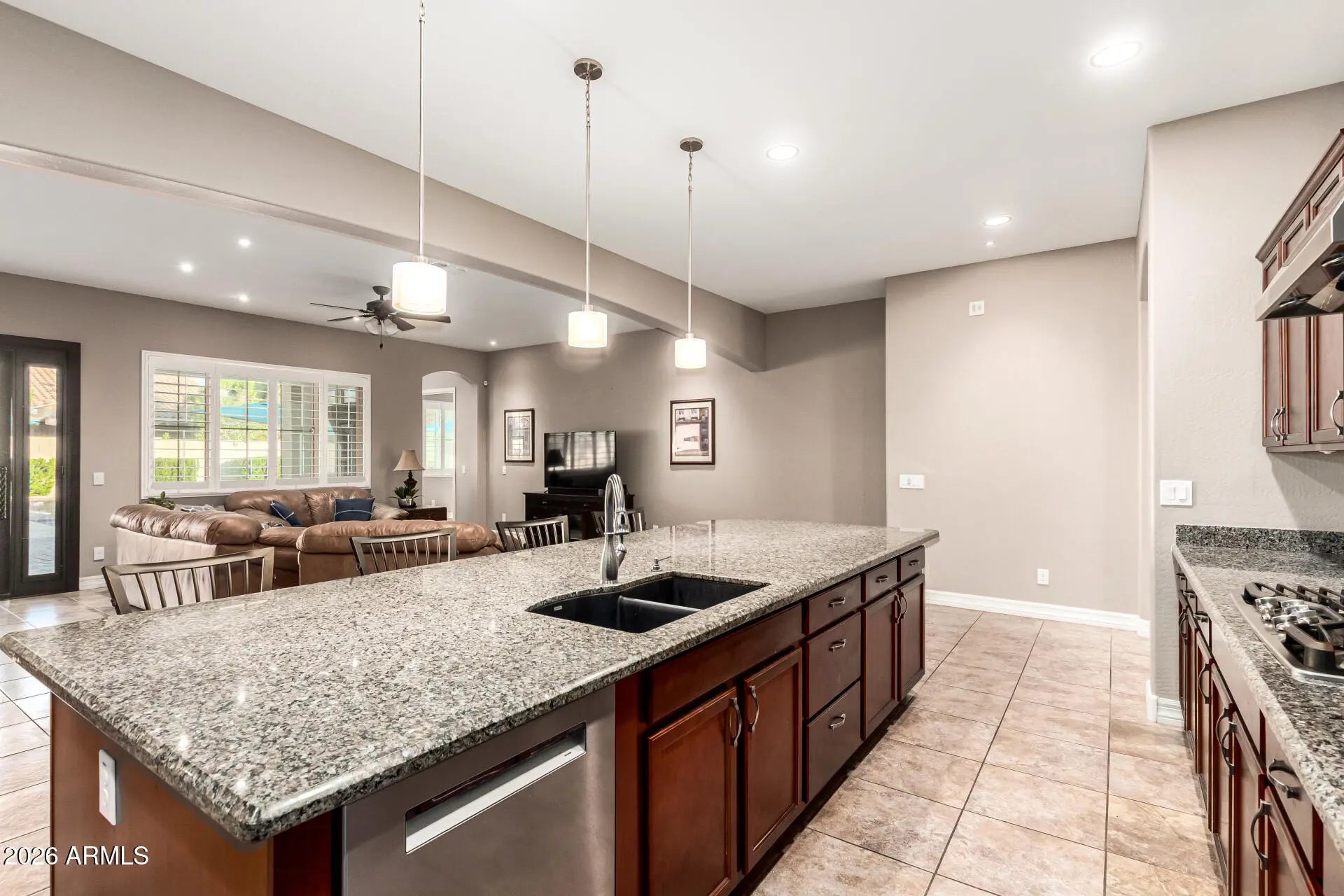 Here's your golden key into Layton Lakes... one of the most sought-after gated communities straddling the sweet spot between Gilbert and Chandler. This 3,500 sq ft stunner brings the space, style, and the solitude! Double 2-car garages? Yep! Massive iron-and-glass front & back doors? You bet! Inside, the grand foyer welcomes you to formal dining, from there, the layout flows in three smart directions: office + laundry wing, guest quarters, and the oversized kitchen/great room combo built for connection! Need a bonus space? There's a flex room with built-in cabinets plus a guest suite with its own bath! The owner's suite? Spacious, private, & all yours. Custom shutters are throughout this home, just in case you like your sunlight filtered & classy. Out back... ...Out back, you'll catch sunrises from the covered patio, chip a few on the putting green, or cool off in your sparkling pool. Location? You're minutes from freeways, the fancy Fry's, Target runs, and date nights! Thanks for taking a look!