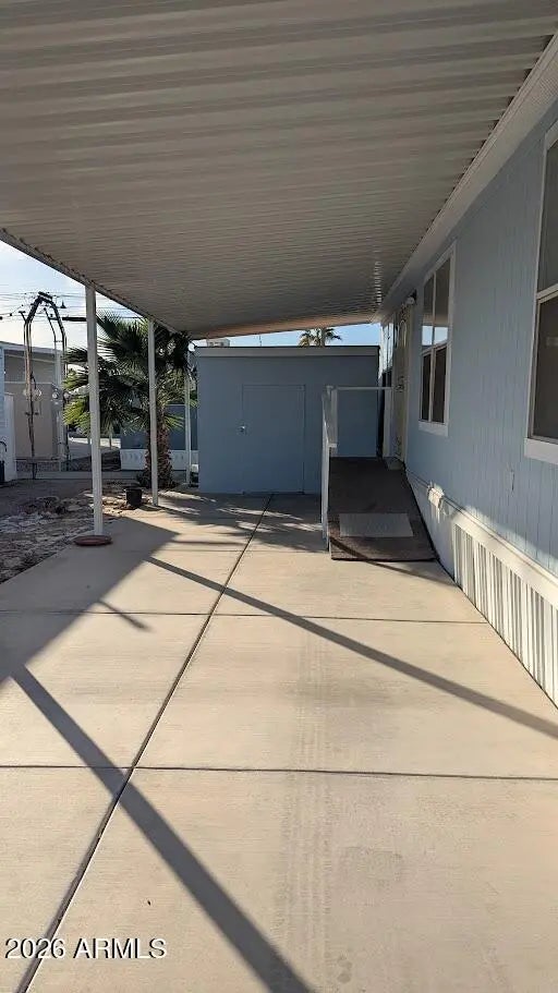Wow! This 3-bedroom home offers a warm, inviting place to call home and connect with the community. Ample storage is provided with two storage units one on each side, along with a convenient ramp on the south side. Enjoy flexible covered space with two carports or a carport and patio option. The open kitchen flows seamlessly into the living room and comes complete with quality appliances included in the sale perfect for everyday living and entertaining. Agave Village is a gated 55+ community offering a wide range of amenities, including two heated pools, hot tubs, community center, fitness room, pickleball, bocce ball, shuffleboard, computer room, community park, barbecue pavilion, and planned activities.
