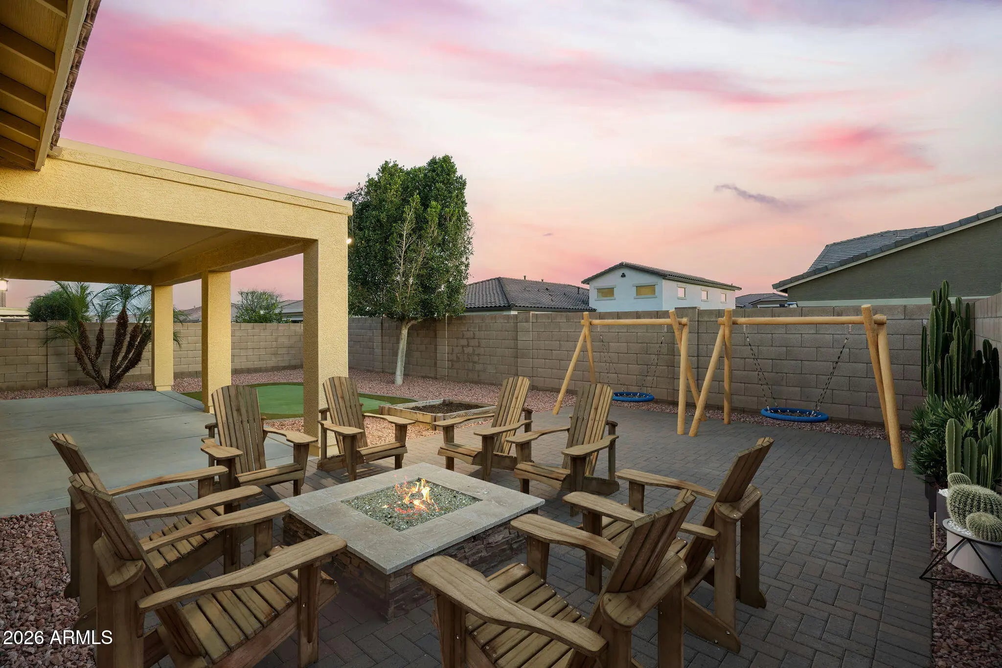 STUNNING TURNKEY HOME Pride of ownership shines in this beautifully maintained single-level home in Canyon Trails! This 4-bedroom, move-in ready home features granite countertops throughout, stainless steel appliances, plantation shutters, ceramic tile, ceiling fans, and custom finishes. The interior has been freshly updated with new paint and carpet prior to coming on the market, offering a clean, modern feel buyers will love. The backyard is designed for entertaining and enjoying Arizona living, complete with an expansive paver patio and walkways, built-in gas firepit, custom artificial turf putting green,. Low-maintenance desert landscaping in both the front and back enhances curb appeal while keeping upkeep simple. Highly desirable Canyon Trails community!