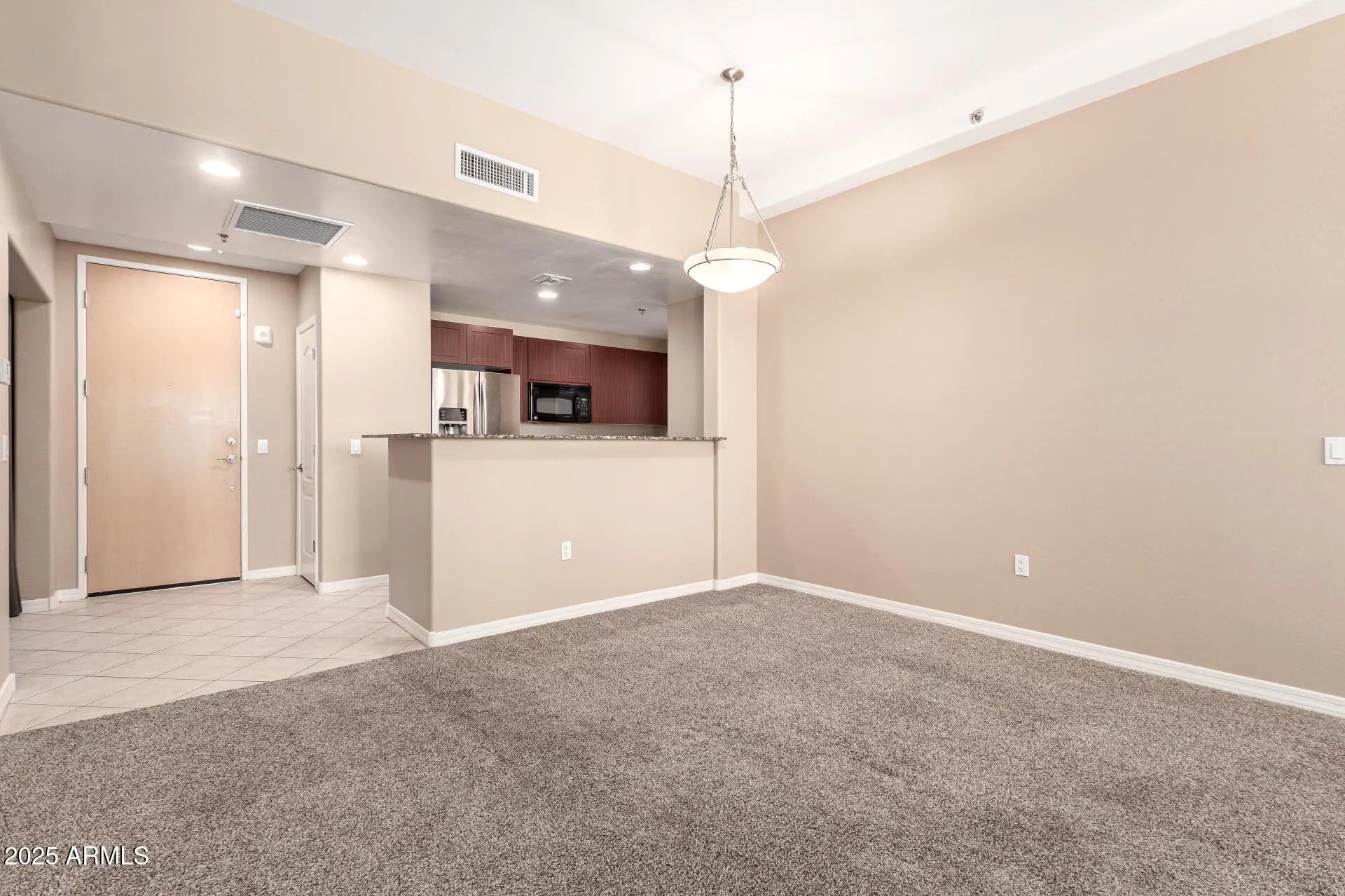Stunning 2-bedroom unit in the Tapestry on Central! Discover a tranquil living room with a soothing palette, blinds, soft carpeting, and an inviting fireplace for cozy evenings. The well-appointed kitchen comes with granite counters, a pantry, recessed lighting, built-in appliances, and a two-tier peninsula with a breakfast bar for casual dining. You'll also find a den with contemporary track lighting, offering a versatile space for work or relaxation. The tranquil primary bedroom features a walk-in closet and a private bathroom with double sinks for an efficient daily routine. Unwind on the charming balcony, boasting serene views of the surroundings. Ideally located close to downtown Phoenix, restaurants, shopping, and entertainment.