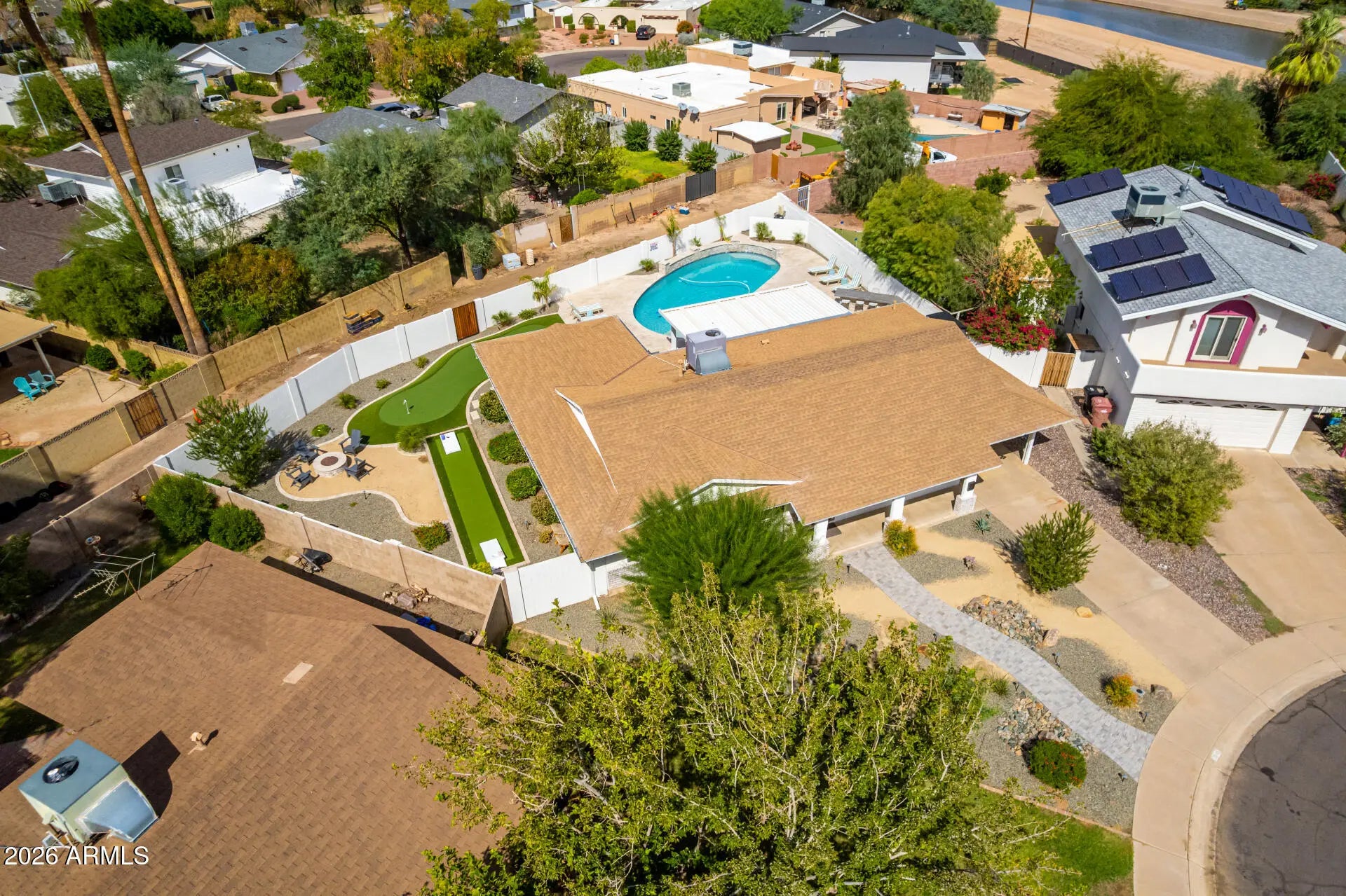 Welcome to this impeccably remodeled 4-bedroom, 2-bath home located on a quiet cul-de-sac in the coveted Park Scottsdale neighborhood. This property offers flexibility for use as a primary residence, short-term rental or vacation home. Every detail has been thoughtfully designed, blending modern finishes with timeless comfort. The open-concept floor plan showcases a designer kitchen with upgraded appliances, custom cabinetry, and sleek quartz countertops, creating a space that radiates calm and sophistication. The spacious utility room provides ample storage, new tankless water heater, a new electrical panel and an EV charger for added modern convenience. Step outside to your private backyard retreat, where thoughtful natural-stone landscaping surrounds a large heated pool, 3-hole putt