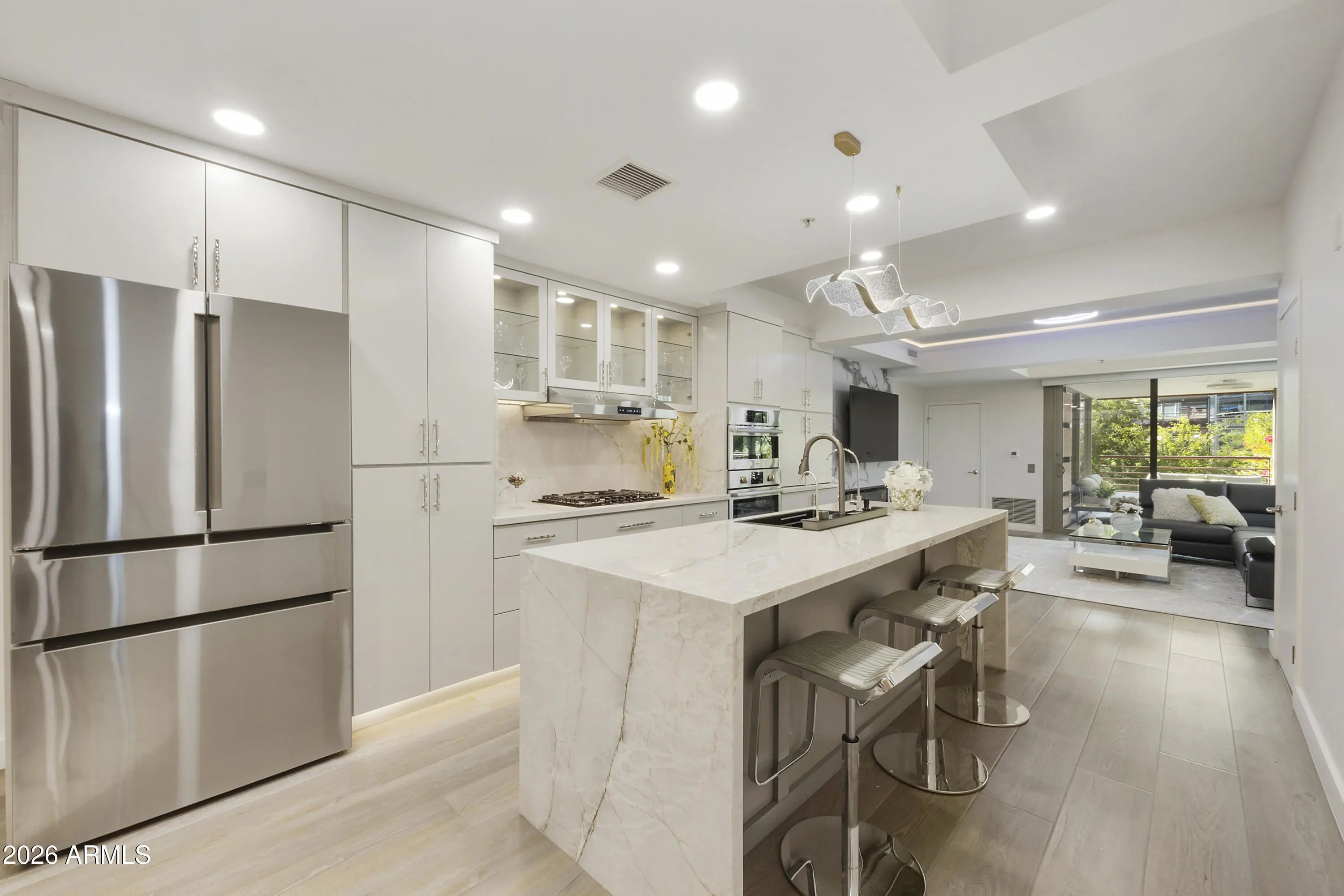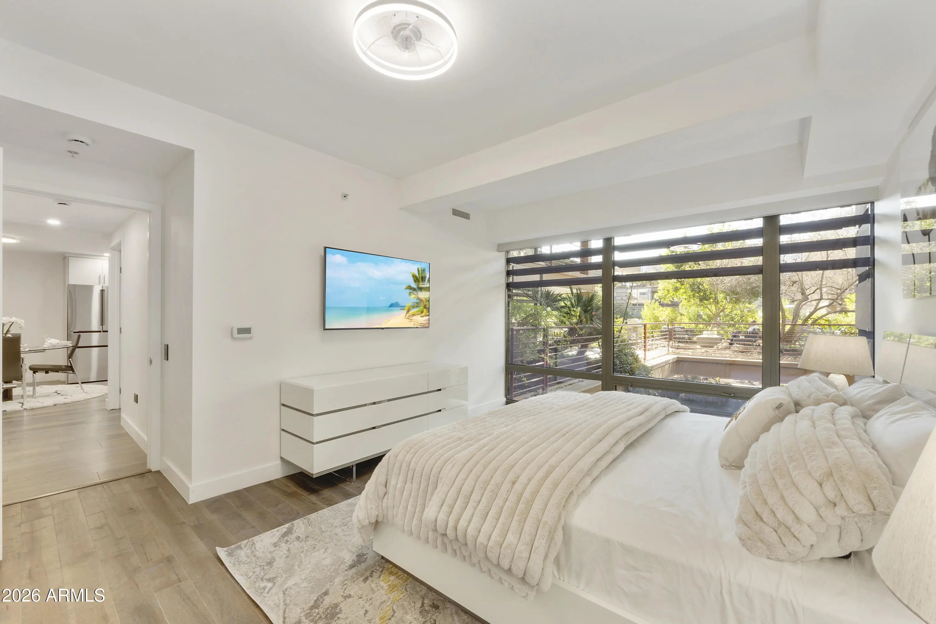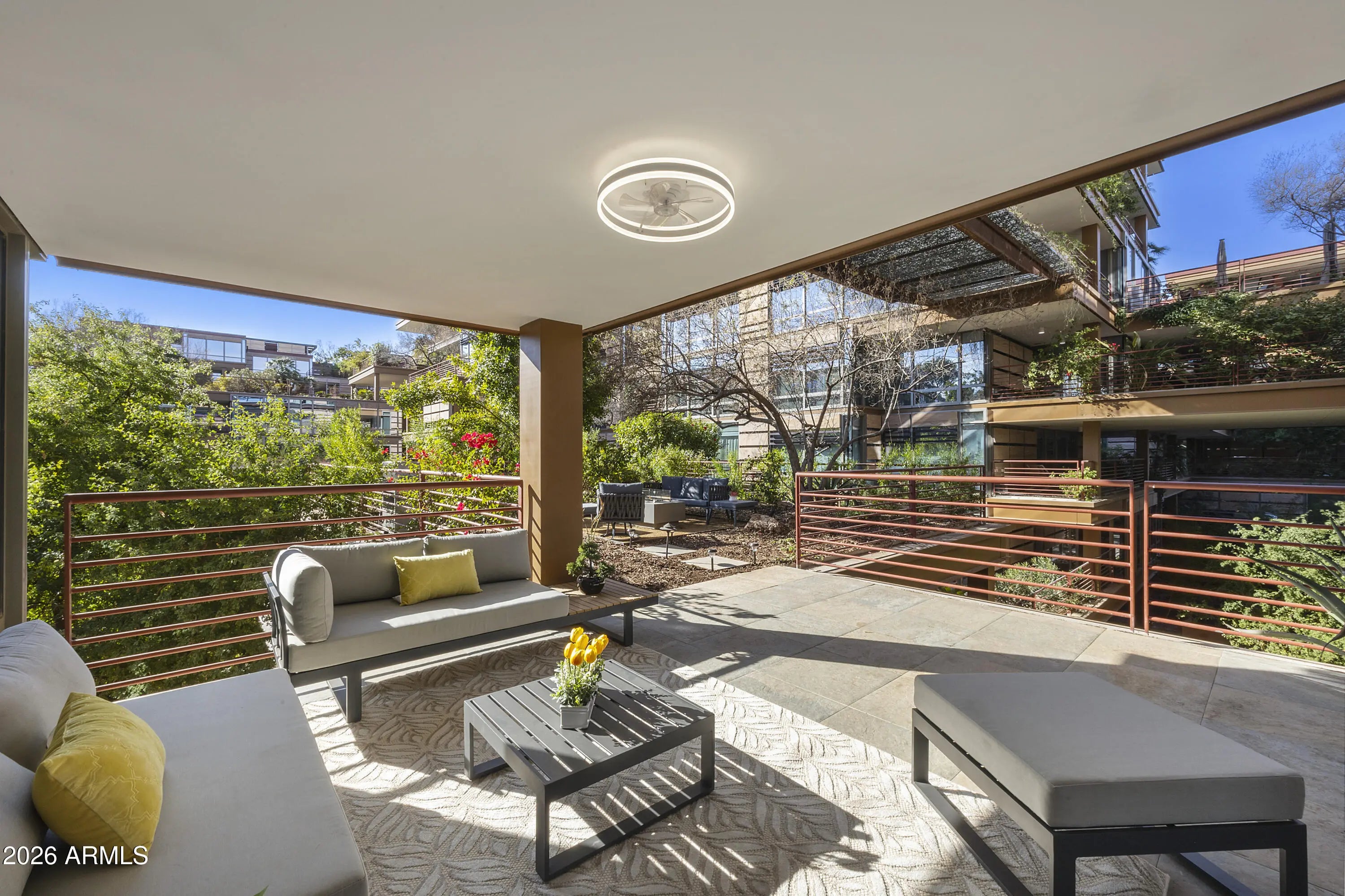 Completely renovated condo in the prestigious Optima Camelview Village! This rare gem boasts a spacious patio with a private barbecue and fire pit—perfect for entertaining. Conveniently located near the elevator, it features high-end appliances, a wine fridge, cozy fireplace, and more. All new furniture. Just steps from Fashion Square Mall and within walking distance to upscale bars and restaurants, this unique condo offers the ultimate in luxury and convenience. Don't miss this exceptional opportunity!