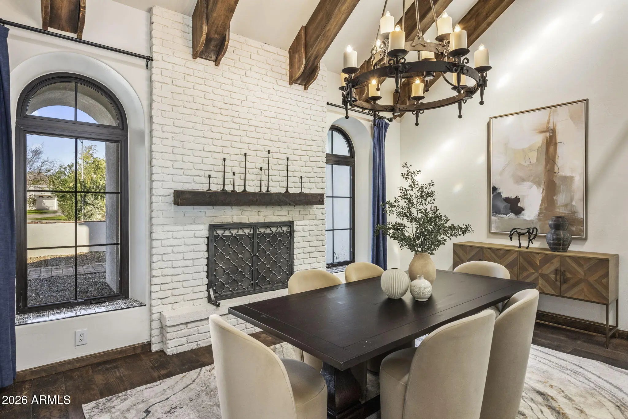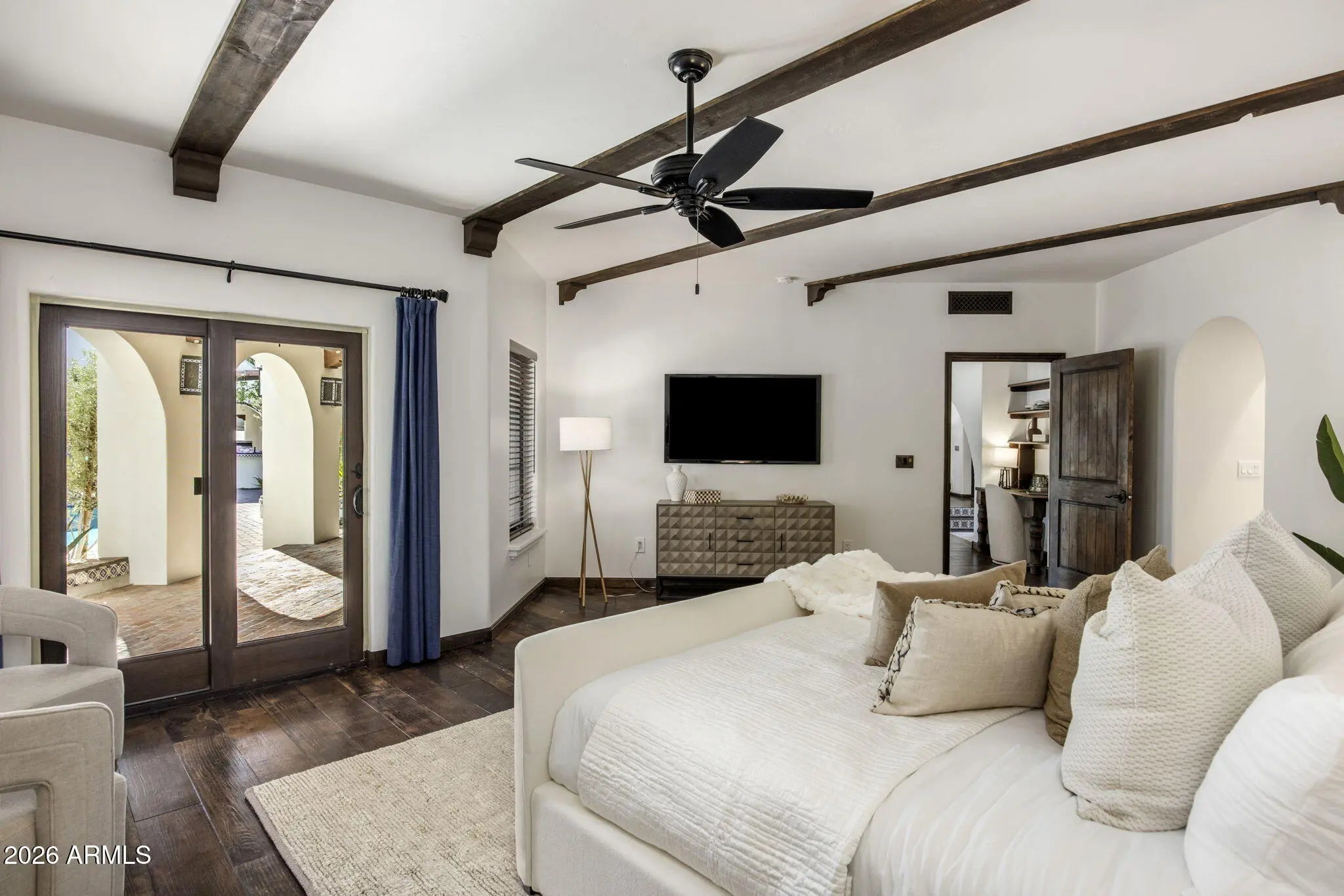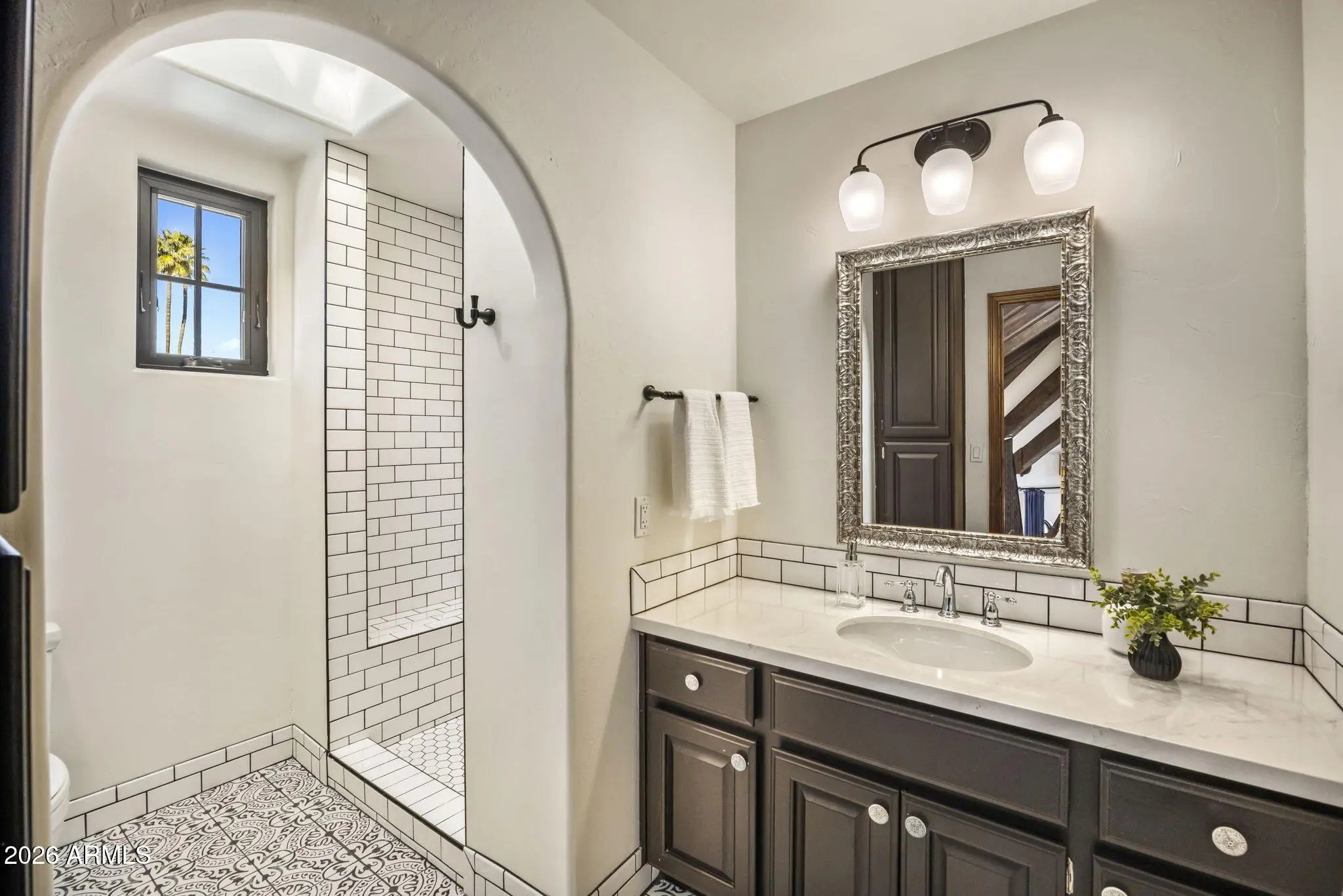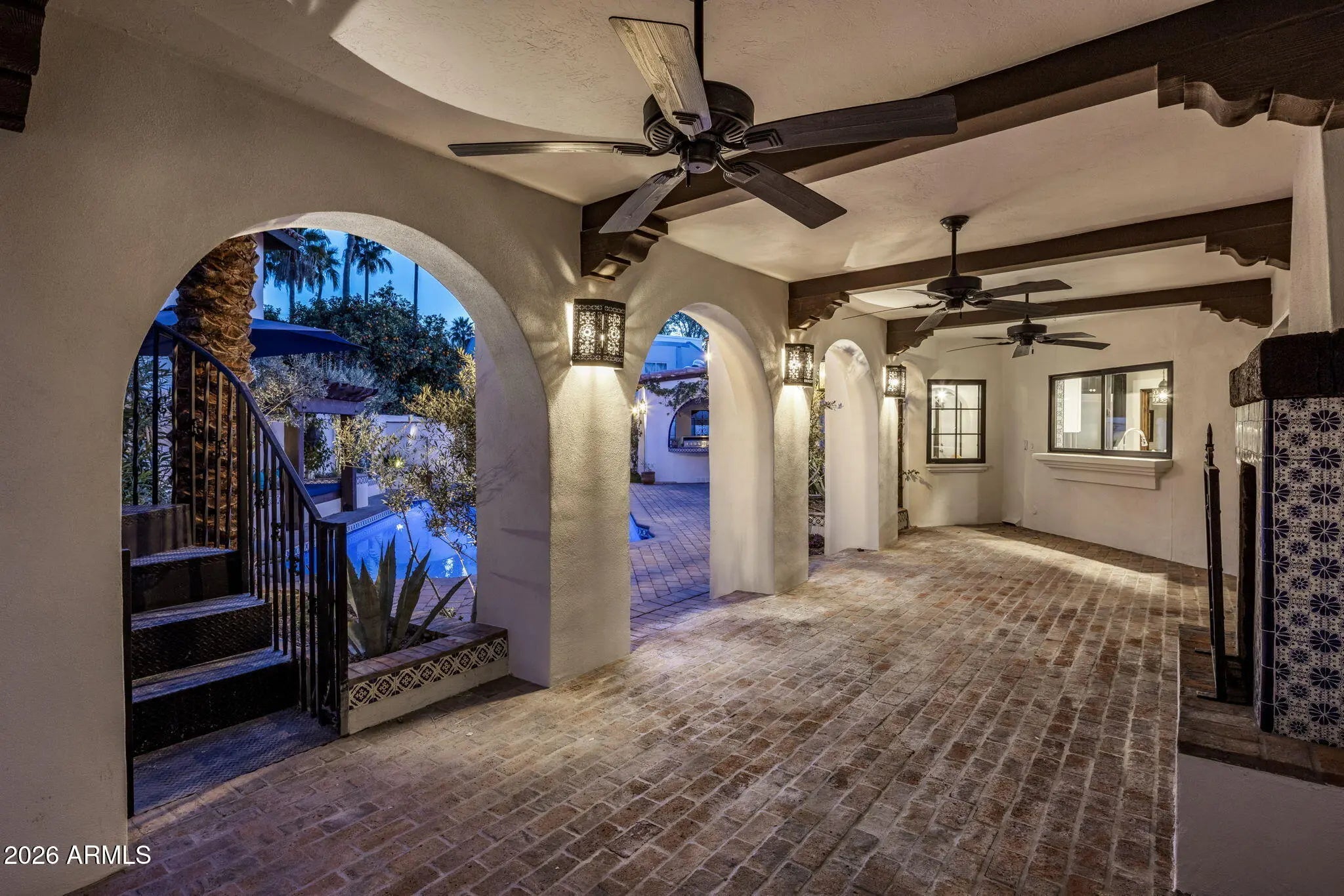 A true Jewel Box in McCormick Ranch, this fully reimagined Santa Barbara-inspired estate blends timeless architecture with refined modern luxury. Rich wood-like floors, exposed beams, arched passageways, and custom built-ins frame light-filled living spaces and an elegant chef's kitchen overlooking the great room. The 4-bed, 3-bath layout spans 3,639SF with main living on the first level and guest quarters above. Outdoors, a resort-style courtyard showcases a sparkling pool, fire feature, spa with cold plunge, and lush desert landscaping. Ideally located in the heart of McCormick Ranch, moments from premier dining, golf, hiking trails, shopping, and the scenic greenbelt, this residence offers an exceptional blend of charm, sophistication, and lifestyle. See document tab for features list