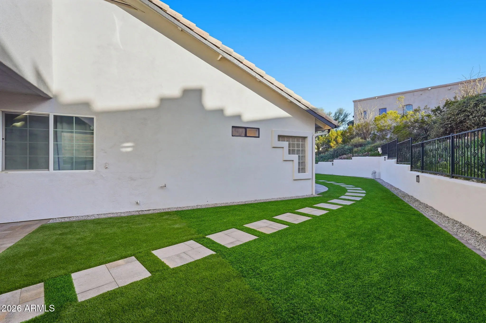 Corner Lot, Desert Front, Synthetic Grass Back