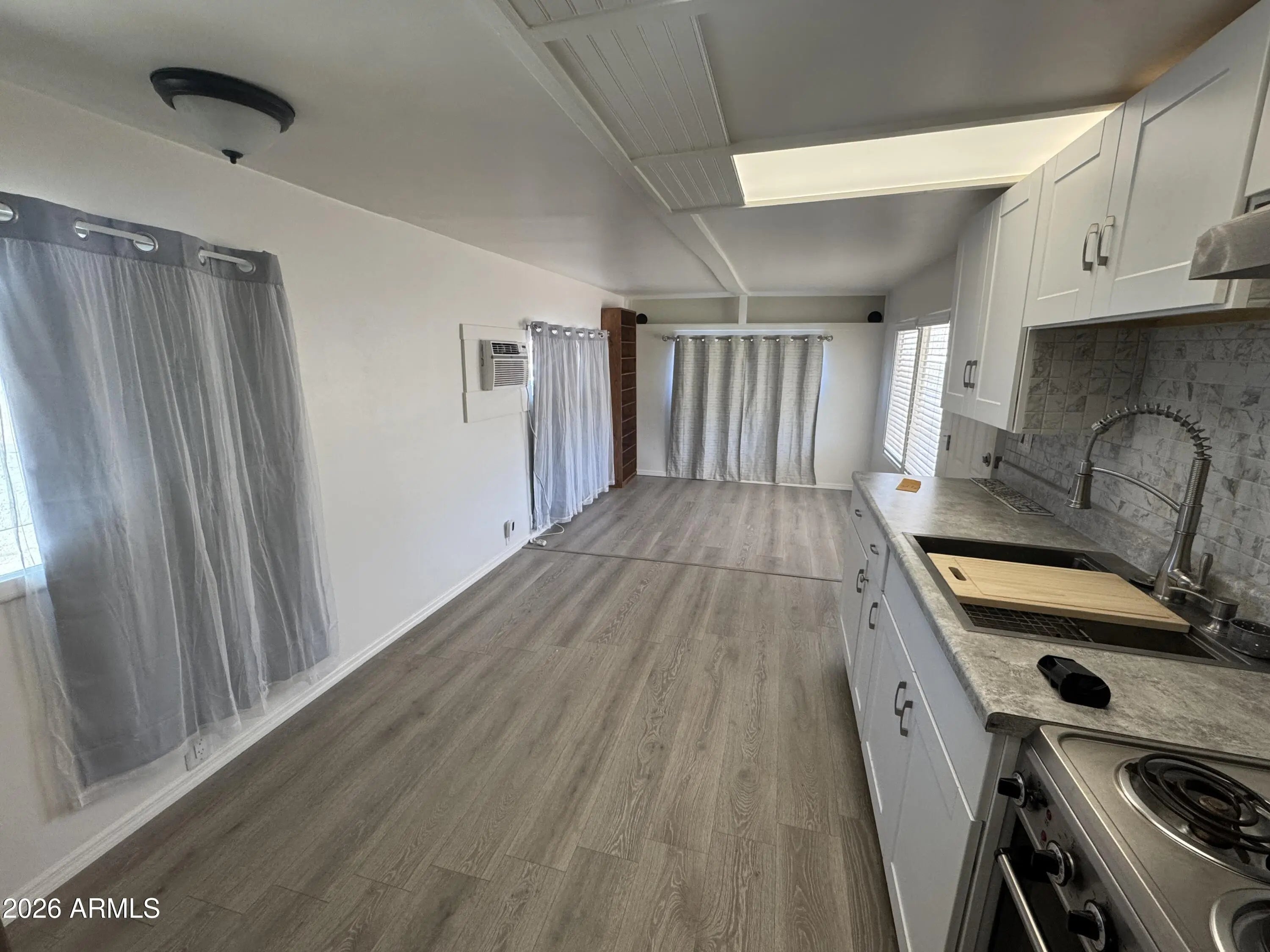 THis beautifully remodeled vintage mobile home offers big upgrades in a compact , efficient foot print. Situated on a desirable corner lot, the home enjoys added openness and space, with a new custom back fence providing privacy not common to other homes in the complex. The interior has never been lived in since renovation, and it features brand new unused fixtures throughout, including a new tub/shower, faucets, toilet and new flooring throughout the home. Updates also include new interior ad exterior paint, a new roof, all new electrical wiring, and updated plumbing, along with refreshed kitchen and bathroom spaces. Most windows are new, new exterior plumbing has been added for outdoor water access. This move in ready offers peace of mind with upgrades already completed.