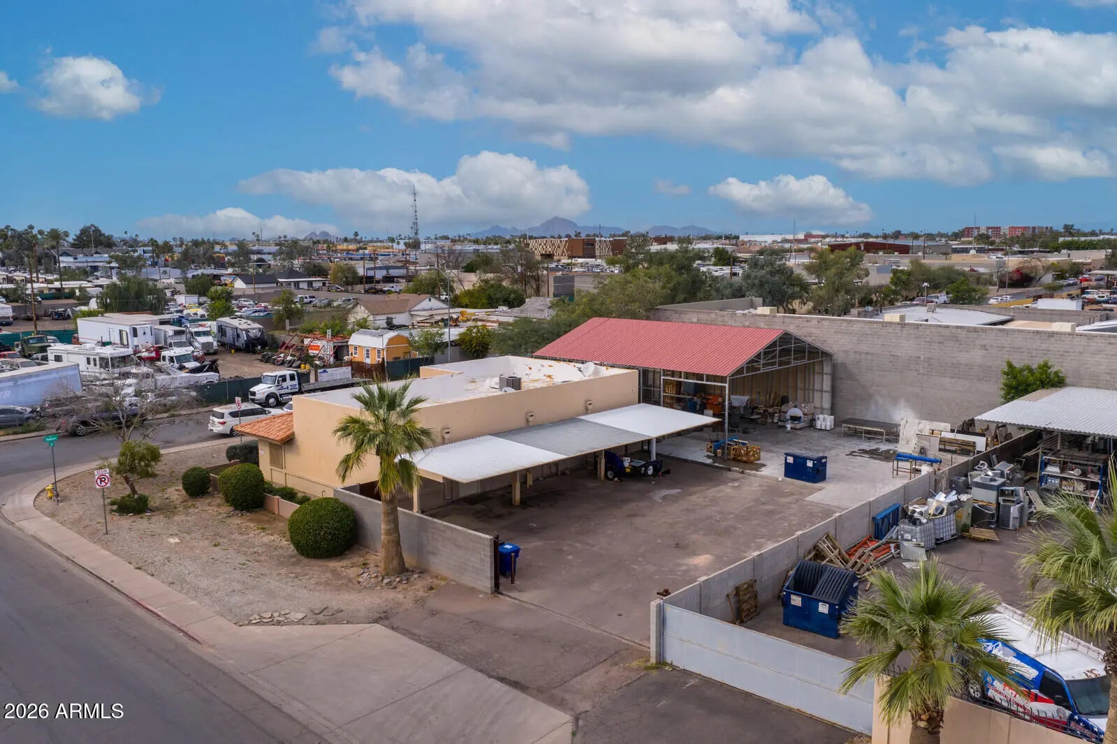 Take control of your business location with this highly functional light industrial property situated on a prominent corner lot in Mesa, offering easy access to Greater Phoenix and surrounding areas. Located directly across from the soon-to-open Academy of Math & Science at the Boys & Girls Club of the Valley - Grant Woods Campus, the property benefits from strong visibility in a growing neighborhood. The building features a well-appointed 2,160 SF office layout designed for owner-user efficiency, including a reception area, 7 private offices, conference room, 2 restrooms, and a full kitchen--ideal for administrative, sales, or client-facing operations. Supporting the office is a 2,050 SF covered warehouse canopy, providing flexible space for storage, staging, or light industrial use. A gated entry enhances security, while ample on-site parking includes 6 covered carport spaces and 5 additional uncovered spaces, accommodating employees, fleet vehicles, or customers. With its combination of professional office space, functional industrial components, and a strategic Mesa location, this property is an excellent opportunity for an owner-user seeking a long-term home for their business.