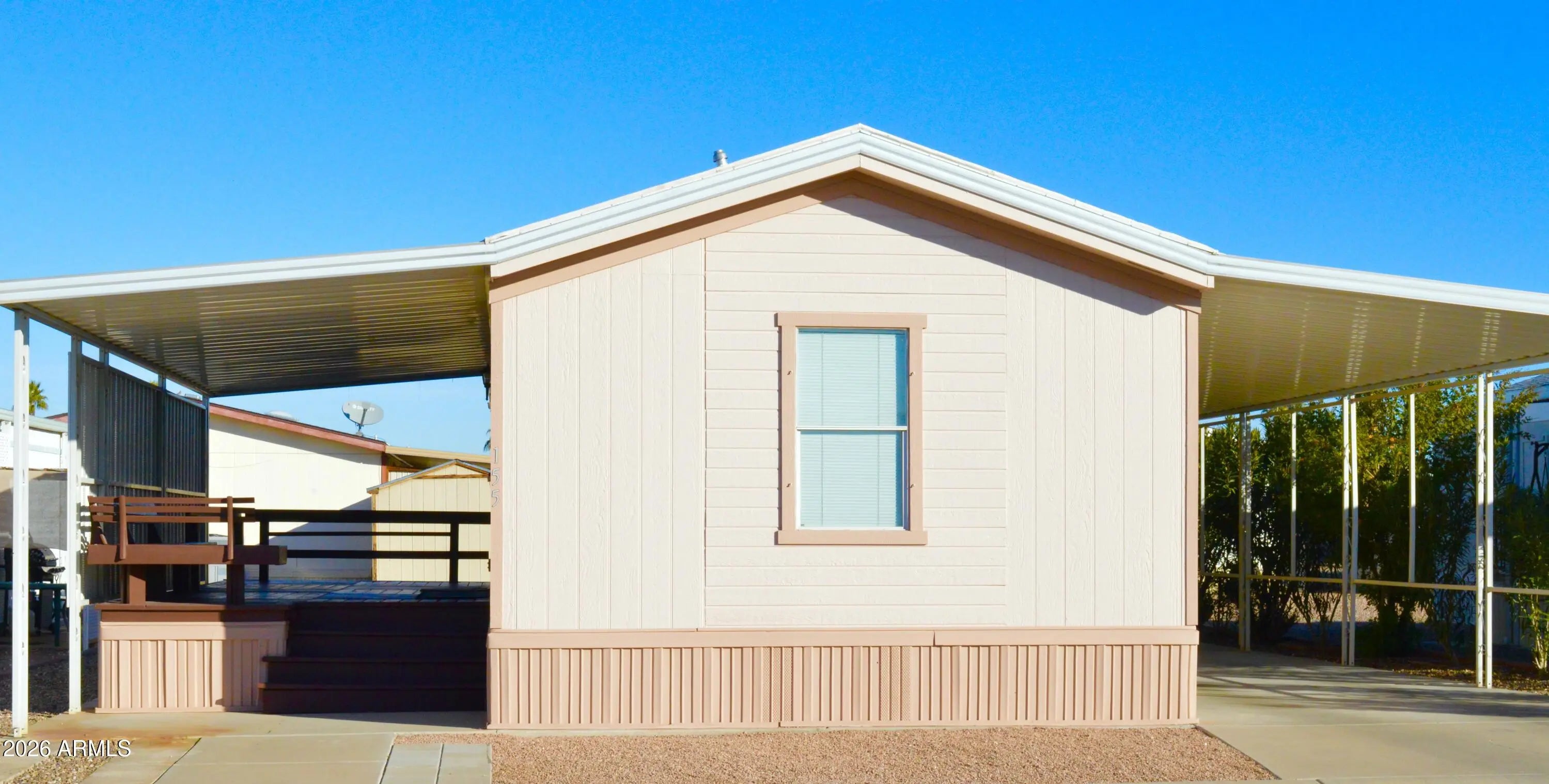 This spotlessly clean, 2 bedroom, 2 bath gem is tucked away in a desirable 55+ community in growing Casa Grande. It features a spacious open floor plan, an ample living room, dining area, & a kitchen with pantry & plenty of cabinets, all set in a soothing neutral color palette. The large master bedroom is ideal for a king size bed & it has a wall to wall closet, & a walk-in shower. The ample front & back decks are just the place for friendly gatherings. And you get a nice large, finished shed/workshop for all those tools and toys you just can't part with. For fencing, a row of oleanders graces the side of the carport for precious private moments. It can sell partially furnished or unfurnished. Come by and see for yourself! Owner is a licensed real estate agent in the state of Arizona.
