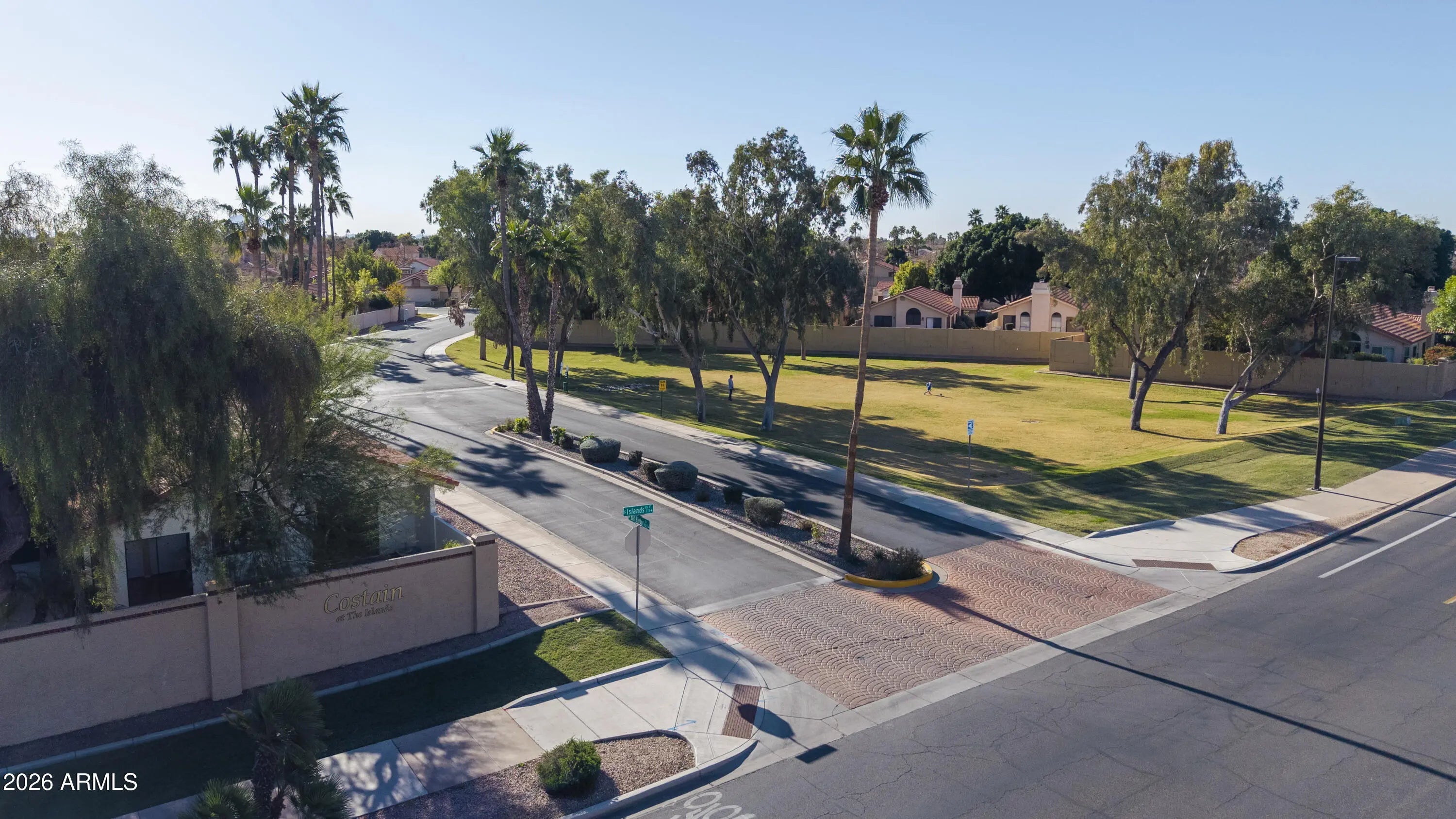 Welcome to Costain at The Islands, perfectly nestled in the heart of Gilbert—just minutes from downtown Gilbert and downtown Chandler. This beautifully maintained 2-bedroom, 2-bath home features a desirable split floor plan, with each bedroom offering its own Arcadia door that opens to a private patio. Both bathrooms include skylights, and the primary suite boasts an upgraded walk-in shower. The home showcases granite countertops throughout, porcelain tile flooring in main living areas, and carpet in the primary bedroom. Enjoy cozy evenings by the natural wood-burning fireplace in the living room or take advantage of the built-in office area with shelving—perfect for working from home. Additional highlights include a custom iron front entry door, an open front courtyard secured by a security gate, and two mature Ficus trees that provide abundant shade during the summer months with artificial turf in the back. A brand-new hot water heater adds peace of mind, and the HOA maintains the front yard for easy living. All appliances are included. A fantastic opportunity to own in one of Gilbert's most sought-after communities