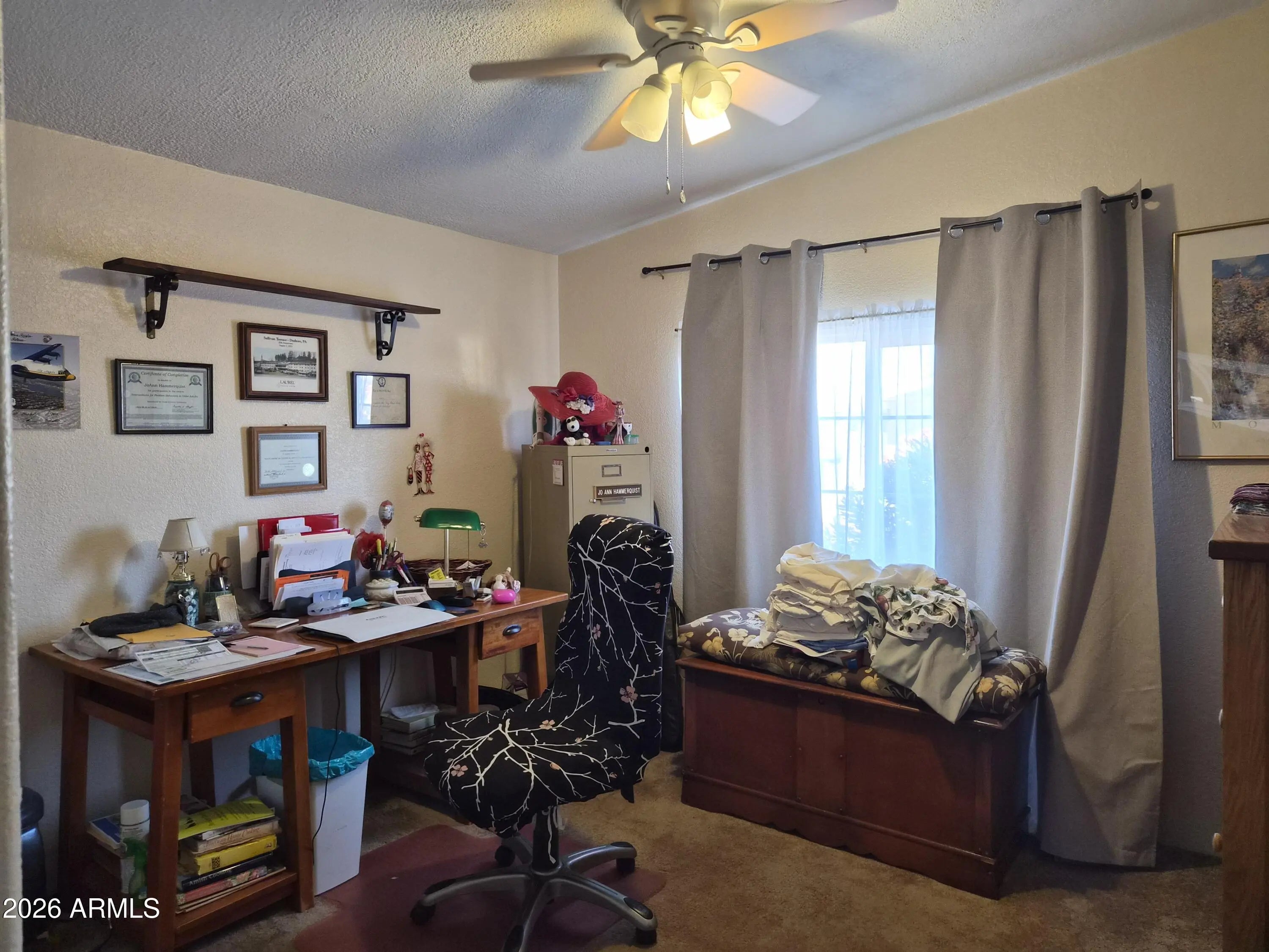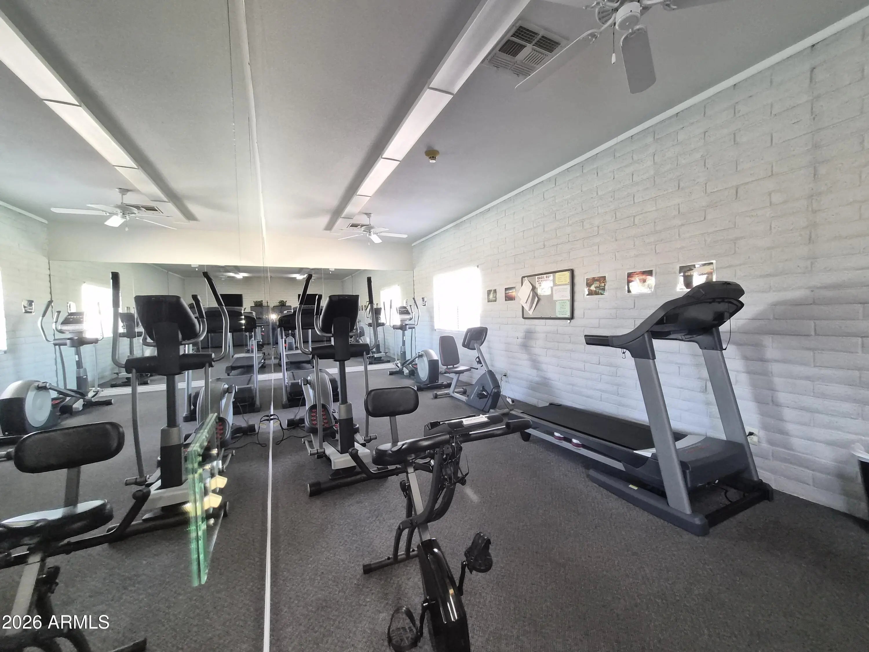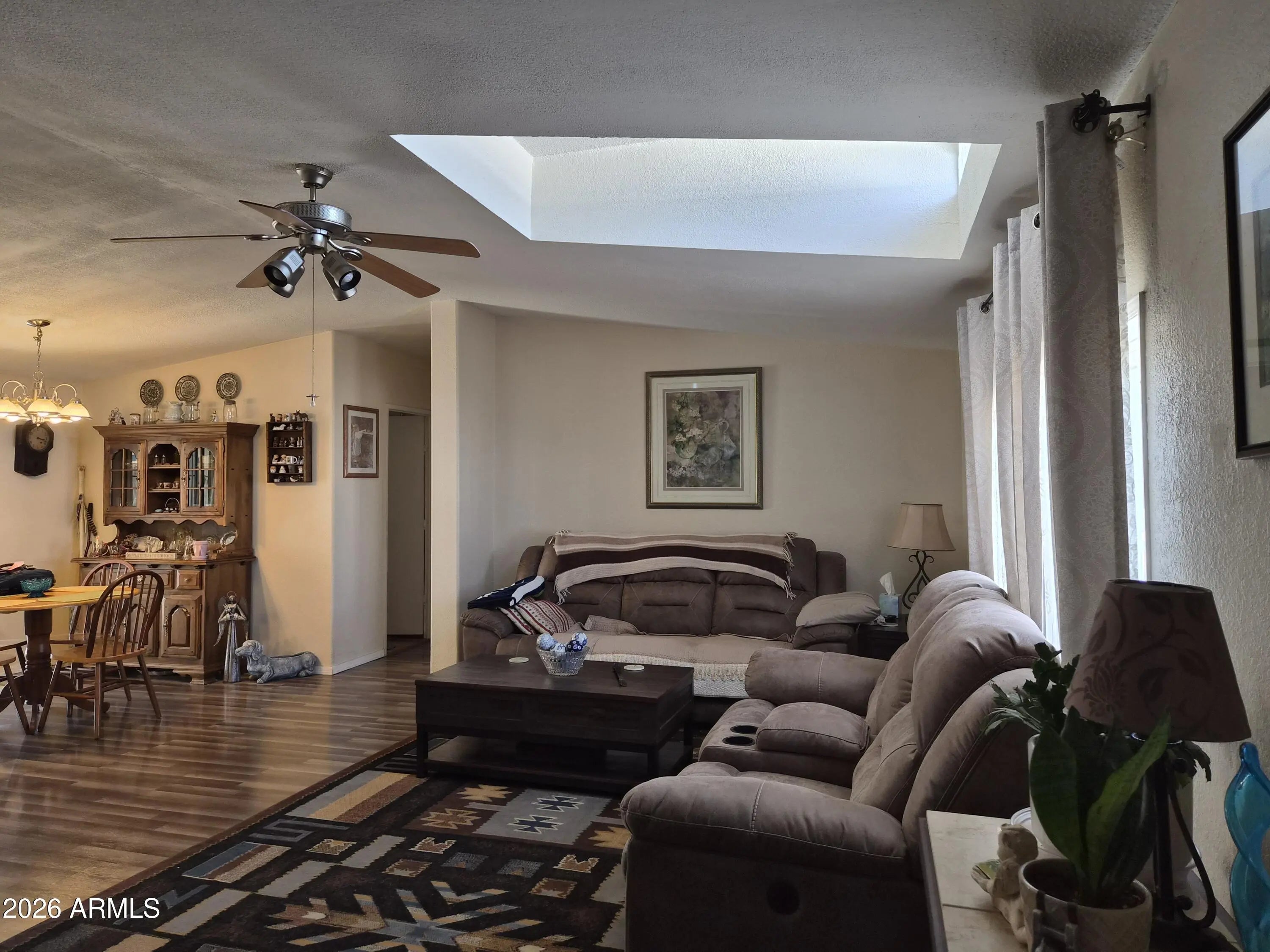 Join the Fabulous Quail Run Community! This bed 3-bed, 2 bath is perfect large family room. Vinyl plank flooring in the common areas and carpet only in the bedrooms. Two guest beds at the front of the unit perfect for an office and an extra bedroom for when your friends and family visit and enjoy Arizona! Large kitchen with walk in pantry. Large primary bed with walk in closet at the left of the entry. Enjoy your morning coffee in the large Arizona room that includes a separate shop/storage area with work bench. Extended 2 car carport. Newer HVAC from 2023. Updated flooring 2022 and new seal coat of roof 2026. This quiet and incredibly private gated 55+ part has a Club house, pool, gym, library and offers lots of activities to keep you active and enjoying l