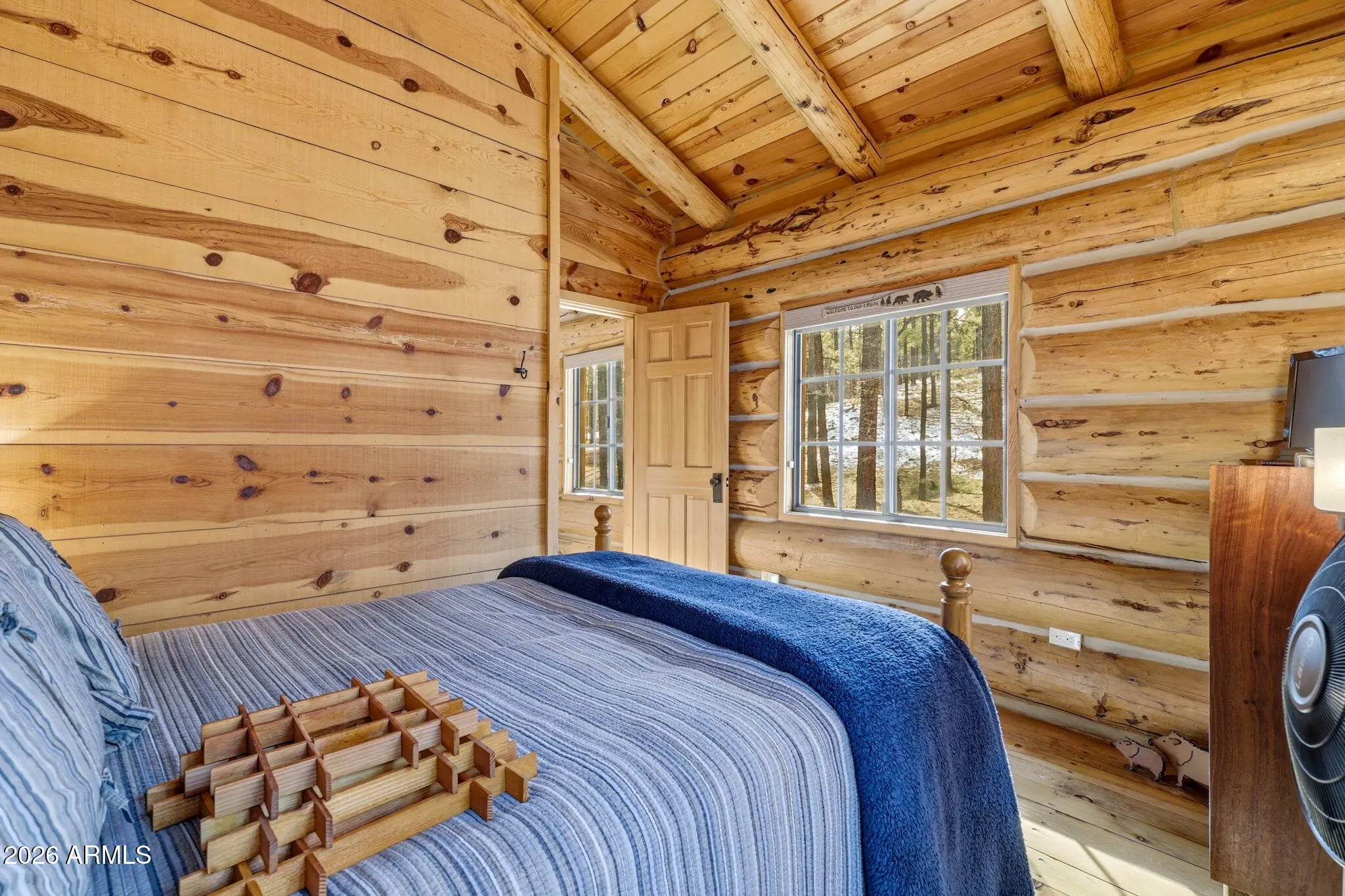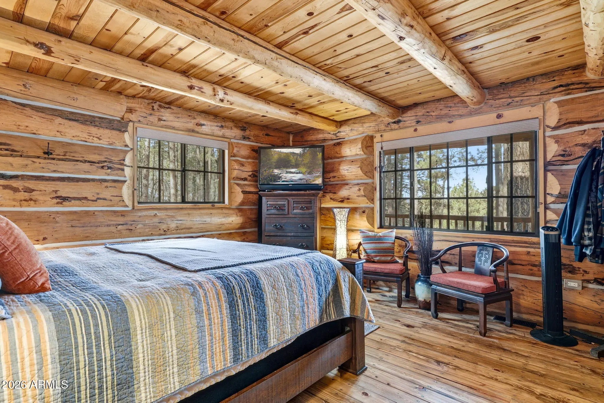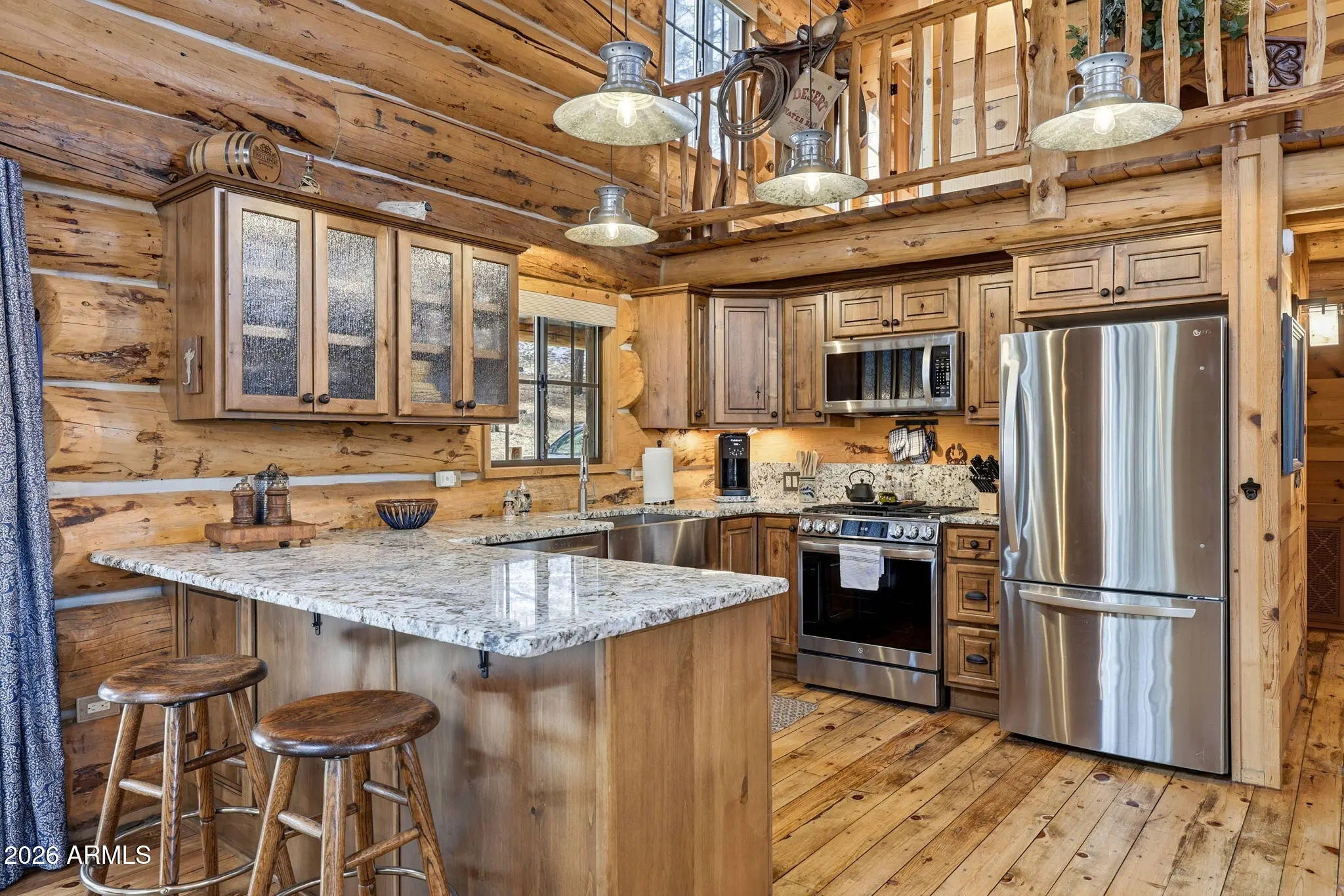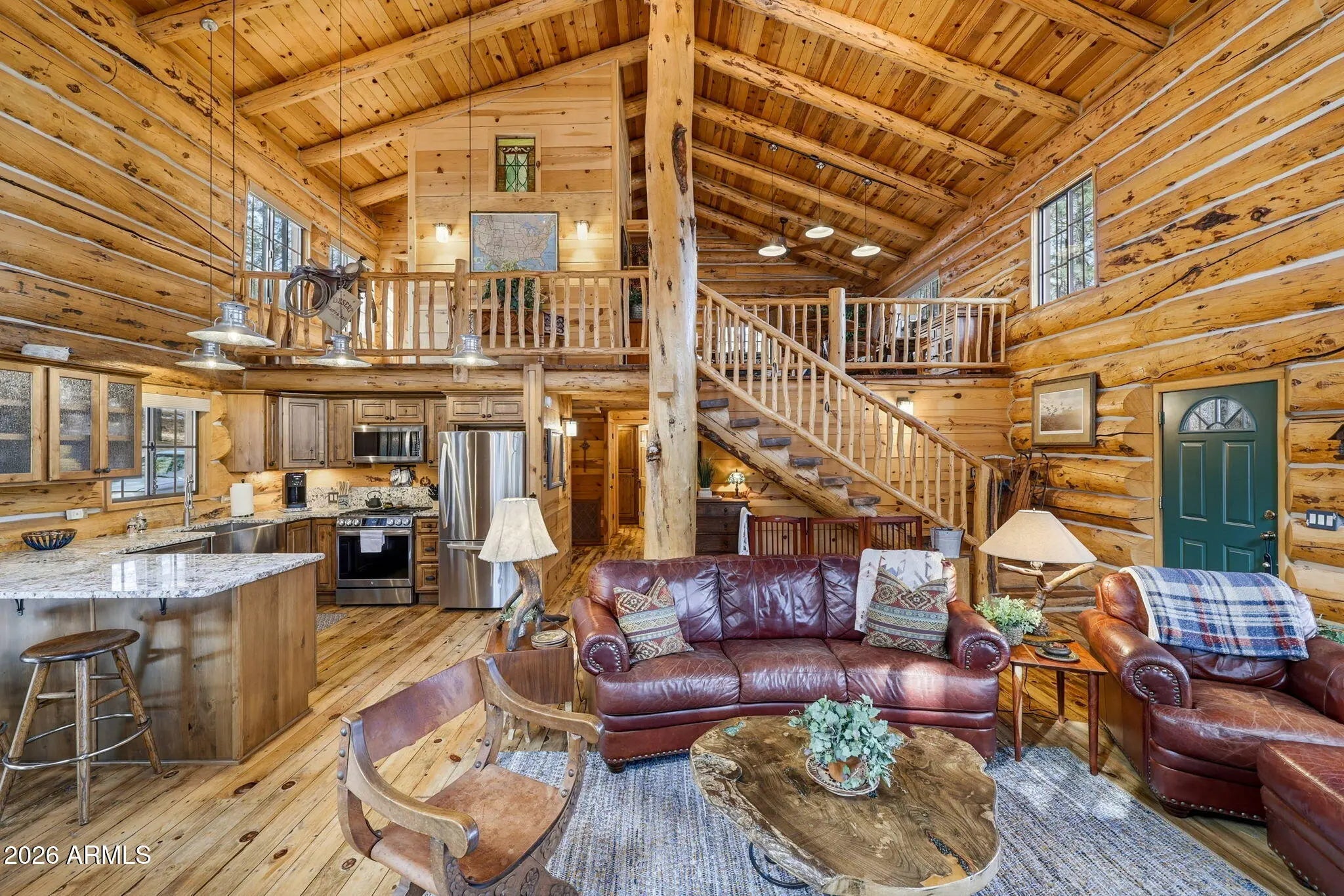 Step into your own mountain retreat with this stunning log home in Auger Canyon—where rustic charm meets comfort and privacy. Located just one minute from U.S. Forest Service access, this home is tucked among mature timber with tranquil valley view's filtering through the trees. Inside, you'll find classic lodge-style finishes including expansive log construction, warm wood floors, cathedral ceilings and a beautiful rock fireplace that anchors the great room. The newly remodeled kitchen is perfect for gathering and entertaining, while both bathrooms have been thoughtfully updated. With two bedrooms plus a spacious loft and 2.25 bathrooms, there's plenty of room for family, friends, and weekend getaways. Spend your days enjoying the covered front and back decks, ideal for barbecues, morning coffee, or watching wildlife pass by. A detached garage with shop area, truck door, three access gates, and buried power lines complete this private mountain escape.