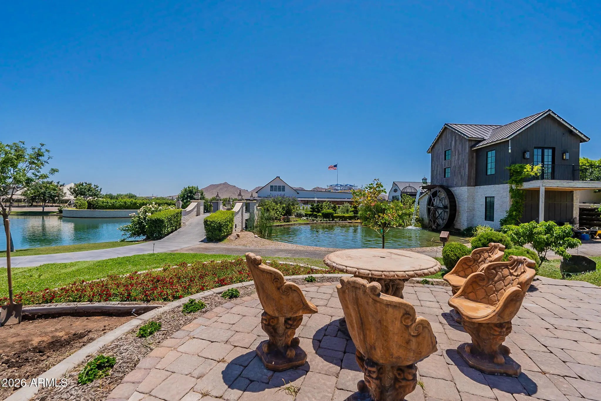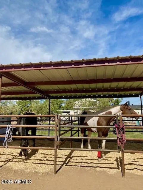 NO HOA - goats, chickens, horses are WELCOME! As are RV's/boats/haulers & toys! Nestled on a fully irrigated acre in the highly desirable Ranchos Jardines community in one of the fastest growing cities in AZ, this thoughtfully evolved estate blends comfort, function, and the charm of ranch-style living. Over time, the home has benefited from intentional upgrades focused on improving everyday livability, functionality and core systems, resulting in a layout and infrastructure that support long-term ownership. Most notable of the improvements include a roof replacement (2021), water heater (2023), and a new electrical panel (2026). The residence sports 4 bedrooms, 3 full bathrooms and (2) dedicated office spaces, ideal for remote work, multi-generational living, or long-term guests. A welcoming front porch with a swing sets a laid-back tone, evoking a relaxed farmhouse lifestyle and creating an inviting first impression. The upstairs primary suite includes a private office space, while the downstairs level features 3 bedrooms and 2 full bathrooms, including a 2nd primary suite with dual closets and a private en-suite bathroom, providing excellent separation and privacy. Adjacent to the kitchen, a flex space functions perfectly as a home gym or pantry, complemented by a spacious laundry room, designed for real-life functionality and storage, with direct access to the backyard - reflective of the home's evolution toward practical, everyday use. Outdoors, the property truly shines with a fenced PebbleTec pool (refinished 2021), that anchors the backyard, while (3) covered horse stalls, a fenced grass pasture, and a separate dirt lot or small arena offer equestrian functionality. Additional features include a sturdy, metal playground structure, exterior storage shed and expansive open space (irrigated pasture). This property offers the serenity of acreage living with the convenience of nearby QC amenities: Pecan Lake Entertainment District, Queen Creek Equestrian Center, Queen Creek Marketplace, and so much more! It's a rare opportunity to own usable land, have privacy, and a home that has been intentionally shaped to support the way people actually live!