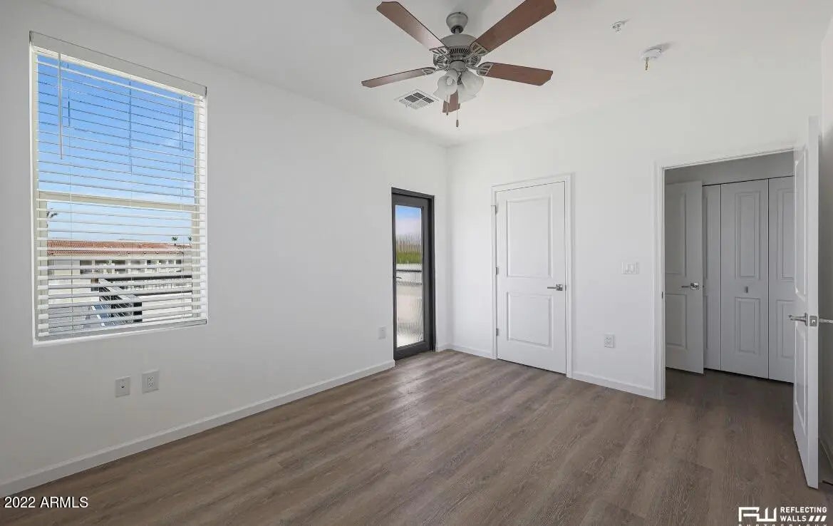 Immaculate new construction! Second Floor unit, 2 Bed with 2 full bath units, viewing patio with Fountain Views, contemporary design, single garage and finishes. The unit is equipped with 8ft Euro cabinets, stainless appliance, washer/dryer, ceiling fans, designer window coverings, electric fireplace, glass shower, dual vanities, hardwood floors, single garage and more. The community has walking park, dog run, SPARKLING community pool, mountain and fountain views! The property is in close proximity to the downtown amenities, Fountain Park, schools, shopping and commuter highways. Perfect place to call home for the executive, small family or lock-n-leave snowbirds!