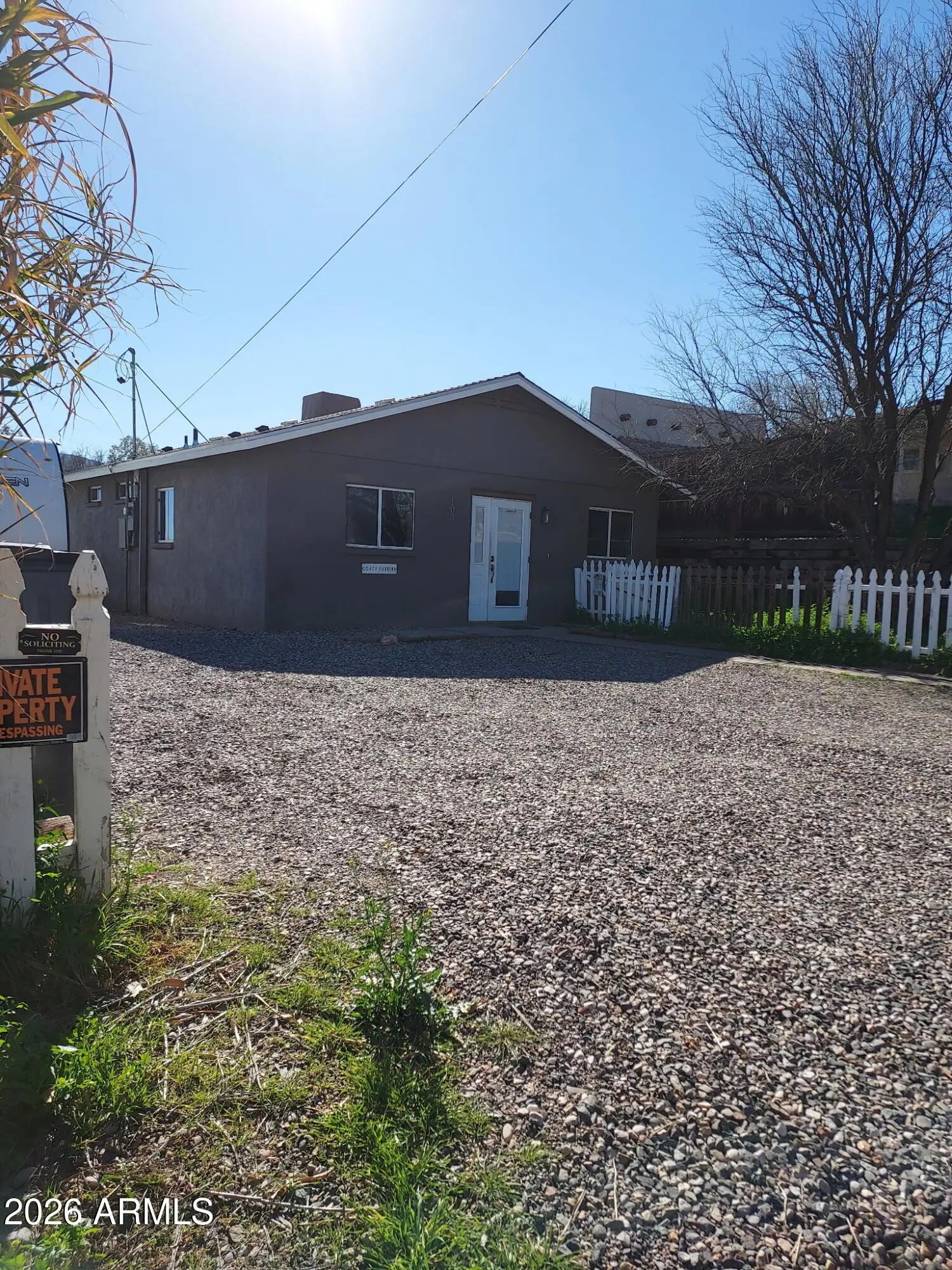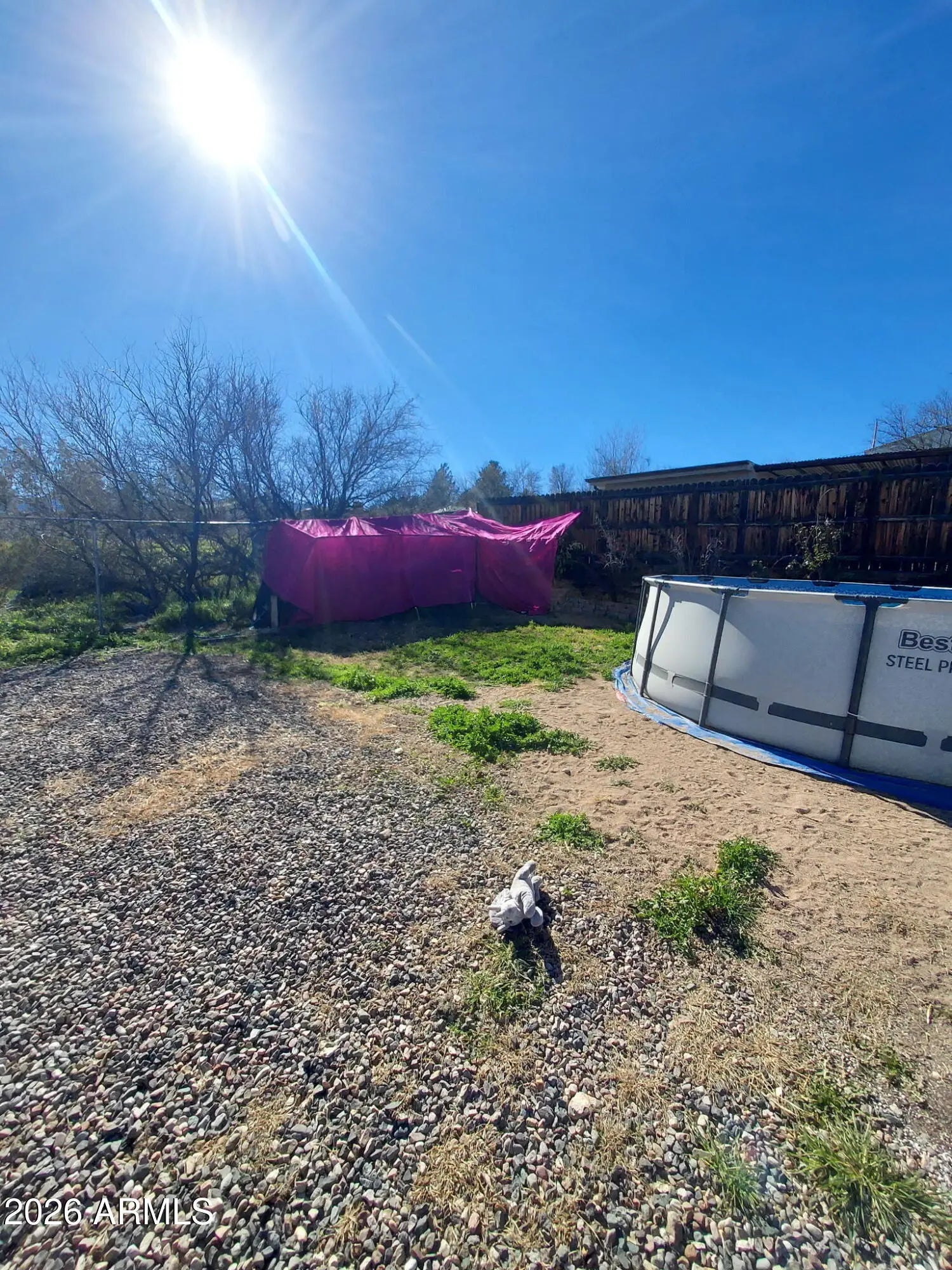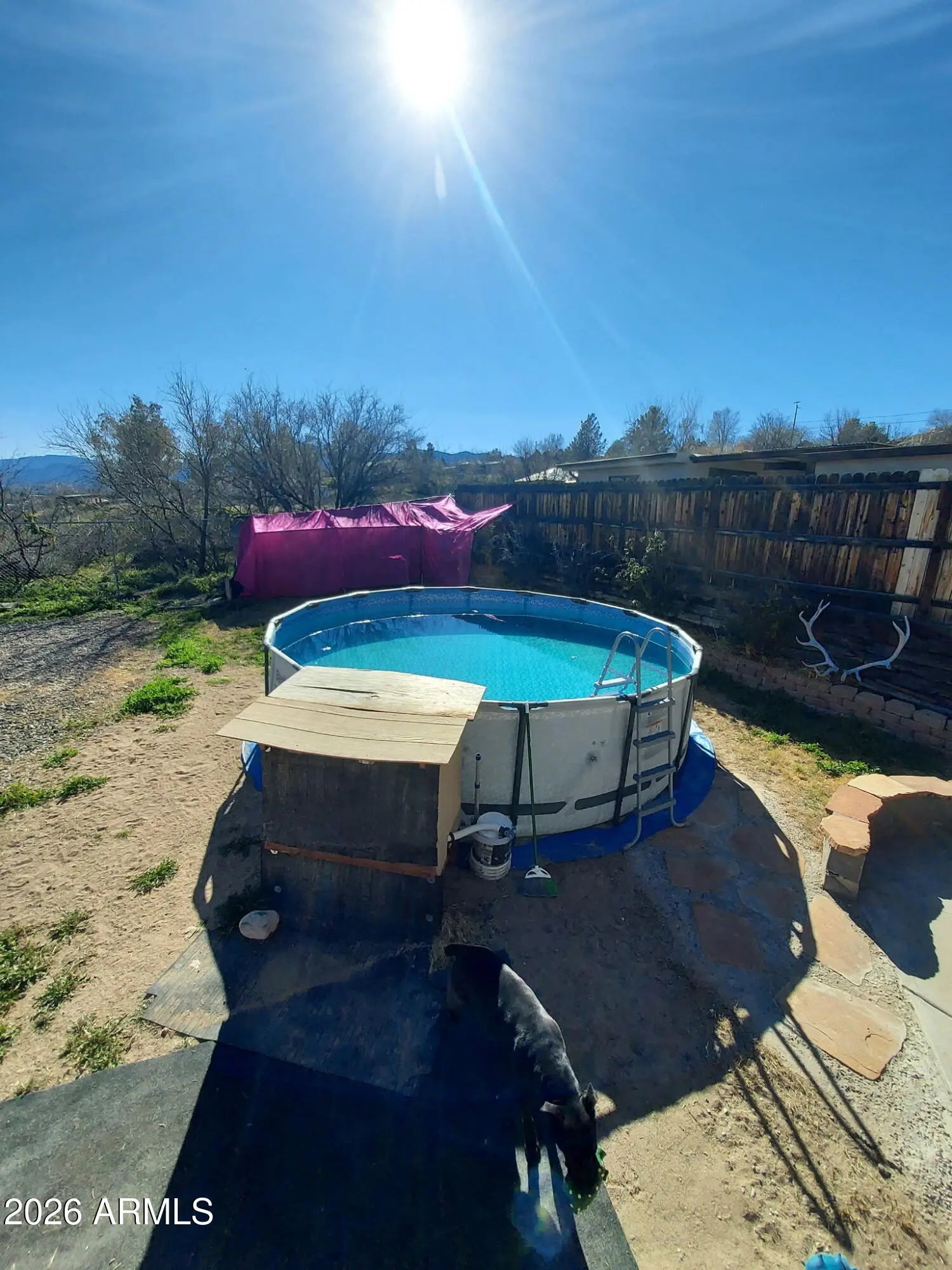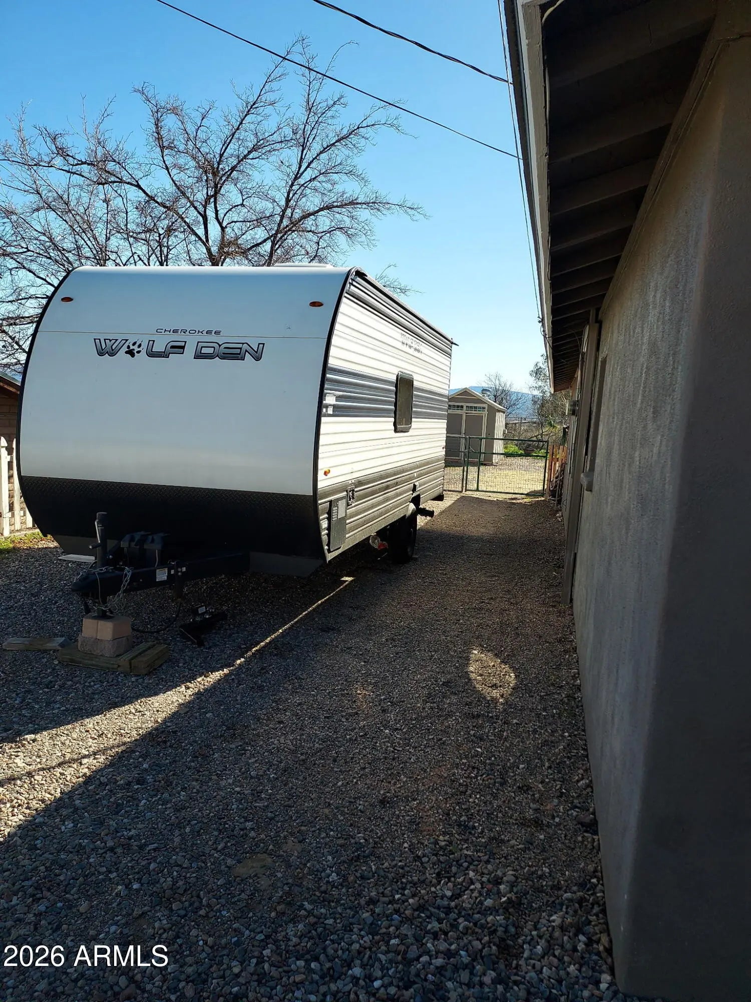 DISCOVER THIS INVITING, 3 BDRM, 2 FULL BATH single-family home! Close to town and shopping. All the BDRMS are generous, with the two larger ones having access to the backyard. The master (18x11.8 ft) has an adjoining bathroom, carpet, and French doors to the patio. The bathroom features a tile-and-stone rain shower. The third bedroom (18x12.3 ft) has a metal door and security gate. All appliances included: electric range, oven, dishwasher, refrigerator, and washer/dryer. The new 30-year composite roof and evaporator cooler were installed in June 2025. NO HOA! The yard is fully fenced, with a wooden picket fence in front and cyclone chain link in back, with gate access from the driveway. There's a shed/shop (8x10), an above-ground 18ft pool with upgraded filtration and motor on a timer. There is a 100% full RV hookup; water, sewer, electric, everything there for an RV in the backyard. Along the back fence, a raised garden grows roses, pomegranates, ruby red grapefruit, lemon, and two orange trees, all fruit-bearing. The backyard is ideal for entertaining, with wiring and water for grills and smokers. The covered concrete patio features an in-ground fire pit, built-in seating, and an outdoor counter. Enjoy a relaxed lifestyle in scenic Camp Verde, gateway to the Verde Valley's Wine Country.