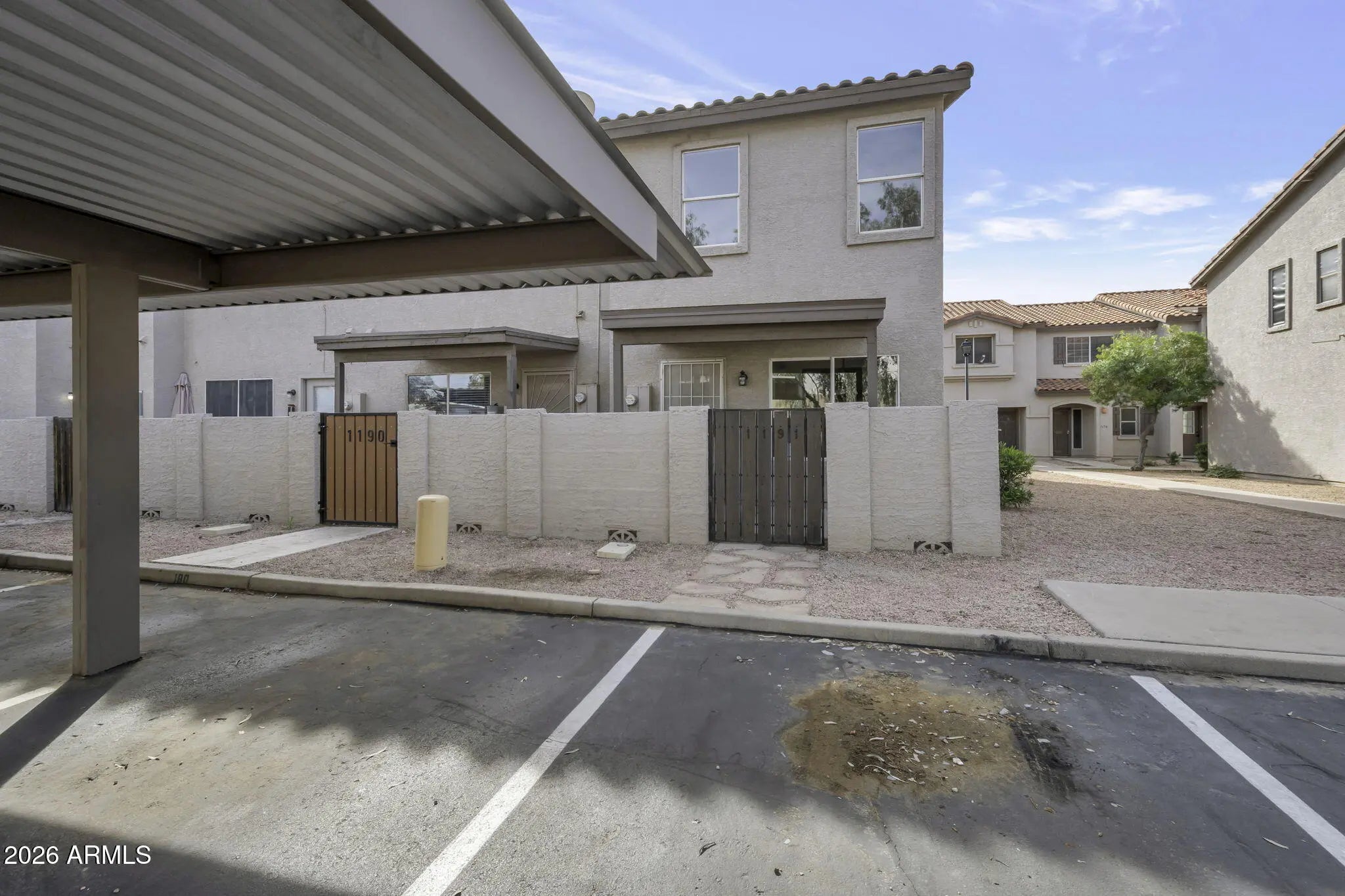 This beautiful townhouse boasts 2 bedrooms and 2 bathrooms, plus a flexible den ideal for a home office or accommodating guests. Step into a bright, modern home with freshly painted walls and brand-new luxury vinyl plank flooring on the second level, providing a contemporary and welcoming feel. As an end unit, you'll have only one shared wall for added privacy. The designated carport is conveniently found just a few steps from the back gate, accompanied by three added open parking spots nearby. The spacious patio, featuring a new cover, is perfect for entertaining and hosting BBQs. Don't miss your chance to see this fantastic home!