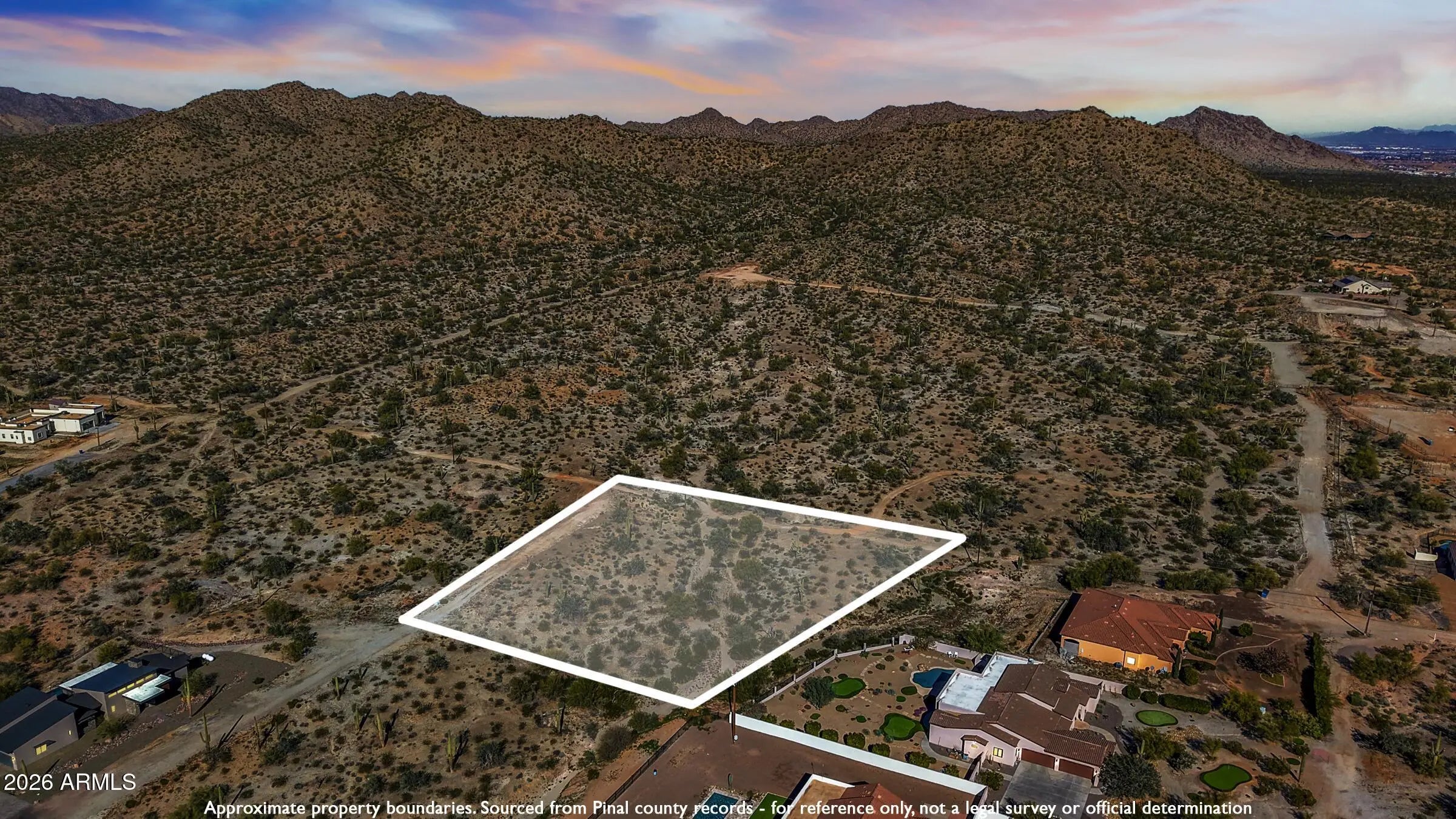 Discover your piece of the American Dream on this beautiful 1.98-acre lot in Queen Creek, Arizona. Perfectly positioned and surrounded by the expansive San Tan Mountain Regional Park—over 10,200 acres of protected desert wilderness—this property delivers true peace and tranquility. Picture quiet evenings filled with the echoing calls of coyotes under a vast starry sky, while the vibrant heart of Queen Creek - with excellent schools, family-friendly restaurants, fun activities, and convenient shopping remains just minutes away. Water and power are already on site, ready for your custom family home or dream retreat. In one of Arizona's fastest-growing, most desirable communities, this rare gem offers privacy, natural beauty, and endless possibilities for creating lifelong family memories.