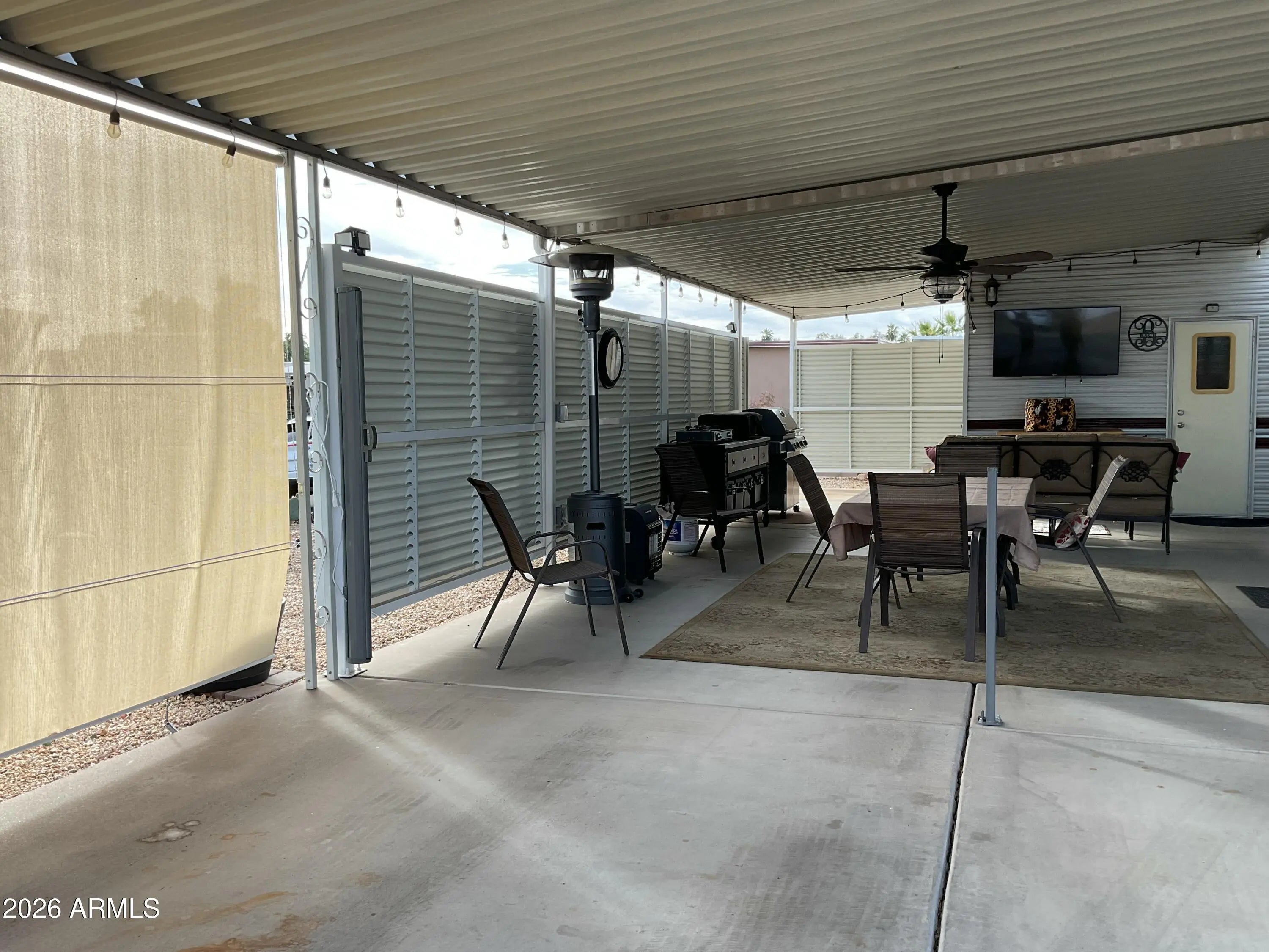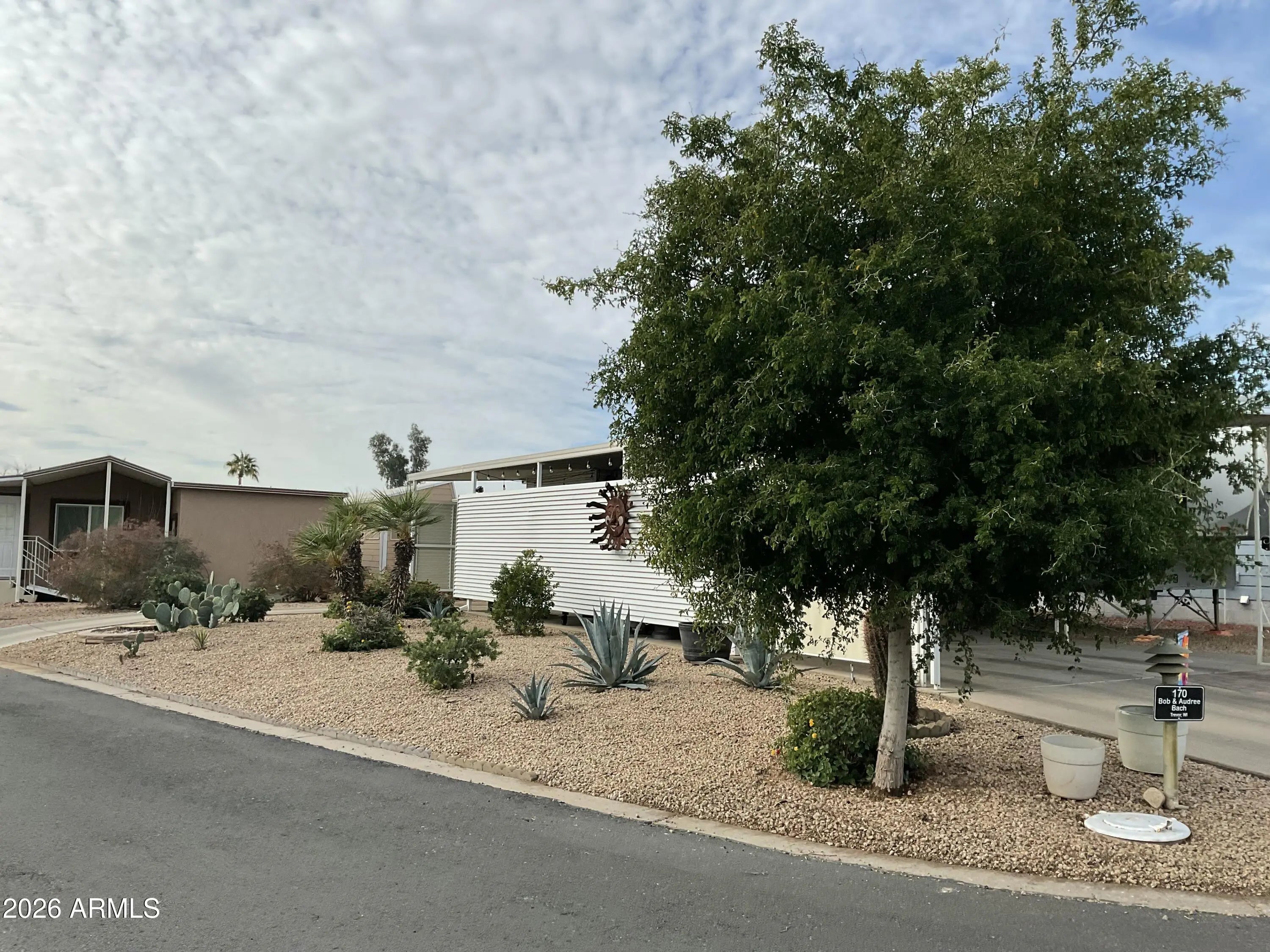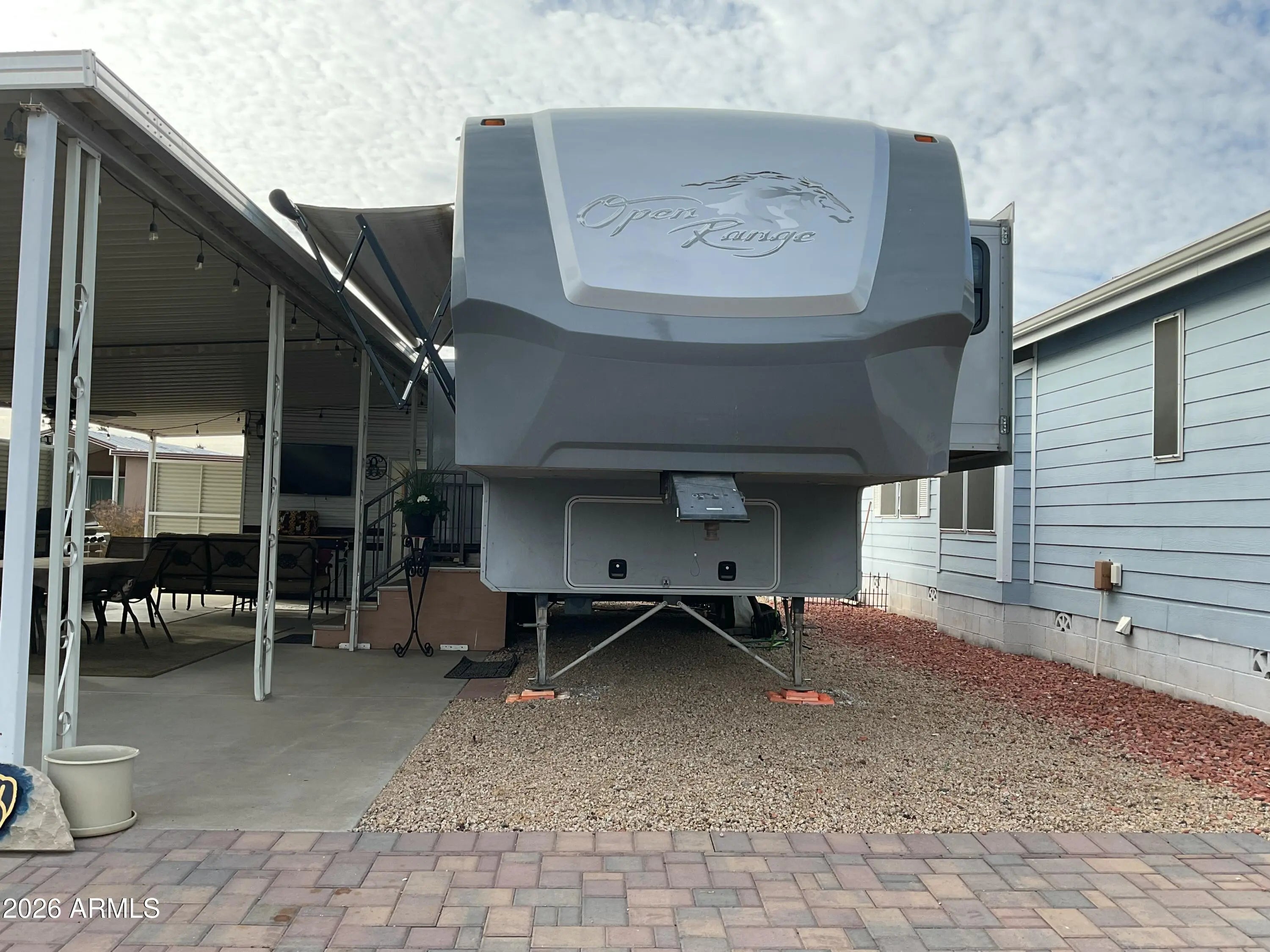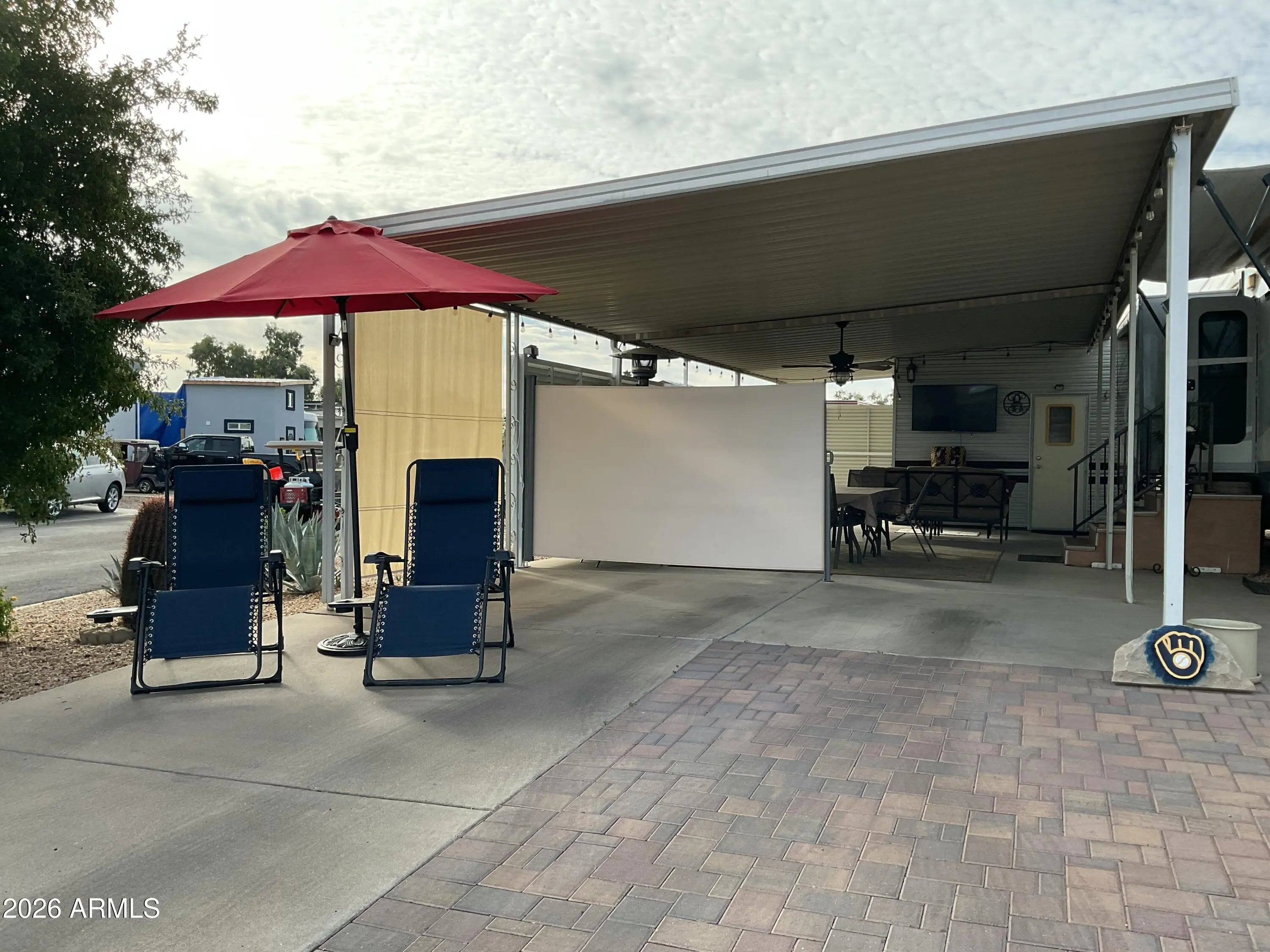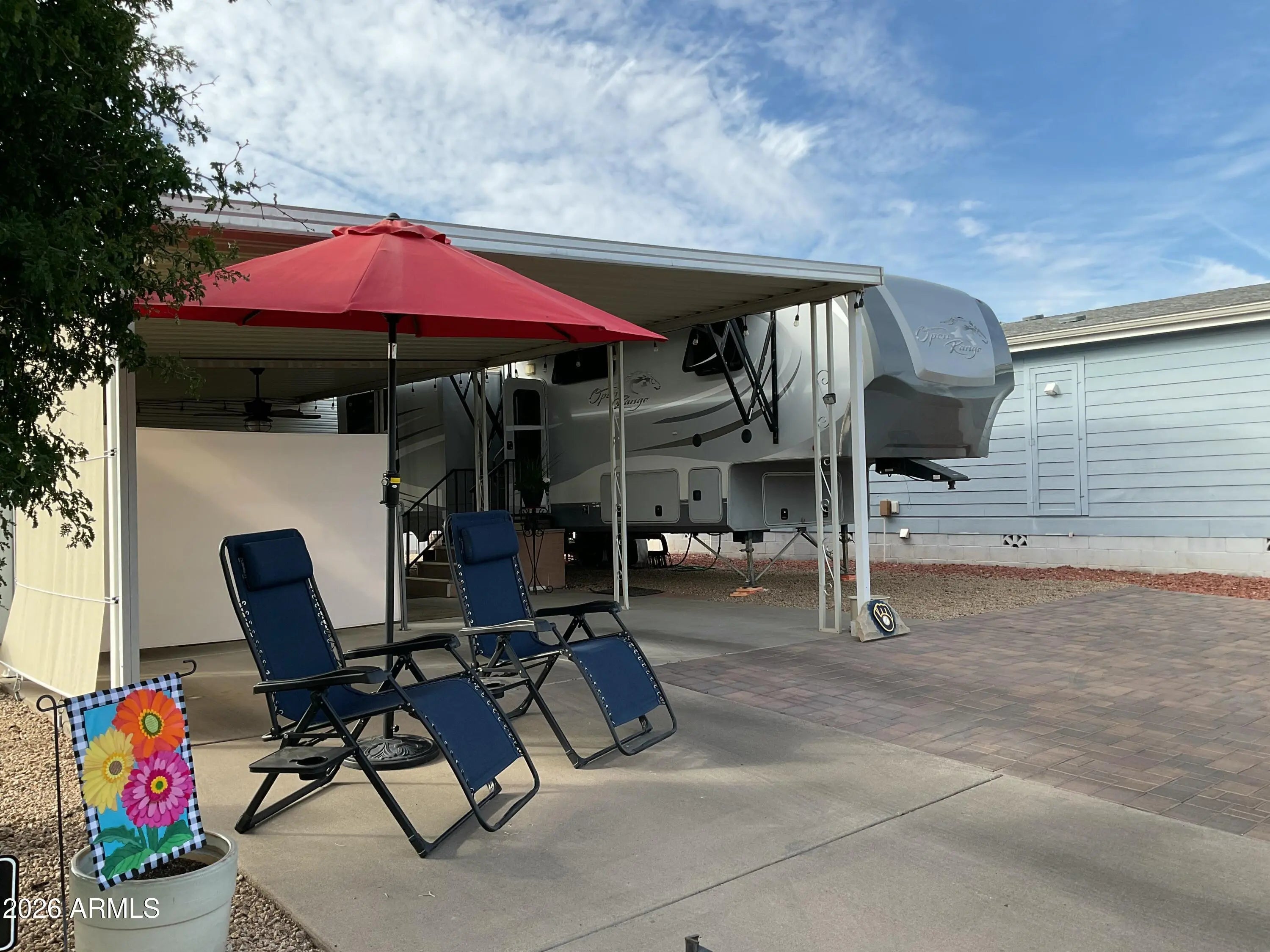 OVERSIZED LOT! Escape the frigid cold and experience one of the highly sought-after RV resorts in AZ. Lot #170 in Happy Trails RV Resort is one of the largest! This lot is the perfect size for any rig and can easily accommodate a park model or a custom stick-built structure. Features also include a covered patio, an additional side entry for a golf cart, ample parking space for vehicles or toys, and a shed with an additional commode, W/D, and refrigerator. This lot faces north for the perfect amount of shade and sun. No cover over the rig allows flexibility on height. Don't wait! Arizona living is waiting for you.