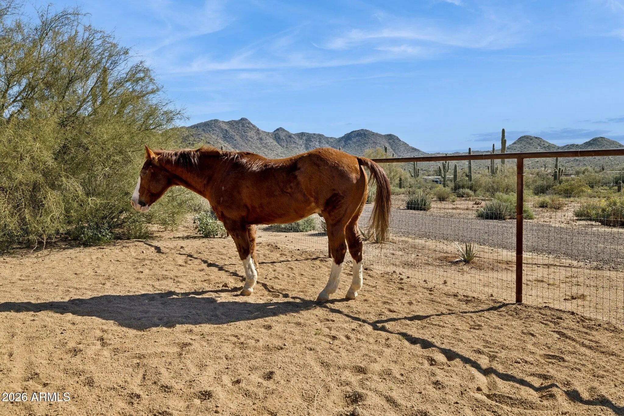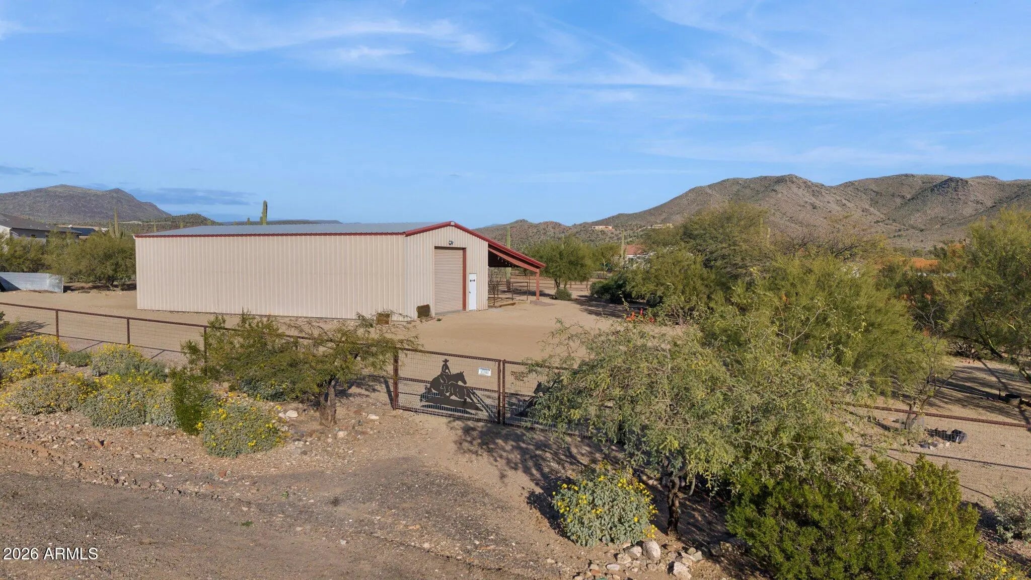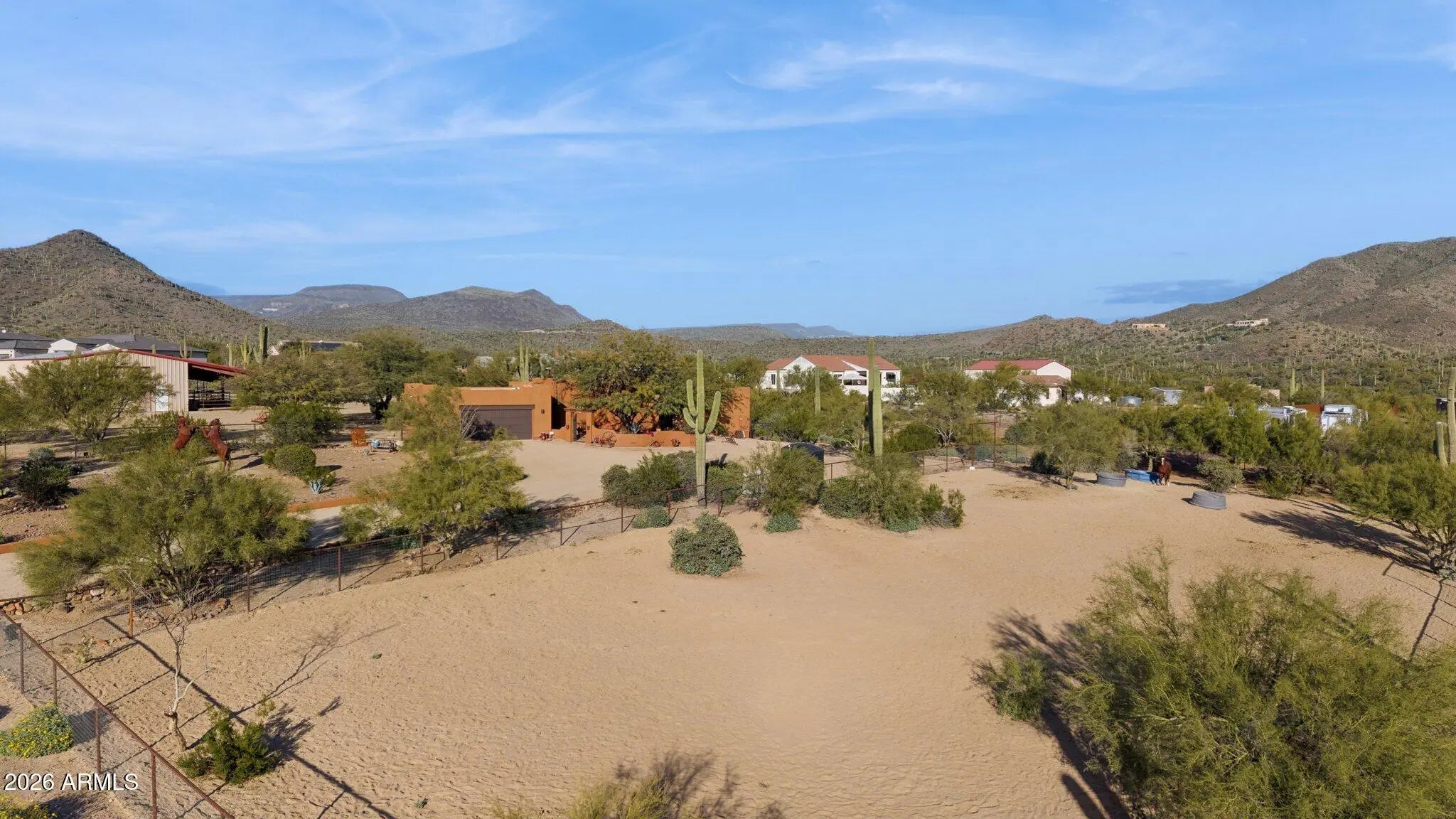 Perfect Arizona Cowboy lifestyle property!!! Panoramic Views !! Surrounded by the beauty of the Cave Creek regional park for your hiking and riding adventures. Charming front courtyard, exposed wood beam ceiling, Stacked stone fireplace enhance the Great room, Chefs Kitchen with all SS appliances, Gas range with Granite counter tops the Kitchen island/breakfast bar has a beautiful copper top. Master suite features a fireplace and a large walk in closet and private en suite bath. French doors open to a lovely covered patio. French doors will open from the Great room to more outdoor living. Featuring a 1800sq ft shop and 4 large covered horse pens with lights and water. Small arena/big turnout room for big rigs to get around. and fully fenced with no climb wire. Horse and dog ready.