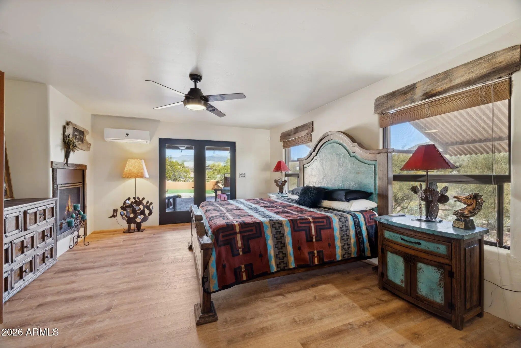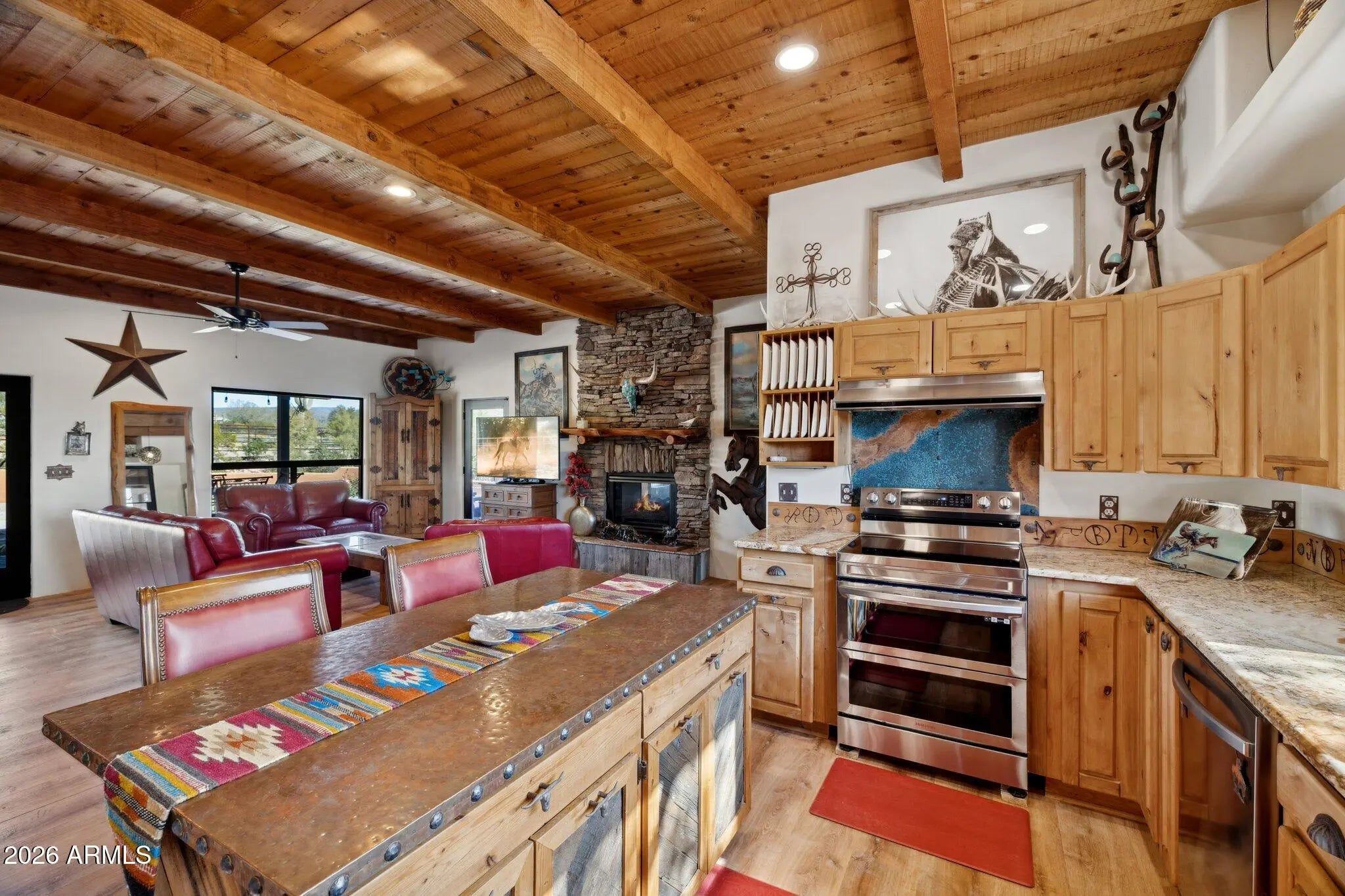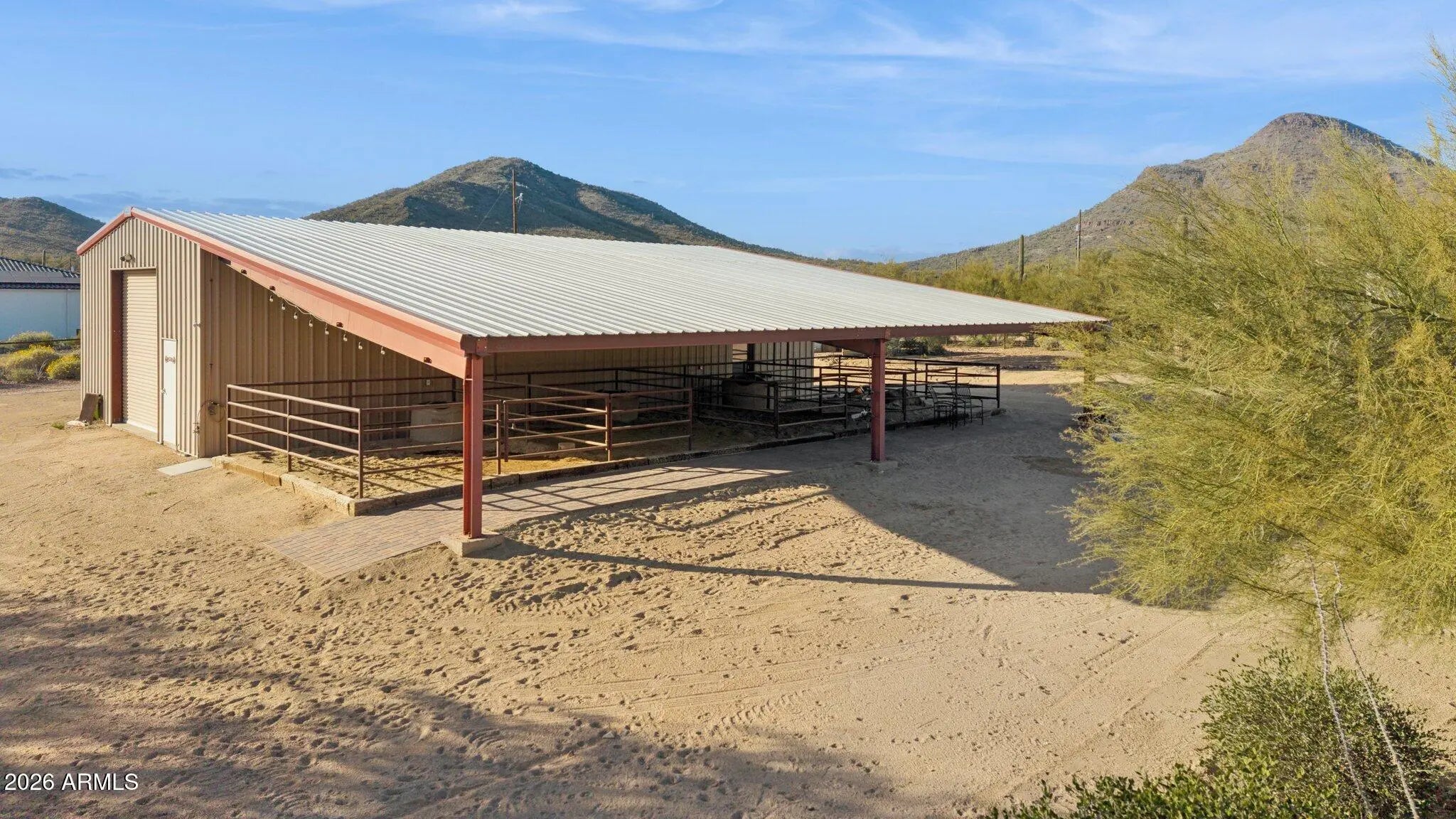 Perfect Arizona Cowboy lifestyle property!!! Panoramic Views !! Surrounded by the beauty of the Cave Creek regional park for your hiking and riding adventures. Charming front courtyard, exposed wood beam ceiling, Stacked stone fireplace enhance the Great room, Chefs Kitchen with all SS appliances, Gas range with Granite counter tops the Kitchen island/breakfast bar has a beautiful copper top. Master suite features a fireplace and a large walk in closet and private en suite bath. French doors open to a lovely covered patio. French doors will open from the Great room to more outdoor living. Featuring a 1800sq ft shop and 4 large covered horse pens with lights and water. Small arena/big turnout room for big rigs to get around. and fully fenced with no climb wire. Horse and dog ready.
