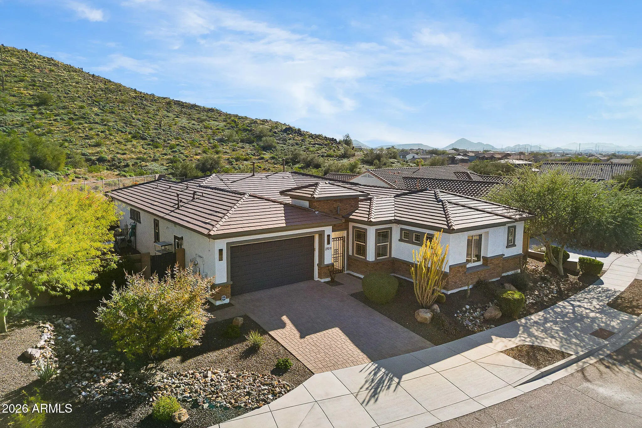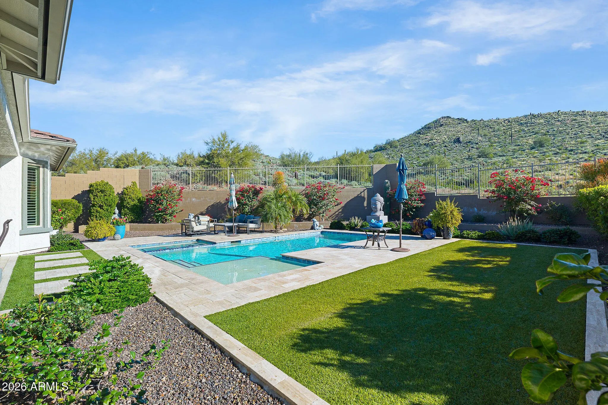 Welcome home to one of the most exceptional lots in Fireside at Norterra. This impressive 2,927 sq. ft. residence offers 4 bedrooms, a den/guest living space, & 3.5 bathrooms, all perfectly positioned on a premium preserve lot backing to the Sonoran Mountain Preserve. Enjoy breathtaking, unobstructed mountain views from the main living areas, kitchen, owner's suite, & one of the most spectacular backyards in all of Fireside & North Phoenix while maintaining rare privacy with only one neighboring home. Thoughtfully designed, the home features a private courtyard entry & a desirable great room floor plan. The attached guest quarters include a private living space and separate courtyard access, making the 4th bedroom ideal for multigenerational living, guests, or a private den. The recently added pool & spa completes this desert oasis, showcasing synthetic turf, lush landscaping, & stunning mountain views. The oversized kitchen anchors the great room and offers high end cabinetry, a built-in oven, & gas cooktop perfect for entertaining or everyday living. The spacious owner's suite is privately separated from the additional bedrooms & has been beautifully renovated with an oversized walk-in shower & upscale finishes. The additional bedrooms are located in their own wing & include a guest suite with an adjacent flex space ideal for an office, den, or secondary living area. Additional highlights include a solar system that significantly reduces energy costs, intelligent layout design, & a truly irreplaceable setting. This is a rare opportunity to own one of the finest view lots in Fireside at Norterra.