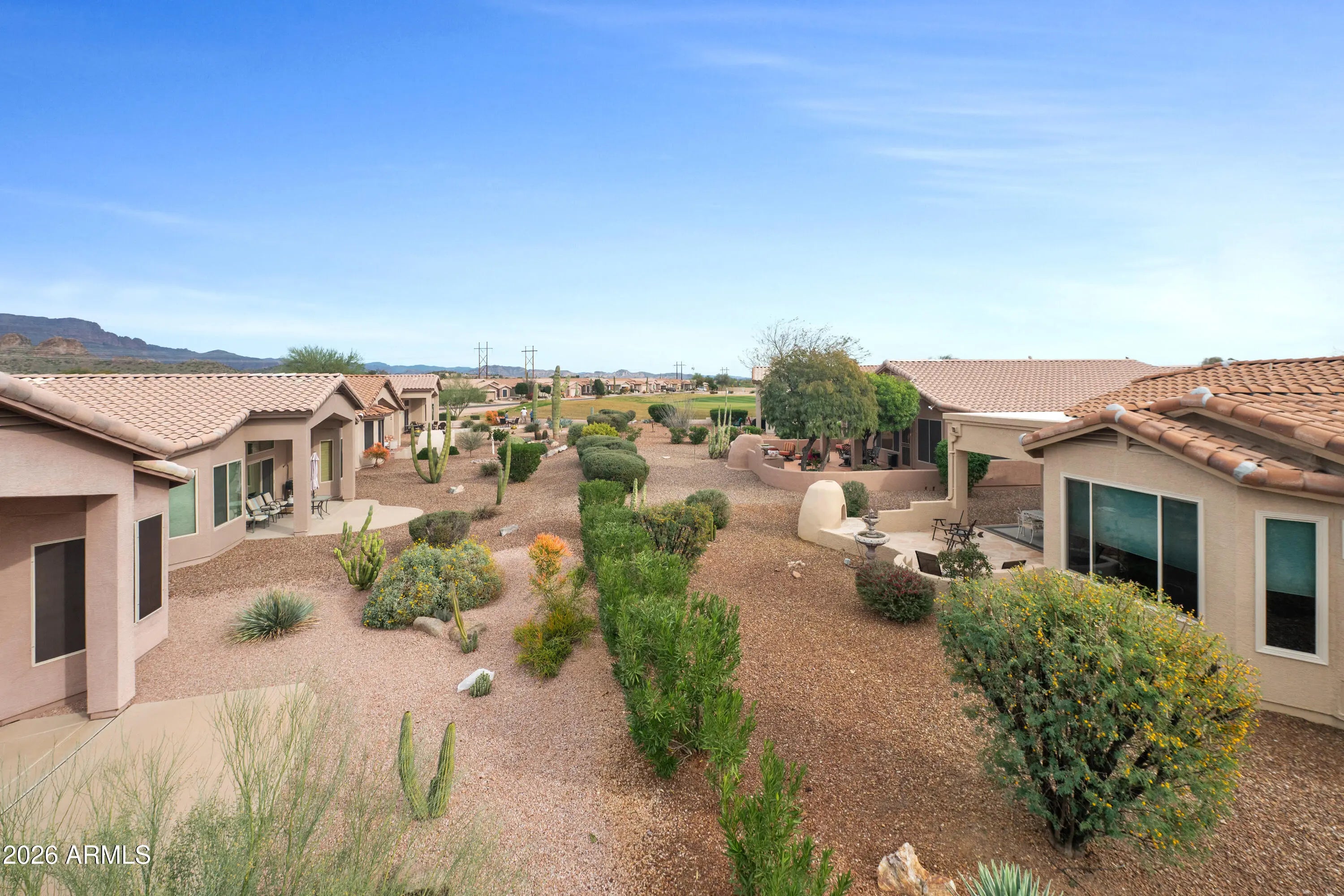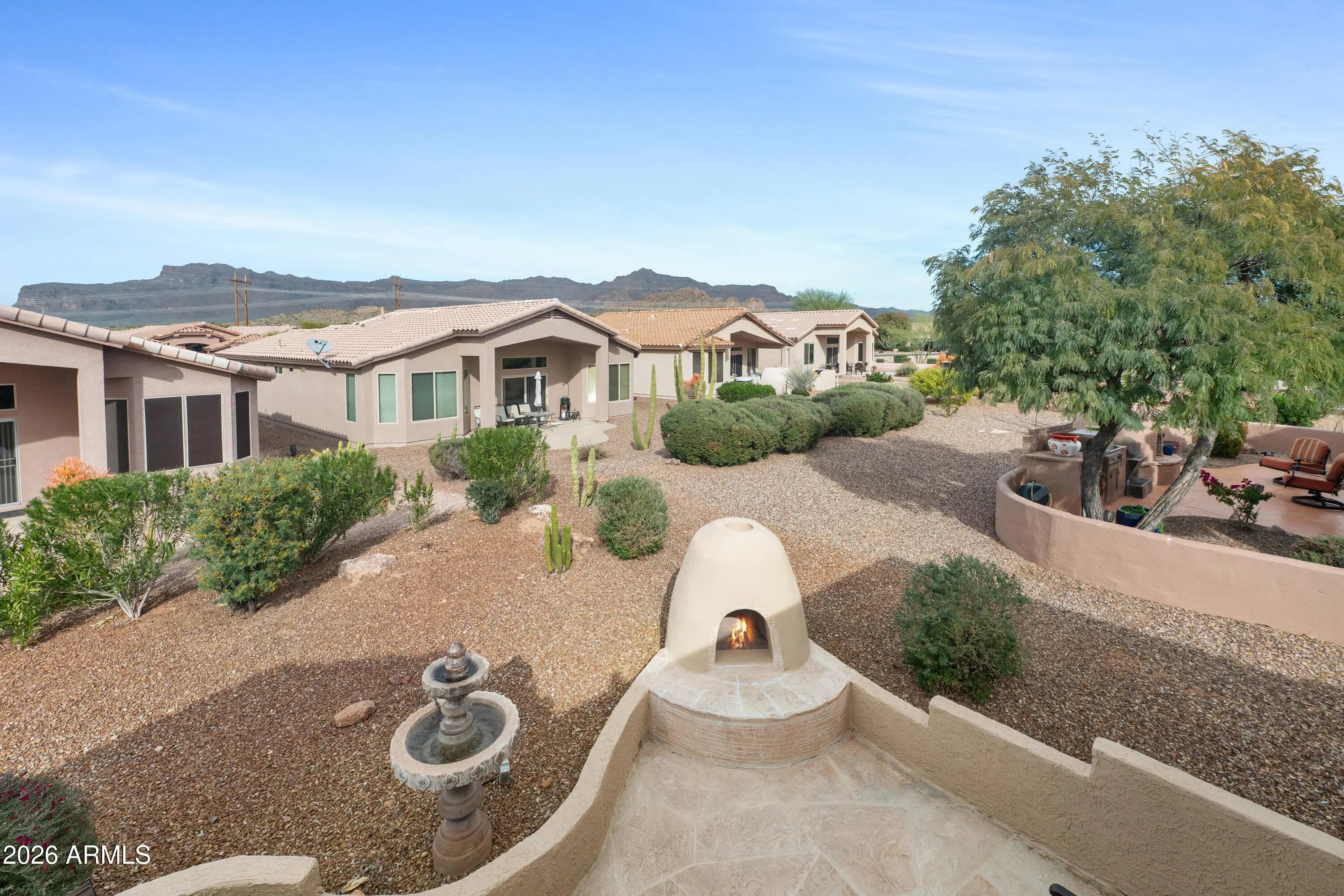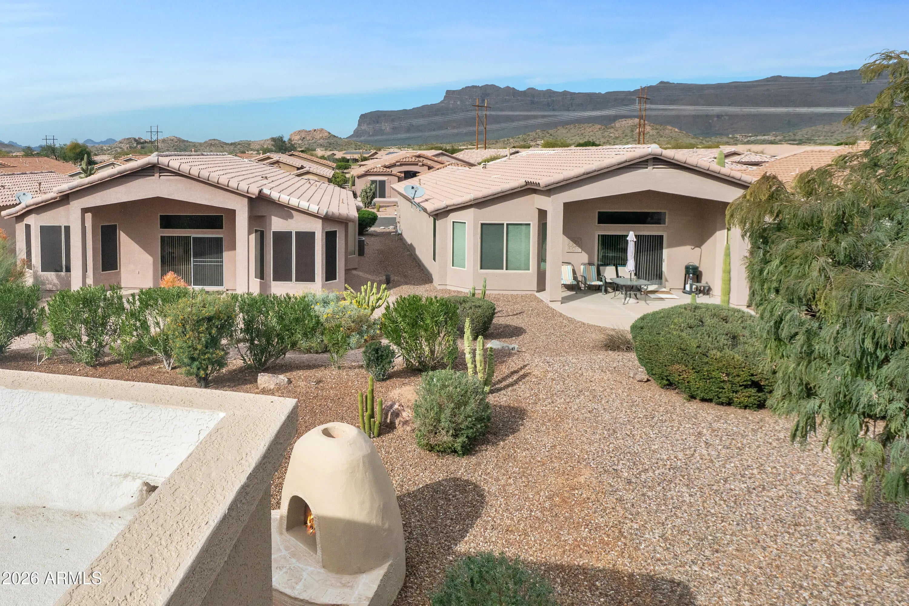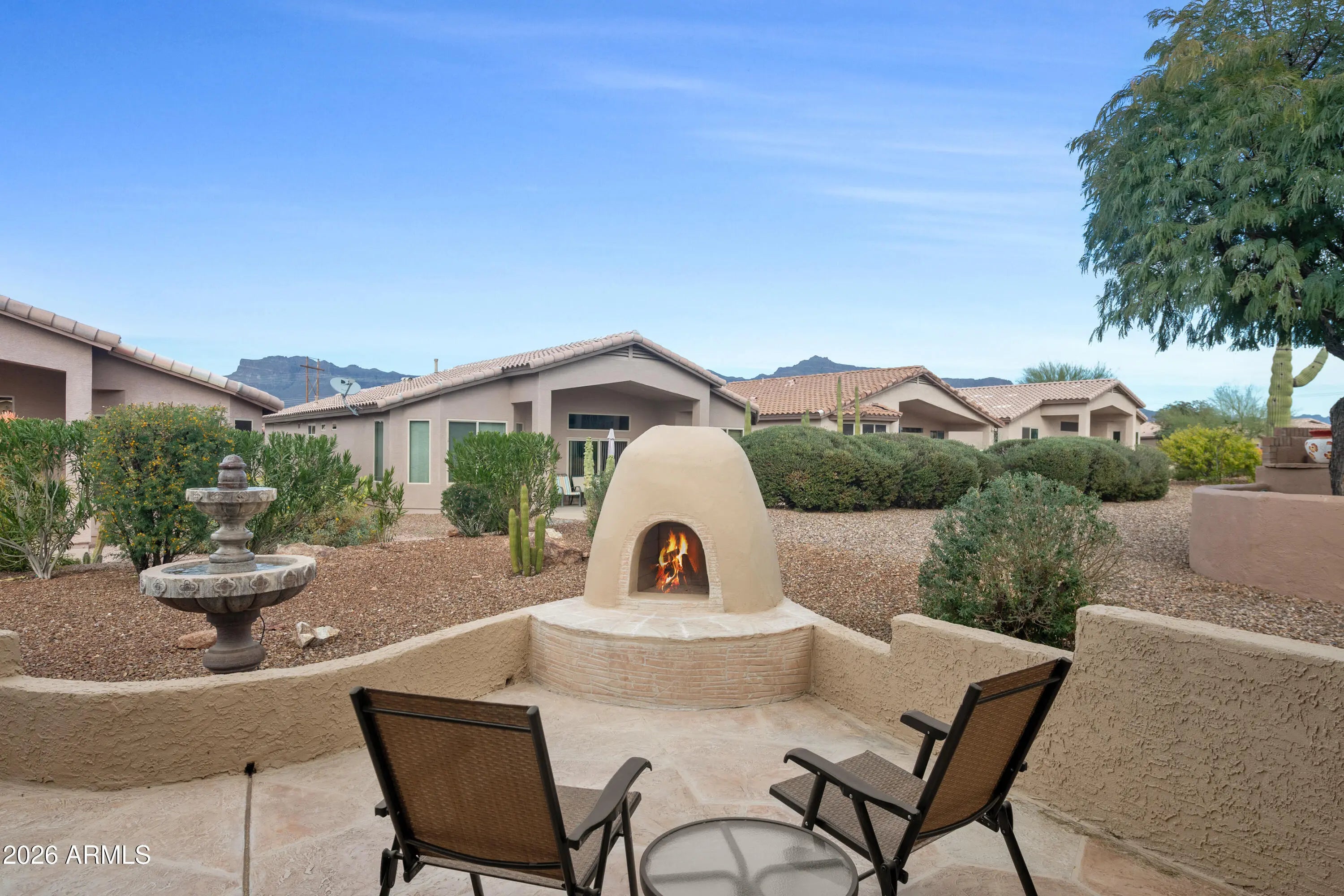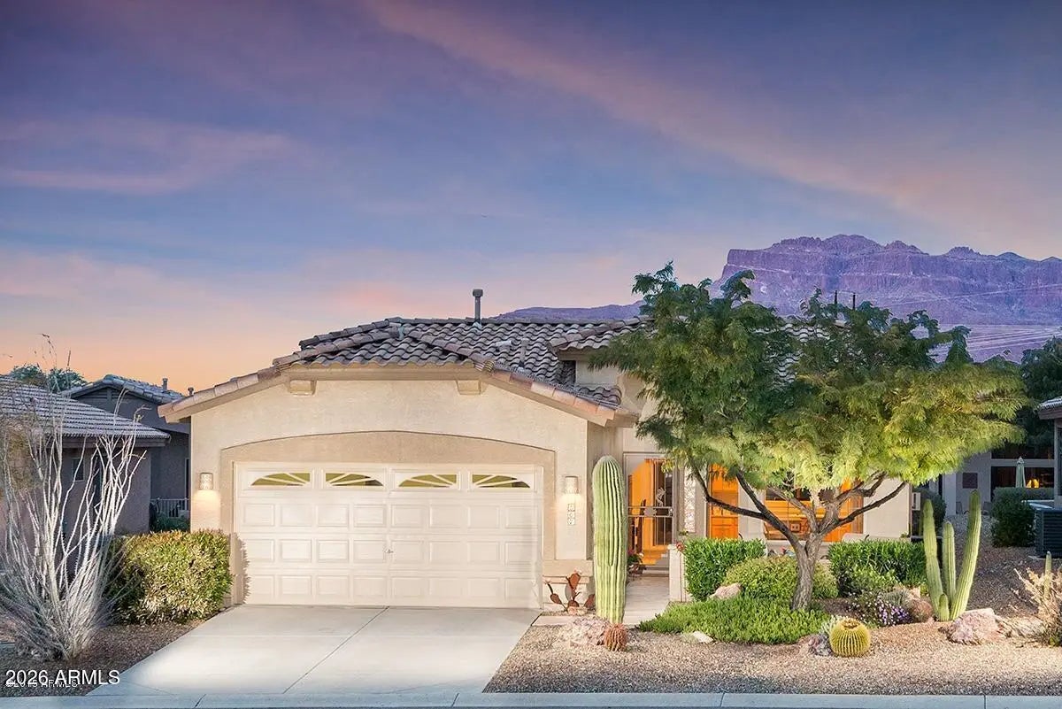 WOW! Fantastic 3 bedroom, FURNISHED, Turn-Key home with GOLF VIEWS & UPDATES THROUGH-OUT Including *** NEW ROOF (2023), NEW HVAC (2020), NEW EXT PAINT (2021), New Windows, LUXURY VINYL PLANK Flooring, UPDATED KITCHEN with Gorgeous Granite, UPDATED BATHS with Granite Counters & Very Tasteful Walk-in TILED SHOWER too! ***You'll ENJOY SUNSETS over Golf Course from your Courtyard, TWO FIREPLACES (great room and patio), Sliding glass door from Primary to Patio & More! Must See! You'll also appreciated the RENEWED FRONT & BACK PATIO (2021)! **This very popular 55+ Master Planned Community Features... ......Preferred Tee Times, On Site Restaurant, Driving Range, Fabulous 18 Hole Golf Course, 2 Pools, Spa, Fitness Center, PICKLE BALL, Tennis, Bocce Ball, Water Volleyball, Many Community Activities and Socials and MUCH MORE! ***Conveniently Located, close to WORLD CLASS HIKING and Gold Canyon Golf Resort, which offers two 18-hole Championship golf courses (Dinosaur Mountain and Sidewinder) and Expansive PATIO DINING with amazing golf and mountain views! ***Nature lovers will ENJOY the nearby 2.9 million acres of Tonto National Forest wilderness, hiking, off-road trails plus four beautiful, pristine lakes too! Conveniently located just 35 minutes from Sky Harbor Airport and 20 minutes from Mesa Gateway Airport and San Tan Village Shopping & Dining! ***You'll LOVE the GOLD CANYON LIFESTYLE!