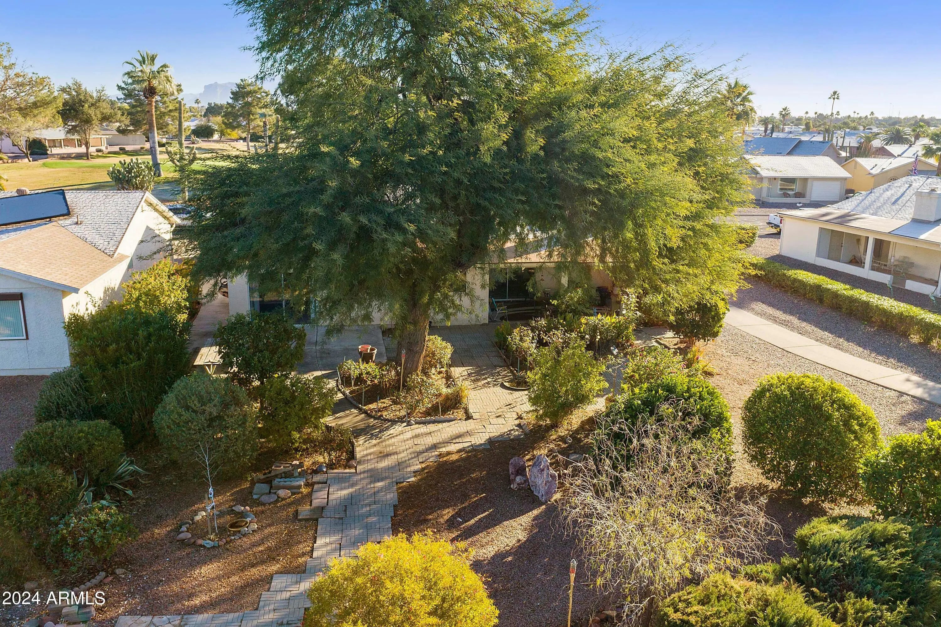 Terrific golf course location! Welcome to this nice home in Fountain of the Sun, a gated 55+ active‑adult community in East Mesa. This 2 bedroom, 2 bathroom residence offers 1,816 sq ft of comfortable living and an impressive 3‑car garage with an oversized door and built‑in storage. Situated on a large lot, the home features mountain and golf course views in the front and sweeping golf course views in the back. Inside, you'll find an open, light‑filled floor plan with a welcoming living area and cozy fireplace. The kitchen stands out with a commercial‑grade gas cooktop/oven (approx. $15K, propane) and a stainless steel refrigerator. The spacious primary suite includes a walk‑in closet and an en‑suite bathroom with a walk‑in shower. A nicely s tub/shower to provide comfort for visitors. A separate bonus/office space adds flexibility for work, hobbies, or relaxation. Step outside to a lush backyard filled with mature plants and peaceful golf course views. The covered patio is the perfect place to unwind and enjoy spectacular Arizona sunsets. A wonderful opportunity to enjoy resortstyle living in one of Mesa's most desirable activeadult golf communities.
