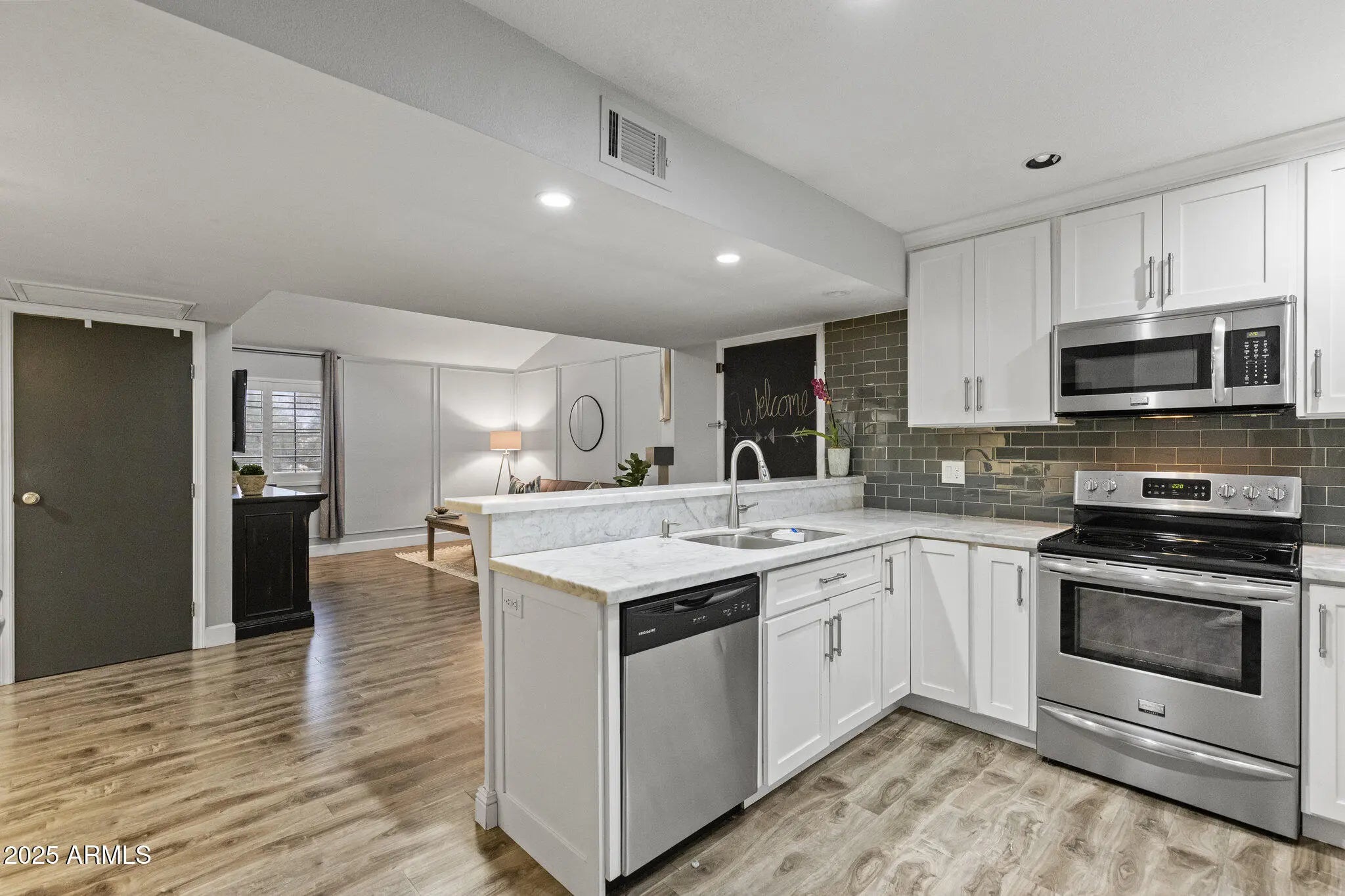 Welcome to this stunning, completely renovated condo just minutes from the 101 and I-17 where every detail has been thoughtfully updated from top to bottom. Professional interior design touches elevate the space, creating a modern, cohesive look throughout. The kitchen shines with upgraded cabinetry and sleek marble countertops, perfect for both everyday living and entertaining. Built-in closet systems provide exceptional organization and maximize storage. Enjoy the convenience of a private one-car garage and the added value of all TVs conveying with the home. For peace of mind and energy efficiency, AC was replaced in 2023. Every room reflects quality craftsmanship and thoughtful upgrades. This truly turn-key condo offers style, comfort, and exceptional value.