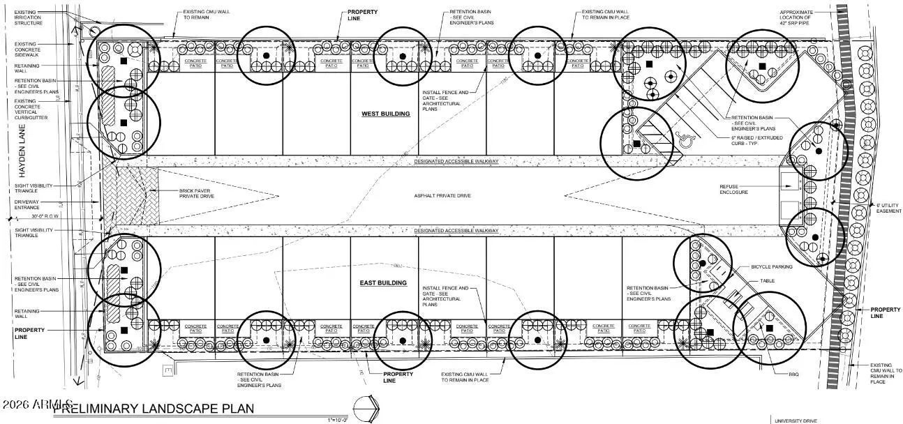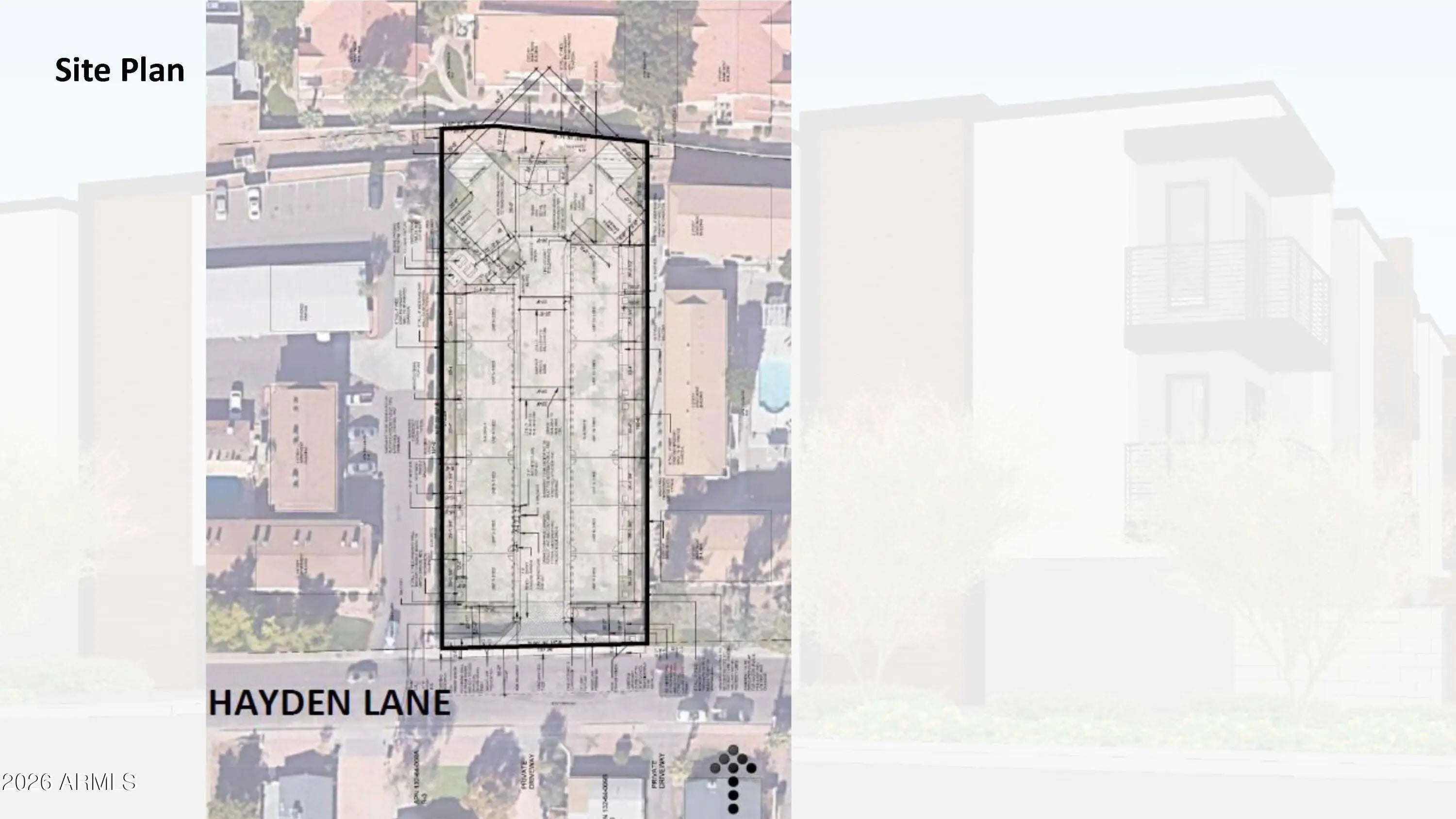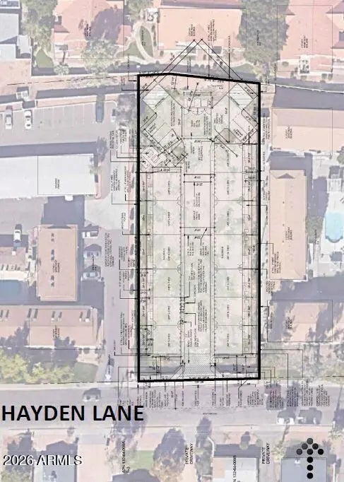 READY TO BUILD, PERMITS READY TO BE PULLED. City-approved construction docs ready to go for a 13-unit modern apartment development. Fantastic rental area in Tempe. Hayden Lane Townhomes is planned with (9) 2-bedroom, 2.5-bathroom and (4) 3-bedroom, 2.5-bathroom units. They all have 4 private balconies per unit and each unit includes a two-car garage. The planned redevelopment is a highly compatible infill development of a vacant parcel surrounded mainly by multi-family residential uses in the larger area between McClintock Drive and Smith Road, and University Drive to Apache Boulevard. . The north side of Hayden Lane here has transitioned to exclusively multi-family uses over the last 60 years. Hayden Townhomes is very similar to the existing multi-family in the area. Owner Agent.