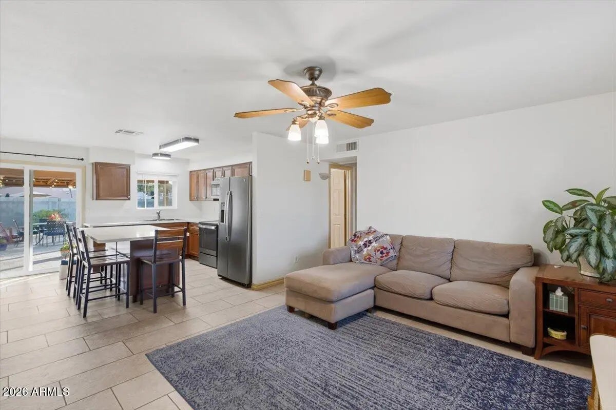 Beautifully updated home with expansive landscaped yard and 8 foot RV, plus additional gate and pavers to driveway. Enter into an open living area and kitchen then step out to your newly customized, park-like backyard with extended patio, gazebo, pavers and grassy play area. All easy to maintain with the help of the new smart irrigation system.Eat in kitchen w/breakfast bar, beautiful cabinets and counter tops. Additional storage cabinets located in laundry room. Interior features tile throughout the home, newer doors, windows, lighting and appliances, including; microwave, refrigerator, washer and dryer. New HVAC and Water Heater. Easy access to 101 and 51 freeways. Enjoy abundant shopping, dining and outdoor parks nearby. Don't wait, this is a rare find!