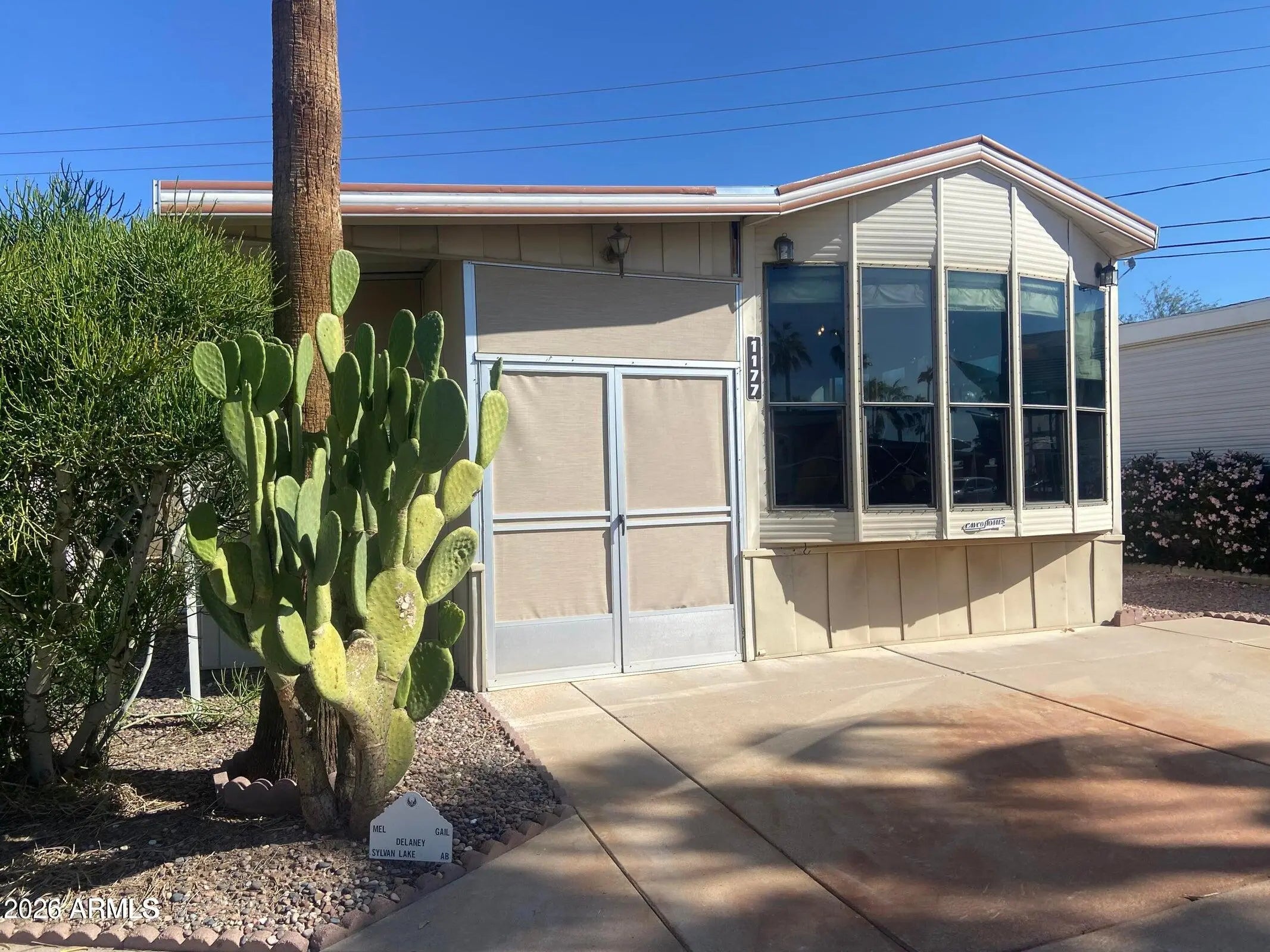 Own the land in this 55+ golf course resort. Here is your chance to own a winter home in great condition at a small price! This older unit will impress! There is a long list of upgrades that include a new AC/heat in 2025, 2024 new roof, rebuilt kitchen including new appliances, solid surface flooring throughout. Over the top bathroom renovation including a spacious walk-in shower. New water heater in 2019. Recently added sunscreens surround a large Arizona room with attached shed/laundry. Comes with a termite warranty and all documentation for the work that has been done. Turn-key!