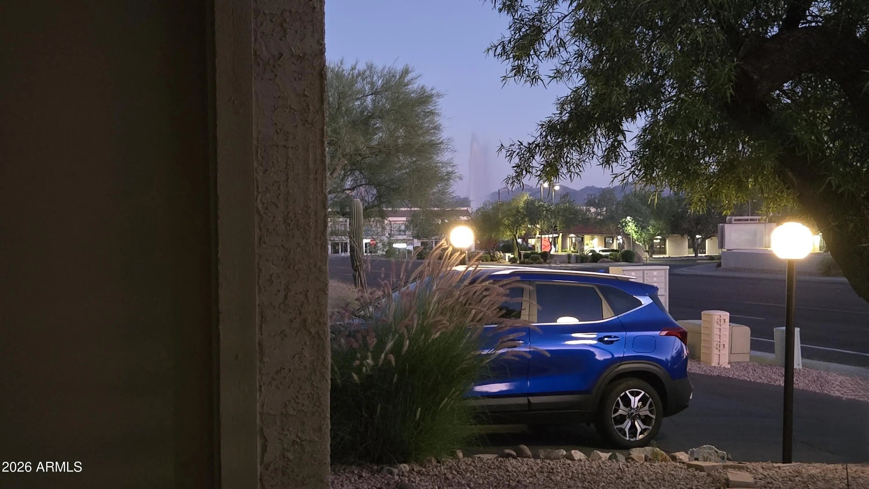 Centrally located to downtown restaurants, stores, and groceries with a view of the world's tallest lake fountain! 1,766 square feet! Huge! 2 MASTER BEDROOMS + DEN, 2.75 BATHS, and a 1 car GARAGE w built-in cabinets. 36in doors. Updated w granite countertops in kitchen and baths, cabinetry w/ soft close, slate backsplash, recessed lights, toilets, tub, and huge custom stone shower. Large closets and dual outdoor covered balconies with sunset and pool views. HOA covers exterior, landscaping, and trash. Beautifully landscaped exterior w/ flowers galore! Fountain Hills is upscale and growing with events like the 4th of july fireworks, annual free car show, ballet, hiking, astronomy center and so much more.