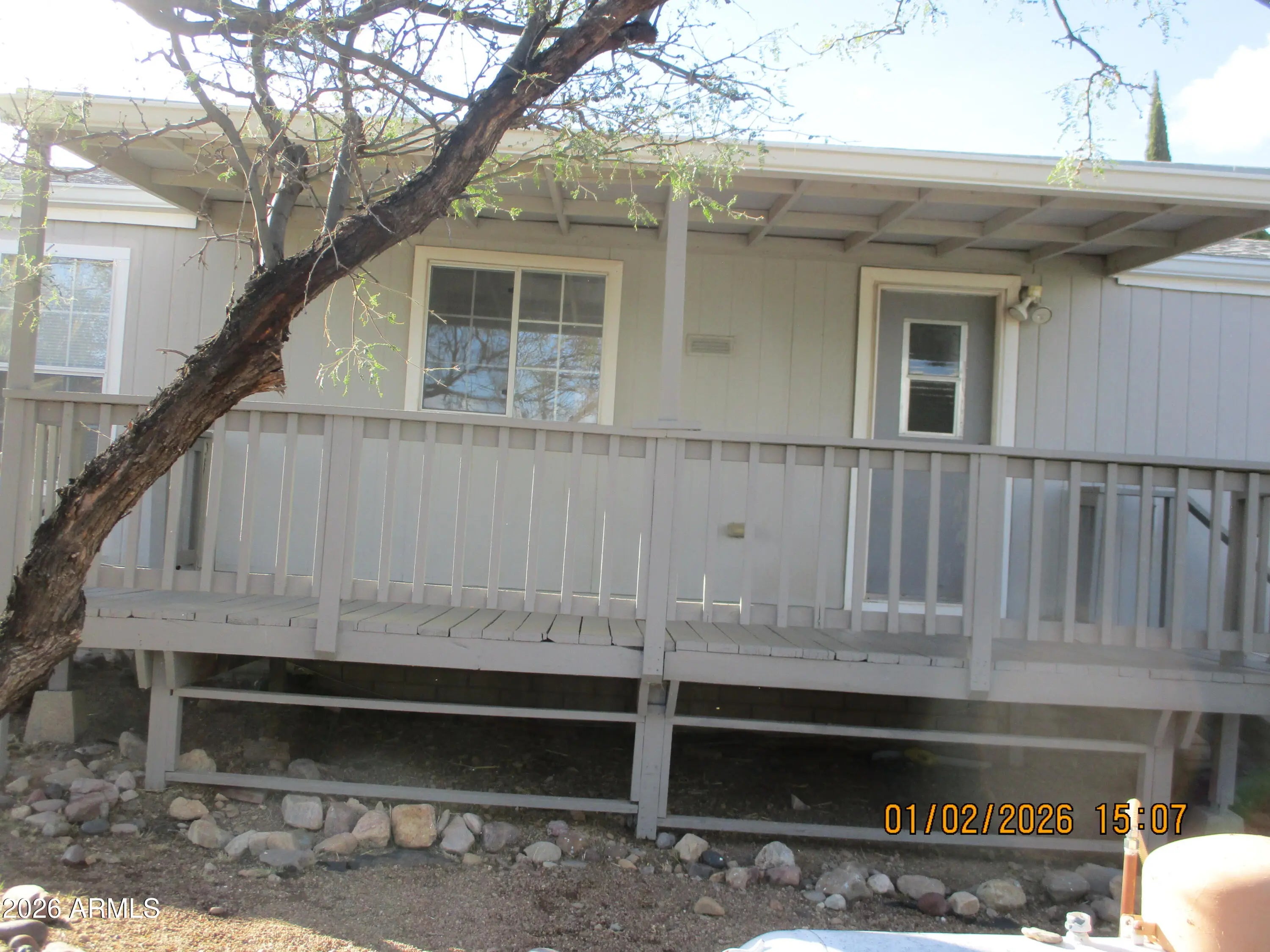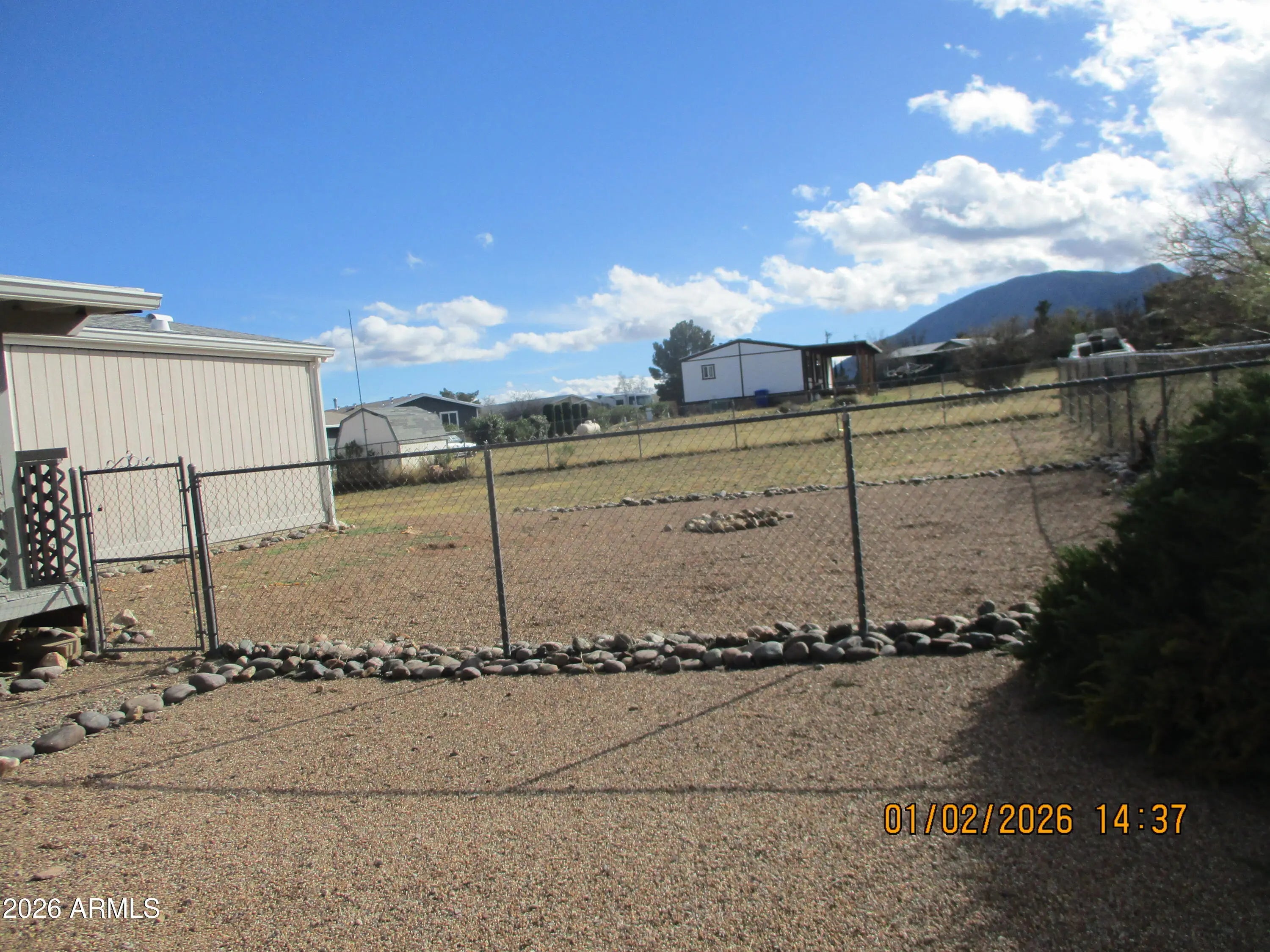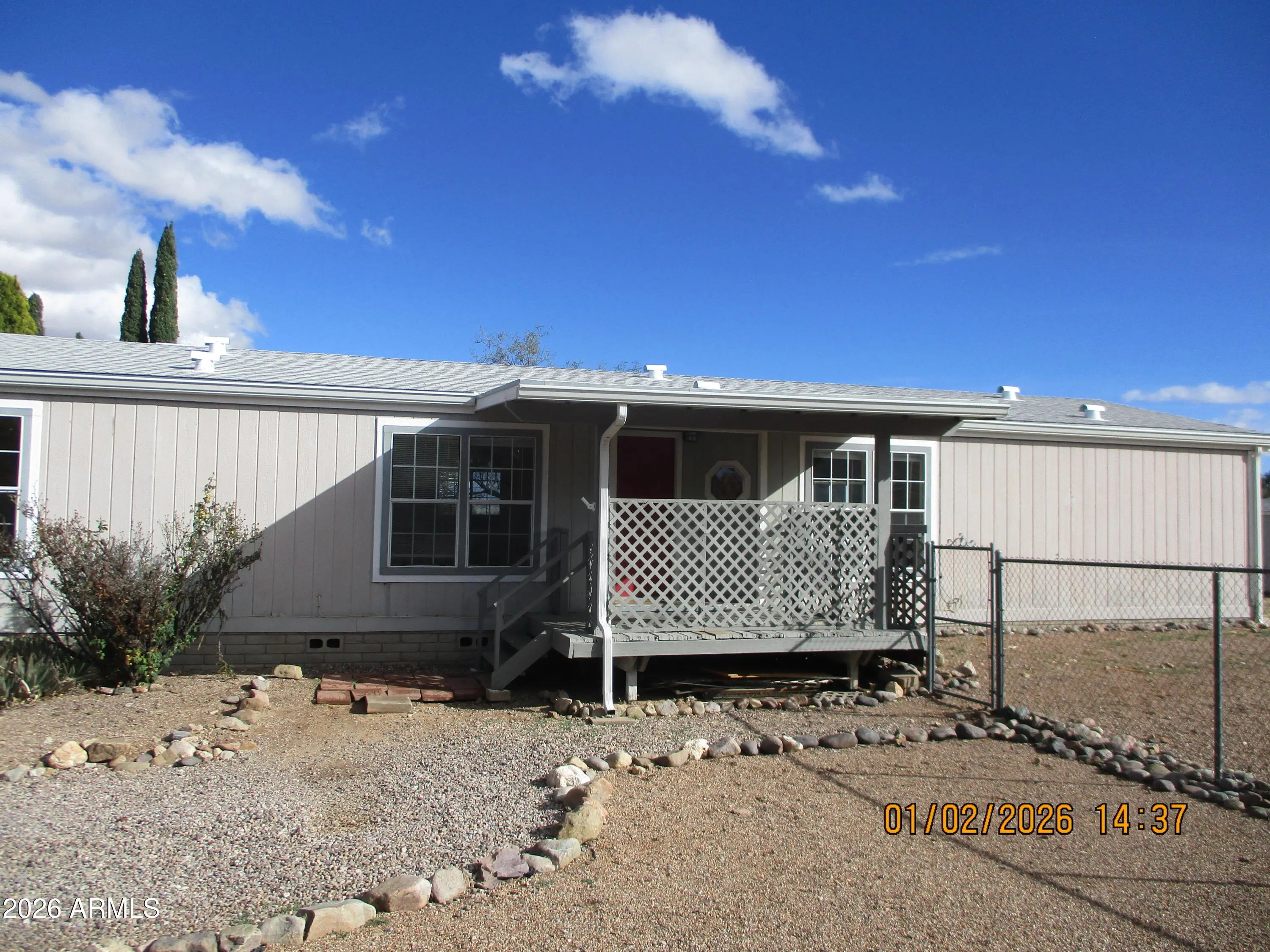Secluded country living with a great view of the Huachuca mountains. 3 bed, 2 bath home, with an open concept living area with a breakfast bar. Split bedroom design with carpeted bedrooms. Separate laundry room with hook ups for washer and dryer. Front and back covered decks, fenced back yard with a storage shed. Evaporative cooler and ceiling fans for summer and forced air furnace for winter. Hurry at this price.