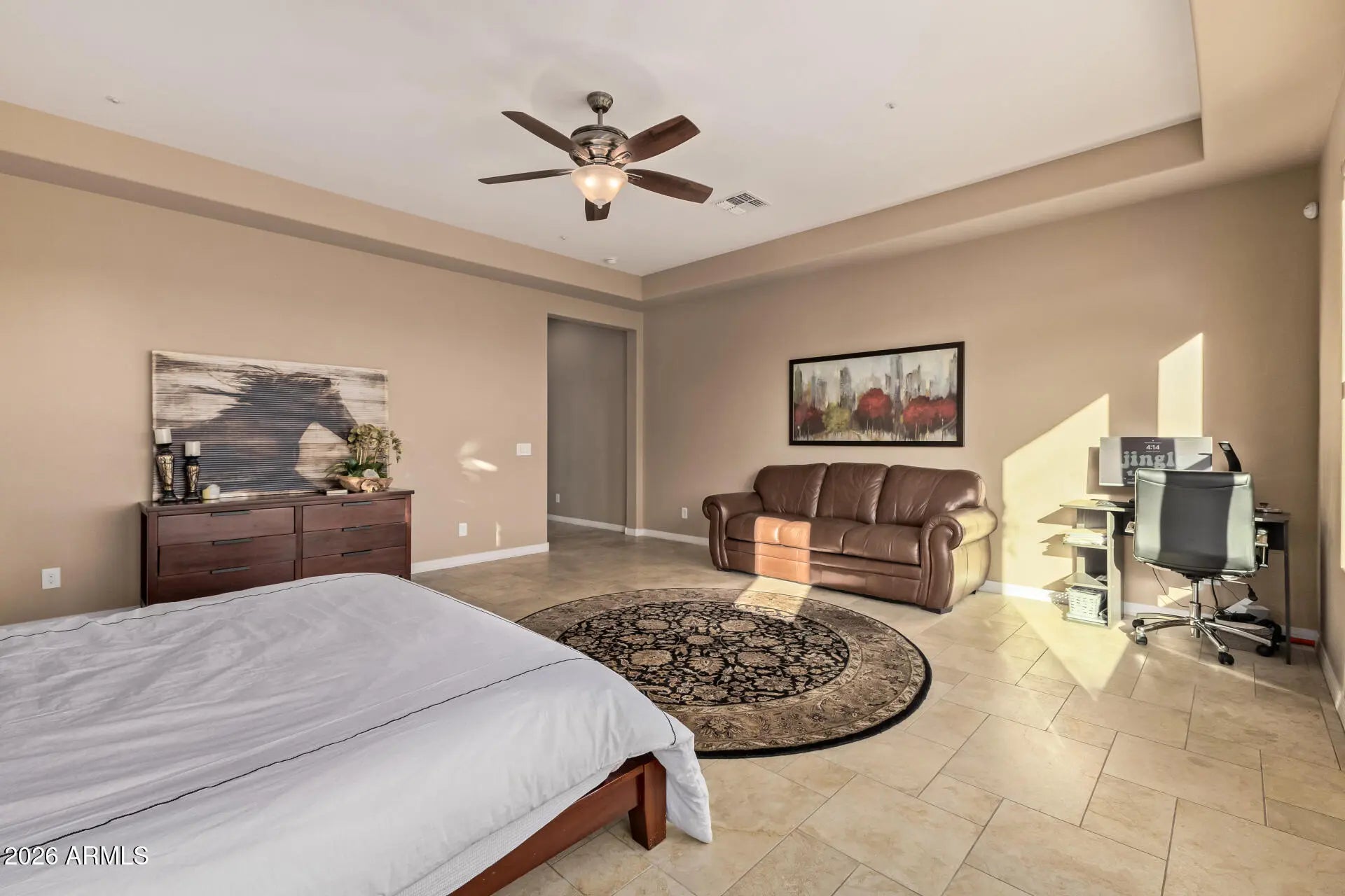 MOVITAVED SELLERS. Beautiful acre lot. Located within a gated cul-de-sac on just over an acre, this exceptional Peoria estate offers refined luxury, privacy, and resort-style living. The thoughtfully designed main residence features 4 bedrooms, 4 bathrooms, elegant tile flooring throughout, and a private casita, ideal for guests, multigenerational living, or a home office. The chef's kitchen is a true centerpiece, showcasing a Wolf gas range, Sub-Zero refrigerator, generous prep space, and a butler's pantry complete with a wine and beverage refrigerator perfect for entertaining. Expansive living areas open seamlessly to the outdoors, where a private resort-style setting awaits. The backyard features a heated pool and spa, a full sport court, and sprawling grounds that offer both privacy and versatility perfect for entertaining, recreation, or simply enjoying Arizona's outdoor lifestyle. Car enthusiasts and adventurers alike will appreciate the 3-car garage, two RV gates, and ample space to add an RV garage or additional structures. Situated on a premium oversized lot within a gated HOA community, this property combines luxury, functionality, and exceptional outdoor living in one remarkable setting.