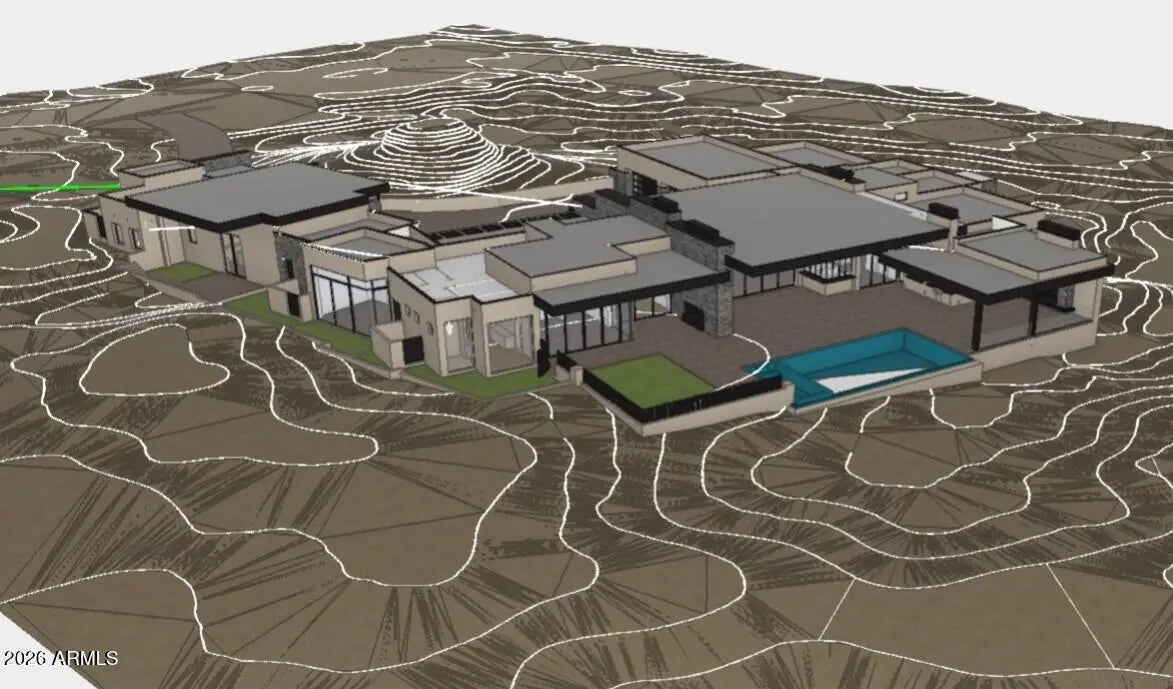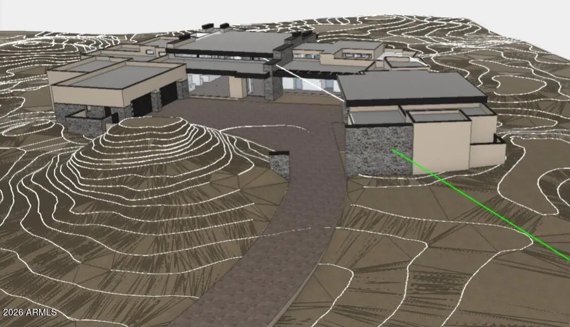 A Modern Desert Masterpiece Under Construction in Cantabrica Estates. Located in the highly coveted Troon area of North Scottsdale, within the exclusive gated enclave of Cantabrica Estates, this extraordinary modern residence is a collaboration between award-winning architect Craig Wickersham and luxury home builder DWD Homes. Thoughtfully designed to complement its dramatic High Sonoran Desert setting, the home presents a striking contemporary silhouette that maximizes expansive views, privacy, and a seamless connection to the surrounding landscape. Currently under construction with an anticipated completion in fall 2026, the residence is sited on an expansive 2.57-acre home site and showcases a pallet of refined design-forward finishes. The interior blends modern elegance with warm, organic textures and soothing tones, creating a serene yet visually compelling living environment. The main residence offers approximately 7,191 square feet and includes five ensuite bedrooms, two additional half baths, a dramatic great room, and a formal dining area that opens directly to outdoor living spaces. The chef's kitchen is complemented by a separate service kitchen and breakfast room, ideal for both daily living and elevated entertaining. Additional thoughtfully designed spaces include a private office, temperature-controlled wine room, a spacious entertainment or media room with direct outdoor access, and a dedicated fitness and wellness room with its own private patio. A fully appointed guest house adds approximately 1,769 square feet and features two ensuite bedrooms, a full-size kitchen, separate living room, and laundry facilities, bringing the total living area to approximately 8,960 square feet. The property is further enhanced by 7 oversized garage spaces, including a generous area ideal for a workshop, storage, or specialty vehicles. Designed for those with a discerning appreciation for craftsmanship, artistry, and fine materials, the home incorporates the latest in efficiency and technology throughout. Designer-selected wood-grain cabinetry is featured prominently in the kitchens and living spaces, while Fleetwood window systems and retractable walls of glass flood the interiors with natural light and create a seamless indoor-outdoor living experience. The outdoor living environment is equally compelling, designed to entertain and inspire. Expansive covered patios include a fully equipped outdoor kitchen, a large ramada with multiple seating and dining areas, two outdoor fireplaces, and an oversized television niche. The resort-style pool features a generous Baja shelf, swim jets, and a raised spa, all set against breathtaking views of the Sonoran Desert and the McDowell and Mazatzal Mountain ranges. Sunset colors across the surrounding mountains provide a truly awe-inspiring backdrop. Beyond the home itself, Cantabrica Estates offers a rare sense of tranquility and space. This intimate enclave of just nine luxury properties is surrounded by pristine desert beauty, yet remains conveniently close to the best of Scottsdale living. Nearby amenities include miles of scenic hiking, biking, and horseback riding trails, lakes for boating and fishing, and an array of world-class golf courses. Highly ranked Scottsdale schools and the renowned Mayo Clinic are also close at hand. Scottsdale's vibrant arts and cultural scene further enhances the lifestyle, with an impressive mix of museums, galleries, shopping, fine dining, and nightlife. Annual events such as Spring Training baseball, the Barrett-Jackson Car Auction, the Arabian Horse Show, and the Waste Management Phoenix Open add to the area's dynamic appeal. Perfectly suited for multi-generational living, the corporate executive, or anyone seeking a refined desert retreat, this exceptional residence harmonizes modern architecture with timeless natural elements. It offers privacy, serenity, and an elevated lifestyle in one of North Scottsdale's most exclusive settings.
