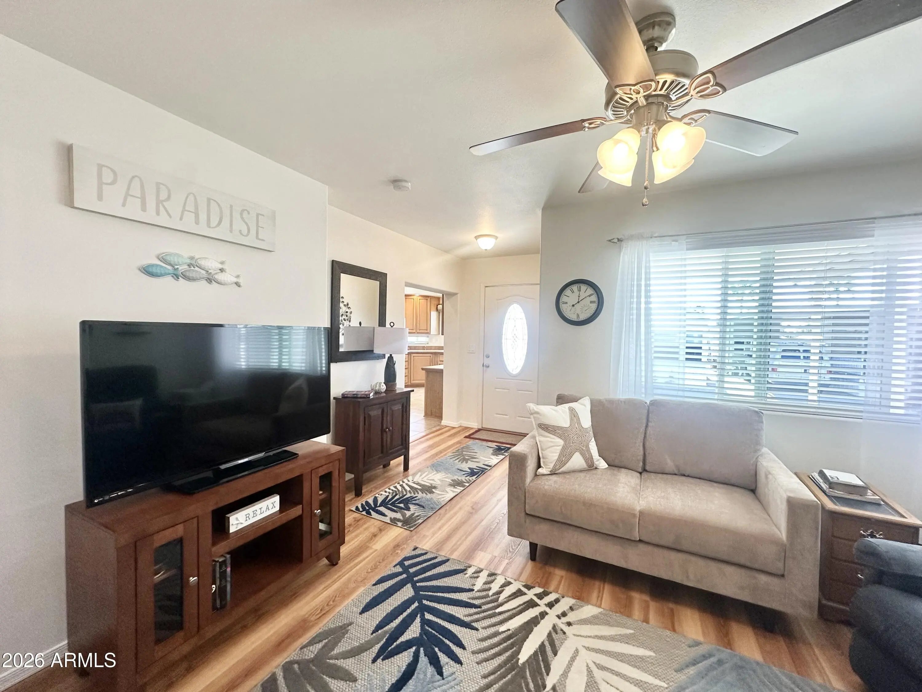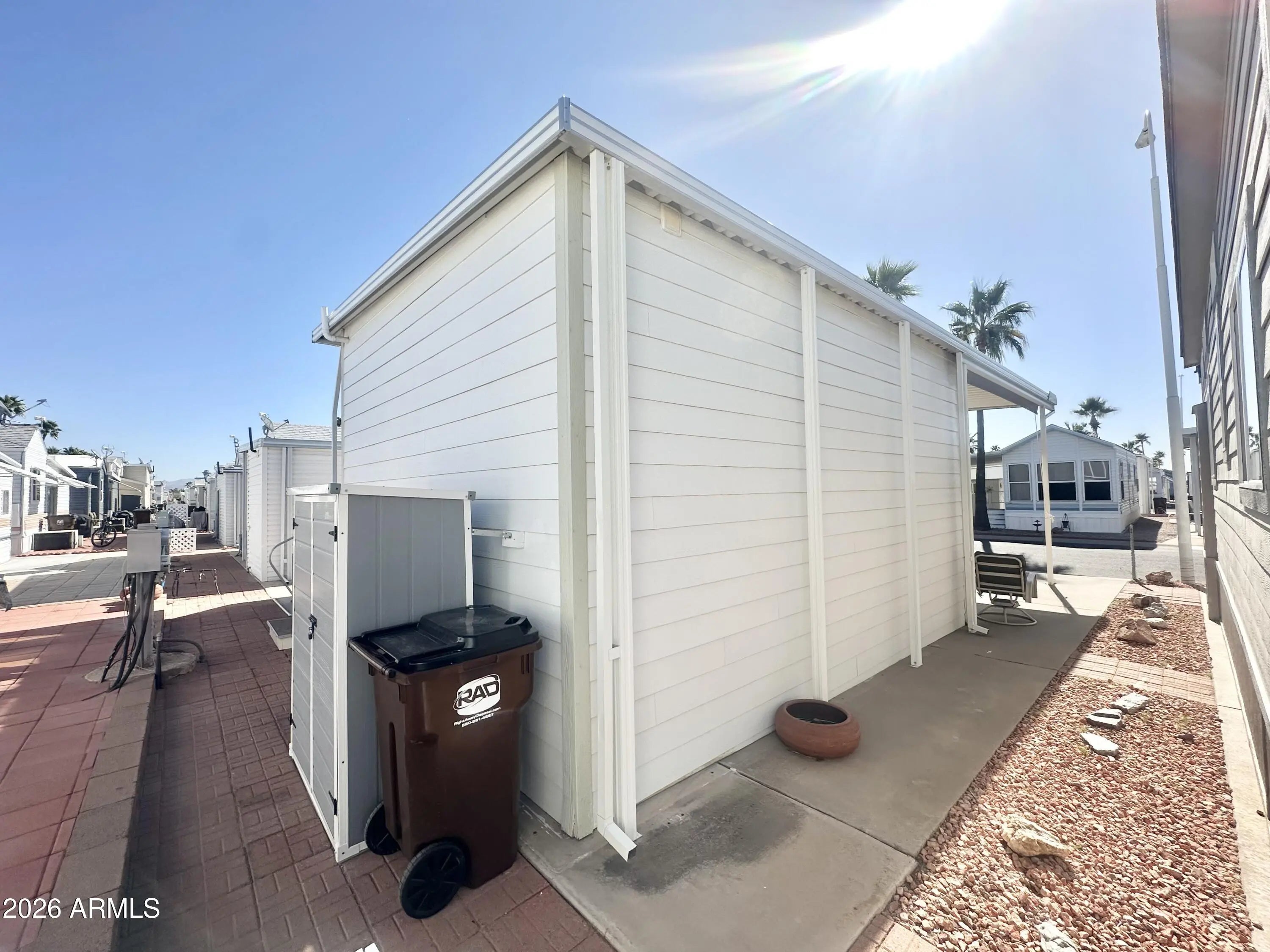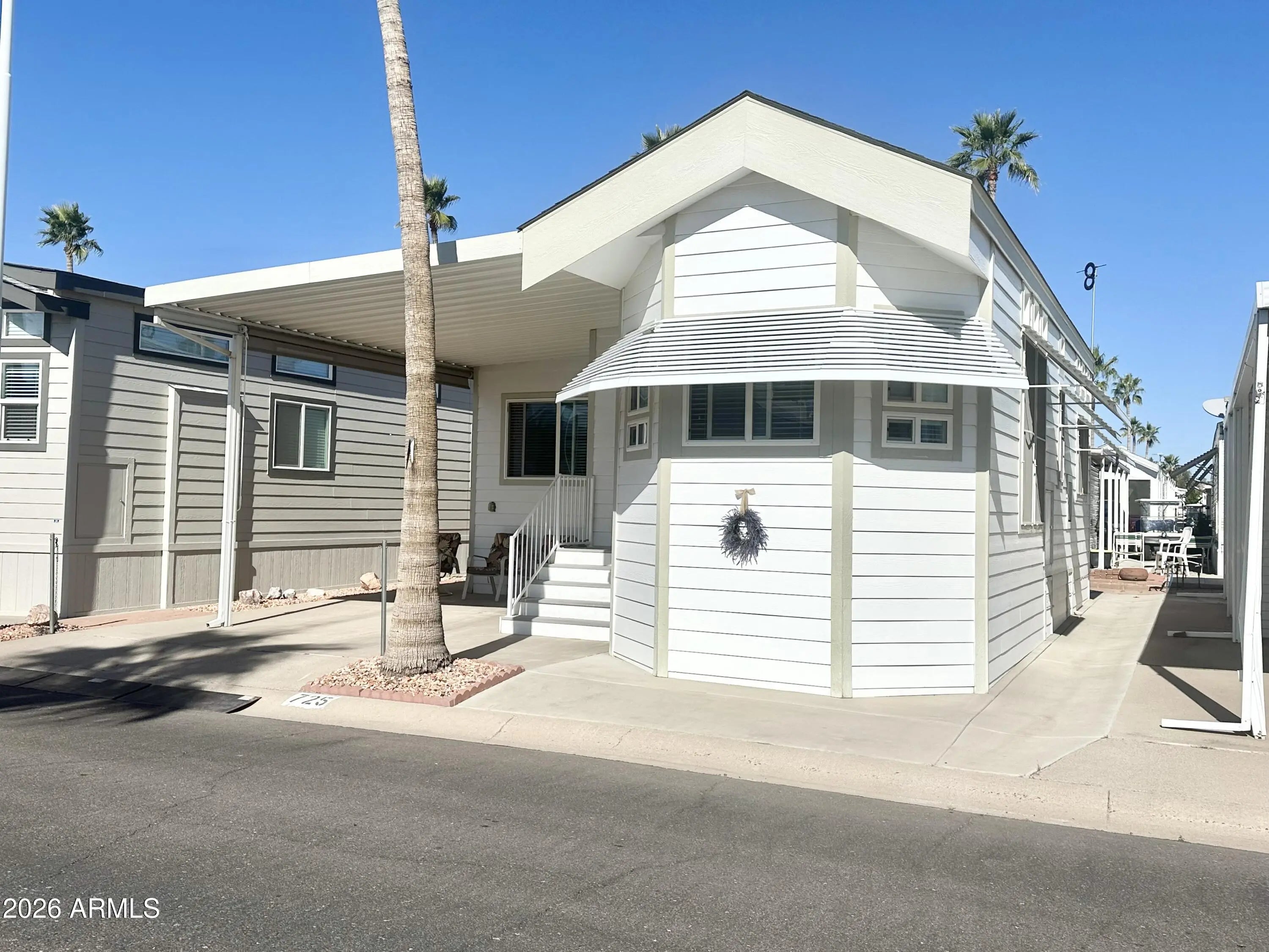 This GEM IS A TRUE SHOWSTOPPER-wait until you see this GORGEOUS HOME! A 2011 park model located in a HIGHLY DESIRABLE 55+ resort community filed with fun activities and an INCREDIBLE lifestyle! This STUNNING upgraded home features 1 bed, 1.75 bathrooms, with QUALITY at every turn & UPGRADED GALORE. NEUTRAL soothing colors flow throughout the home, creating a calm & inviting atmosphere! The GORGEOUS front kitchen is a chef's dream, offering an abundance of HIGH END CABINETRY, FABULOUS counter space along with a FULL SIZE SMOOTH TOP STOVE! Elegant soffits w/ under-mount lighting & LARGE windows fill the home with natural light! The OPEN FLOOR plan with HIGH FLAT CEILINGS is perfect for entertaining & hosting guests! The dining area is conveniently located just off the kitchen, and the home comes BEAUTIFULLY FURNISHED with Tasteful, high end quality furnishings! The GRAND AZ room features NEW WOOD LOOK flooring & provides comfortable, versatile space for relaxing or gatherings. Your guests will LOVE the large oversized AZ room bathroom, complete with a WALK IN SHOWER for added privacy! An additional laundry room includes a FULL SIZE WASHER/DRYER. A BONUS UTILITY SINK, and access to the back patio. STORAGE ABOUNDS throughout this home. The bedroom offers a queen size bed, an impressive built in dresser w/ ample drawers & cabinets including a large mirrored closest. The Main bathroom is SPACIOUS, featuring an EXTRA LARGE VANITY, mirrored storage cabinet, WALK IN SHOWER & plenty of room to get ready comfortably. Additional peace of mind comes with a NEWER A/C UNIT INSTALLED WITHIN THE past 5yrs. Outside, enjoy beautiful curb appeal w/ upgraded siding, a large roomy carport, extra wide entry steps & room to sit outside w/ patio furniture & soak up the sunshine! QUALITY EVERYWHERE YOU TURN-come live the lifestyle you deserve. OWN THE LAND..OWN THE FUN in this EXCEPTIONAL HOME...TOO MUCH TO LIST ON THIS BEAUTY!