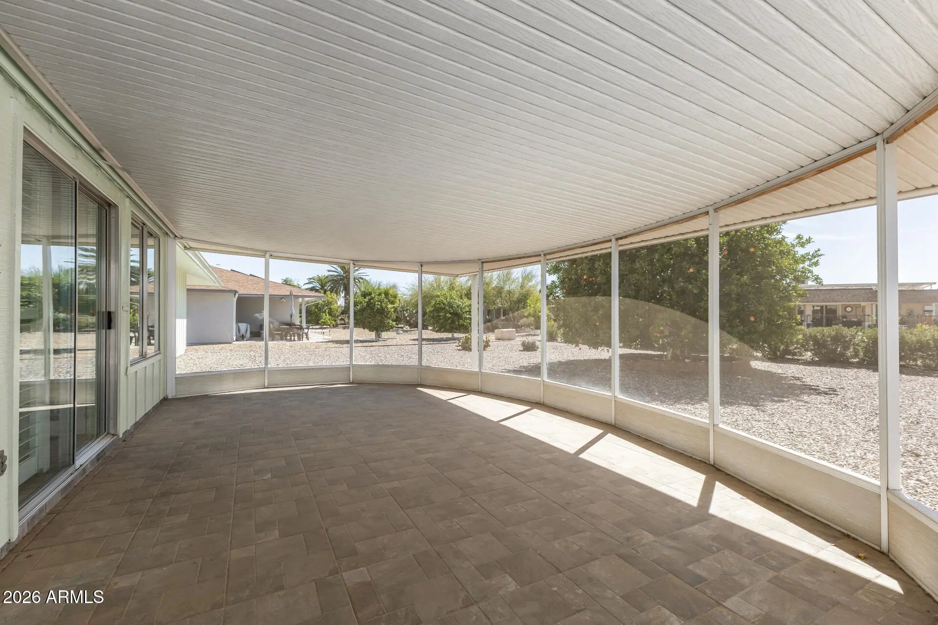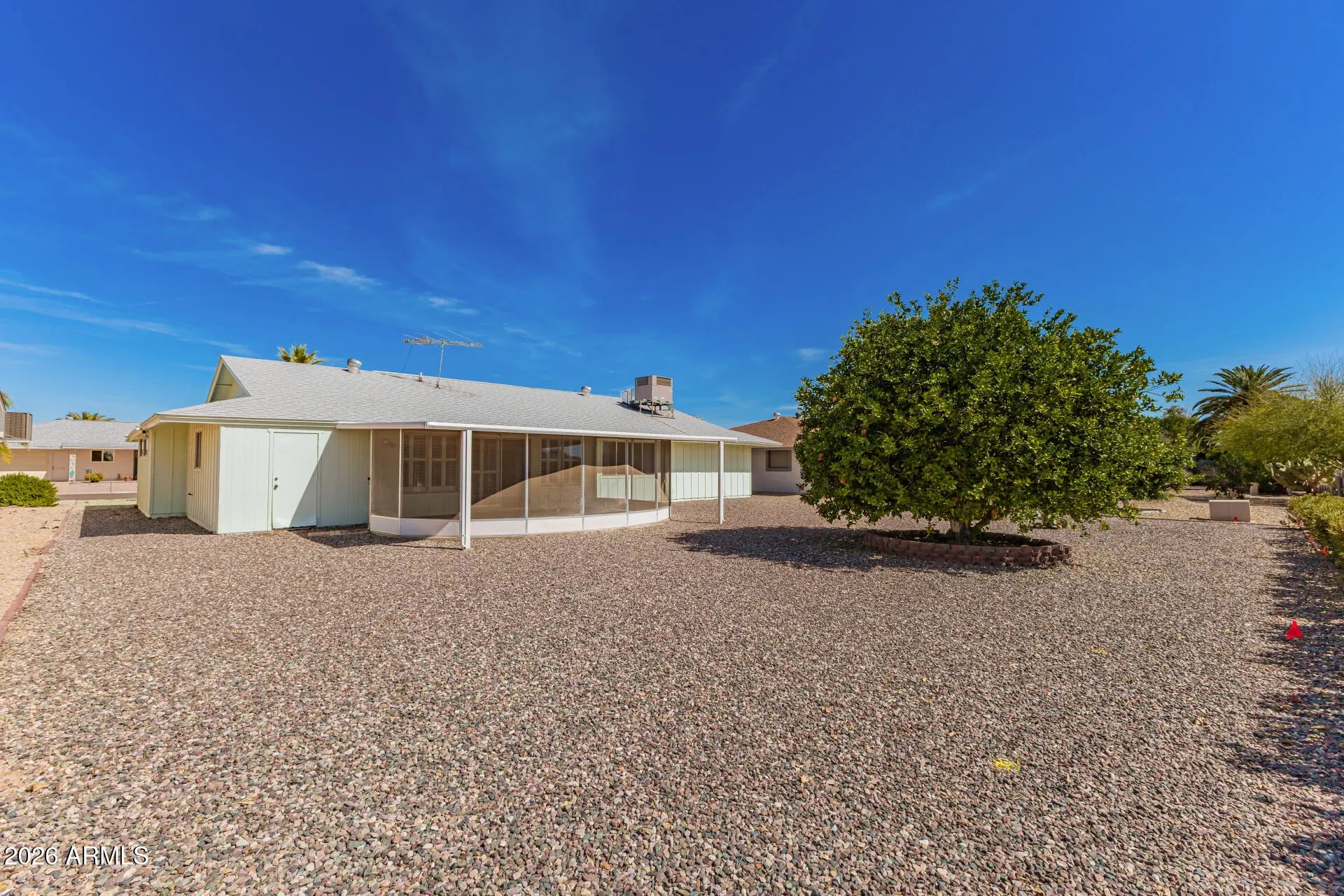 Recently painted, updated and back for sale! Charming 3-bed, 2-bath home offering 1,699 sqft with no carpets. Filled with natural light, an open floor plan with large rooms, providing the perfect seasonal retreat with spaces to relax and host guests. 2 updated bathrooms, including an ADA-compliant offers, added comfort and peace of mind for long-term living or visiting guests. Enjoy AZ's beautiful weather from the screened-in, tiled patio overlooking a low-maintenance backyard with a blossoming orange tree. The home also features a spacious laundry area and a flexible craft/hobby room, ideal for projects, storage, or a dedicated workspace. Designed with convenience in mind, this home offers an easy ''lock-and-leave'' lifestyle in a 55+ community. Located in Sun CityArizona's original 55+ communityyou'll be just minutes from championship golf courses, recreation centers, pools, fitness facilities, and countless clubs, classes, and social events. Whether you're seeking an active winter escape or a comfortable seasonal home base, this Sun City gem delivers the best of Arizona living.