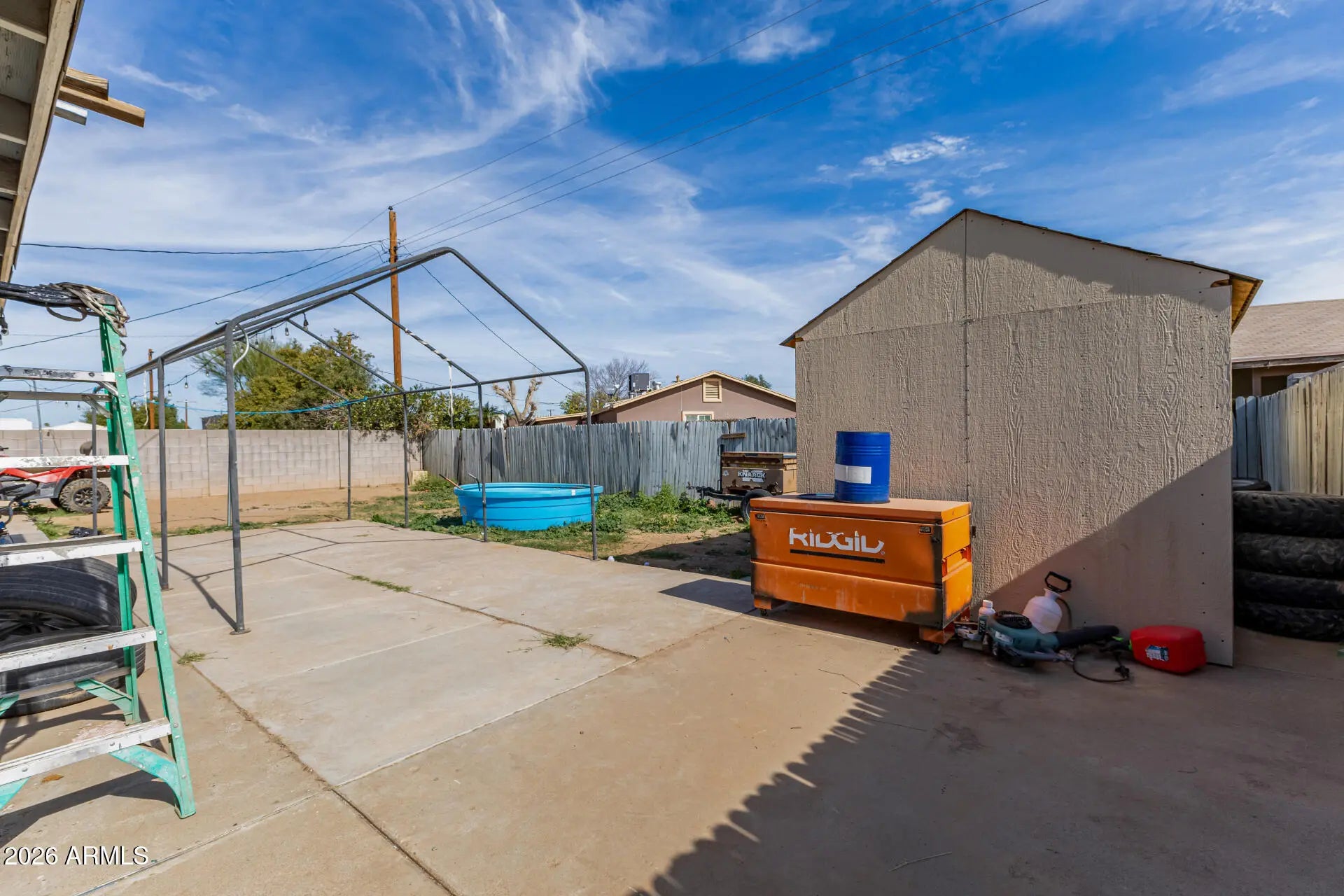Single-story home with an open, flowing layout and tile floors throughout. The kitchen features ample cabinetry and tile counters, perfect for everyday living. Bright, spacious bedrooms and updated bathrooms offer comfort and style. Enjoy the sizable backyard with a large concrete slab, covered structure, and shed—ideal for gatherings, projects, or extra storage. Low-maintenance desert landscaping, wide driveway, and gated side access complete the exterior. Convenient to schools, shopping, and major roadways.