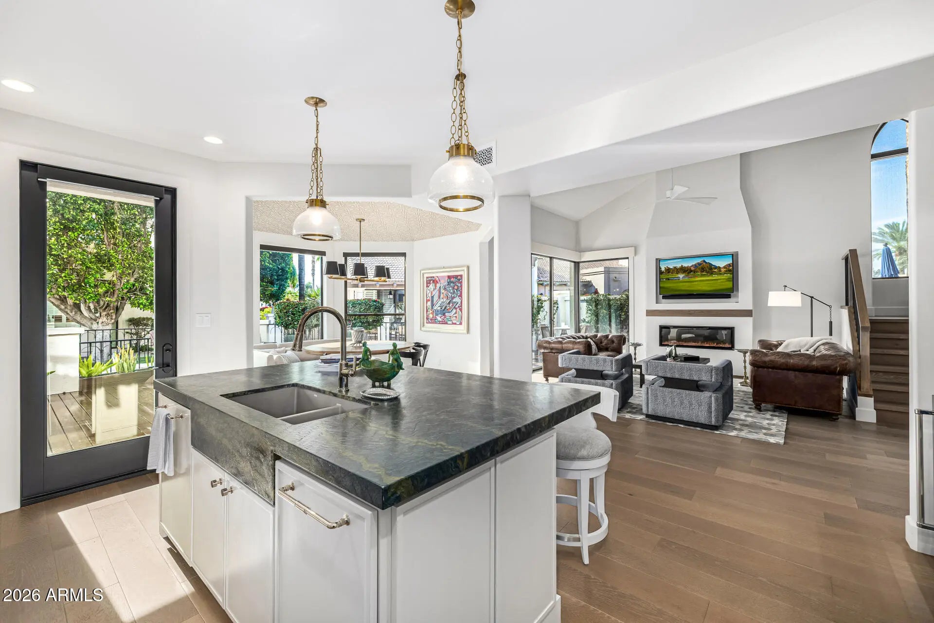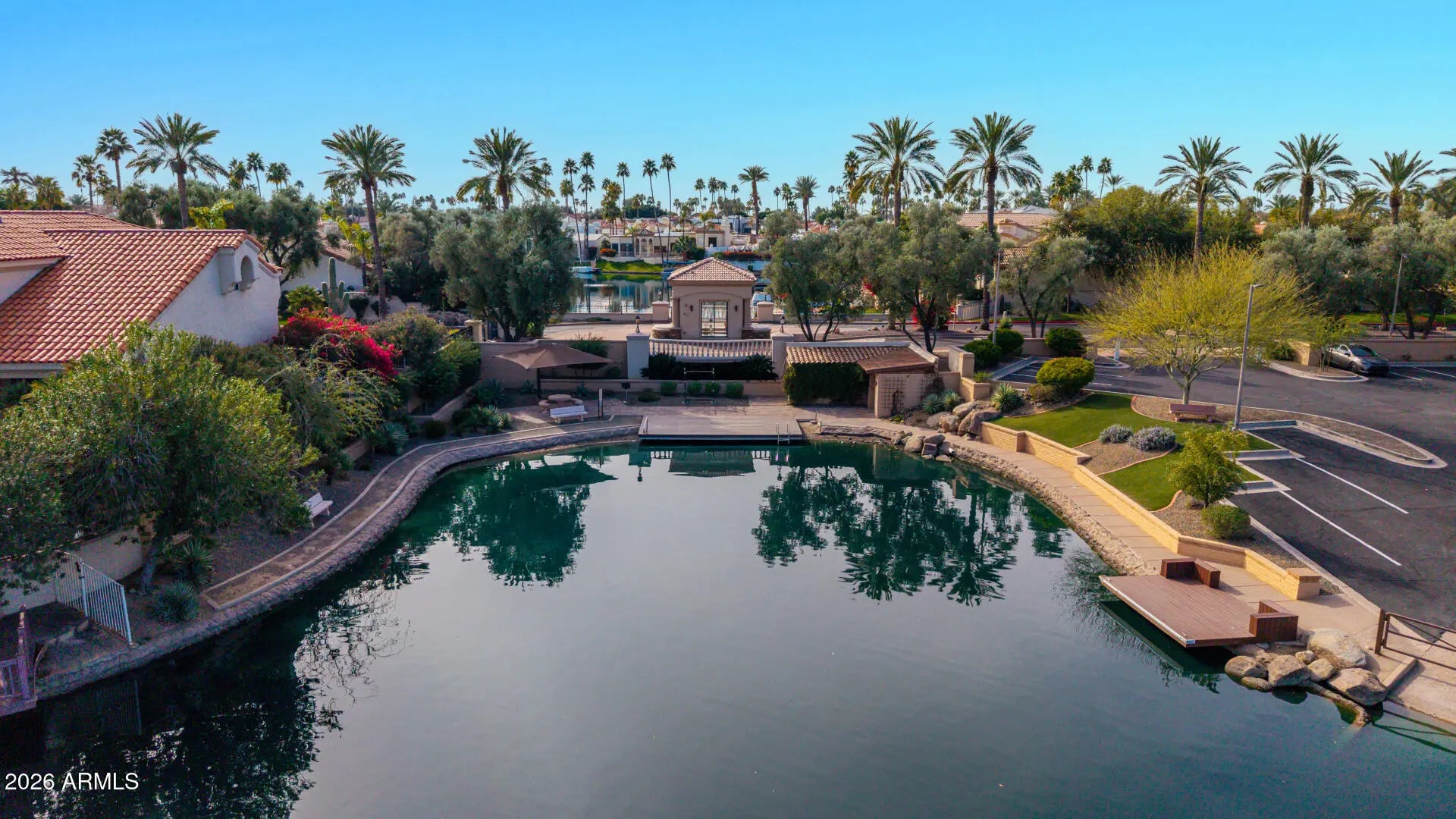 One-of-a-kind Custom luxury waterfront home located in Las Brisas at Scottsdale Ranch in Scottsdale, AZ, featuring Lake Serena views. Professionally designed by LMOH, this residence was completely gutted and rebuilt with a custom space plan that increases livable square footage unmatched within the community. Upgrades include all-new electrical and plumbing, Level 5 wall texture, Kerfed doorways, custom cabinetry and closets throughout, designer lighting, and custom AC vents. Rare features include a true laundry room and proper powder room. Outdoor living offers new landscaping, front and back irrigation, custom lighting, TREX composite decking, and a private gated entrance to the community pool. Located in the Scottsdale Ranch master-planned community near lakes, walking paths, tennis, pickleball, shopping, and dining. Turnkey designer waterfront living in Scottsdale. 3 Bedroom, 2.5 Bath Custom space plan (no other unit like it!) All-new electrical & plumbing Level 5 wall texture + Kerfed doorways Custom cabinetry & closets throughout Proper laundry room + powder room Kitchen island includes Apron Sink TREX decking, new landscaping & lighting PRIVATE gate to the pool (rare + coveted! -it's like having private pool without the maintenance) View of Serena Lake and Fountain