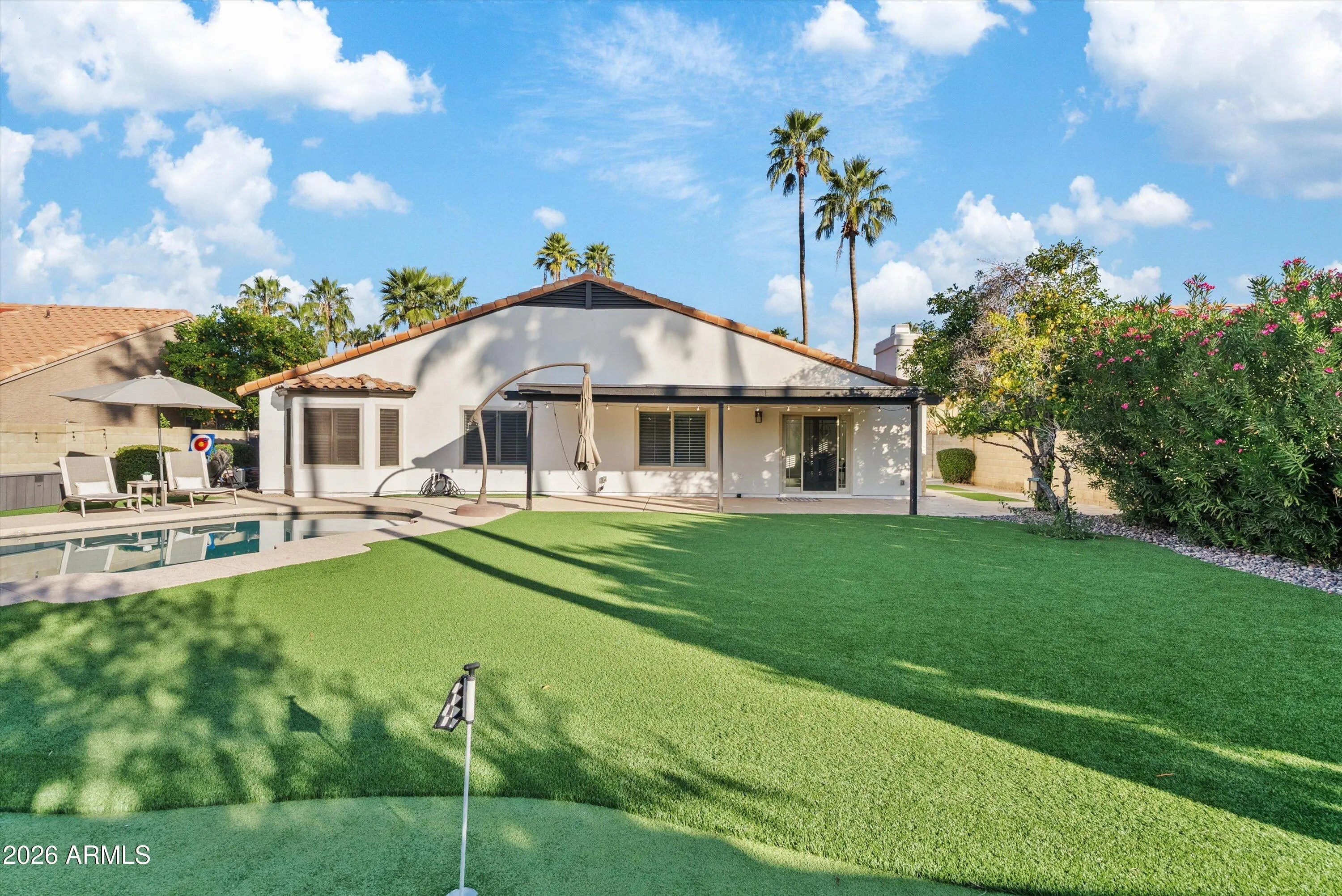 Located in the highly desirable 85254 ''Magic Zip Code,'' this beautifully maintained 3-bedroom, 2-bath home offers 1,980 sq ft of inviting living space with standout indoor and outdoor appeal. Recently remodeled bathrooms and modern style, while the freshly smoothed stucco and newly painted exterior enhance curb appeal. The resort-style backyard features low-maintenance synthetic turf, a putting green, and a sparkling pool, perfect for entertaining or relaxing year-round. Ideally located near Kierland Commons, Scottsdale Quarter, and TPC Scottsdale. Move-in ready