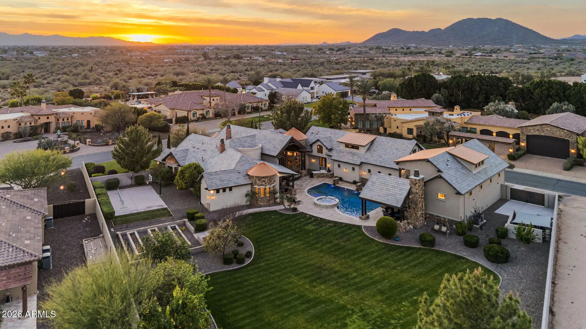 RARE CUSTOM | OVER AN ACRE | RV GARAGE | RESORT BACKYARD | COPPER CREEK ESTATES Rare opportunities like this are seldom available in Copper Creek Estates. Tucked within this highly coveted enclave, this meticulously maintained custom cottage-style residence offers a level of privacy, craftsmanship, and lifestyle rarely found, especially on an exceptional over-an-acre lot. Just shy of 1 million in upgrades throughout, featuring 5,338 sq ft in the main residence & a 1,352 sq ft RV garage with a 360 sq ft raised mezzanine man cave. The home features 5 bedrooms & 7 bathrooms, which includes a beautifully finished loft that functions seamlessly as a game room or flexible living space. Thoughtfully designed & exceptionally cared for, the home showcases a stunning blend of modern updates with warm cottage character throughout. One of the most impressive features is the fully finished RV garage, designed as a true extension of the home. It includes a half bathroom, and an elevated mezzanine lounge, making it as functional as it is visually striking. This incredible space could easily be converted into extra livable space. The entire property is integrated with a Control4 and Lutron smart home system, providing effortless control of lighting, audio, and home automation. Recent owner updates elevate the interiors while preserving the home's timeless appeal. Outdoors, the property transforms into a private retreat with a resort-style backyard, expansive entertaining areas, and a basketball court, all set against the scale and privacy only an acre-plus lot can provide. Homes of this caliber, condition, and setting rarely come to market in Copper Creek Estates. This is a truly special opportunity to own a rare custom residence in one of the area's most exclusive communities.