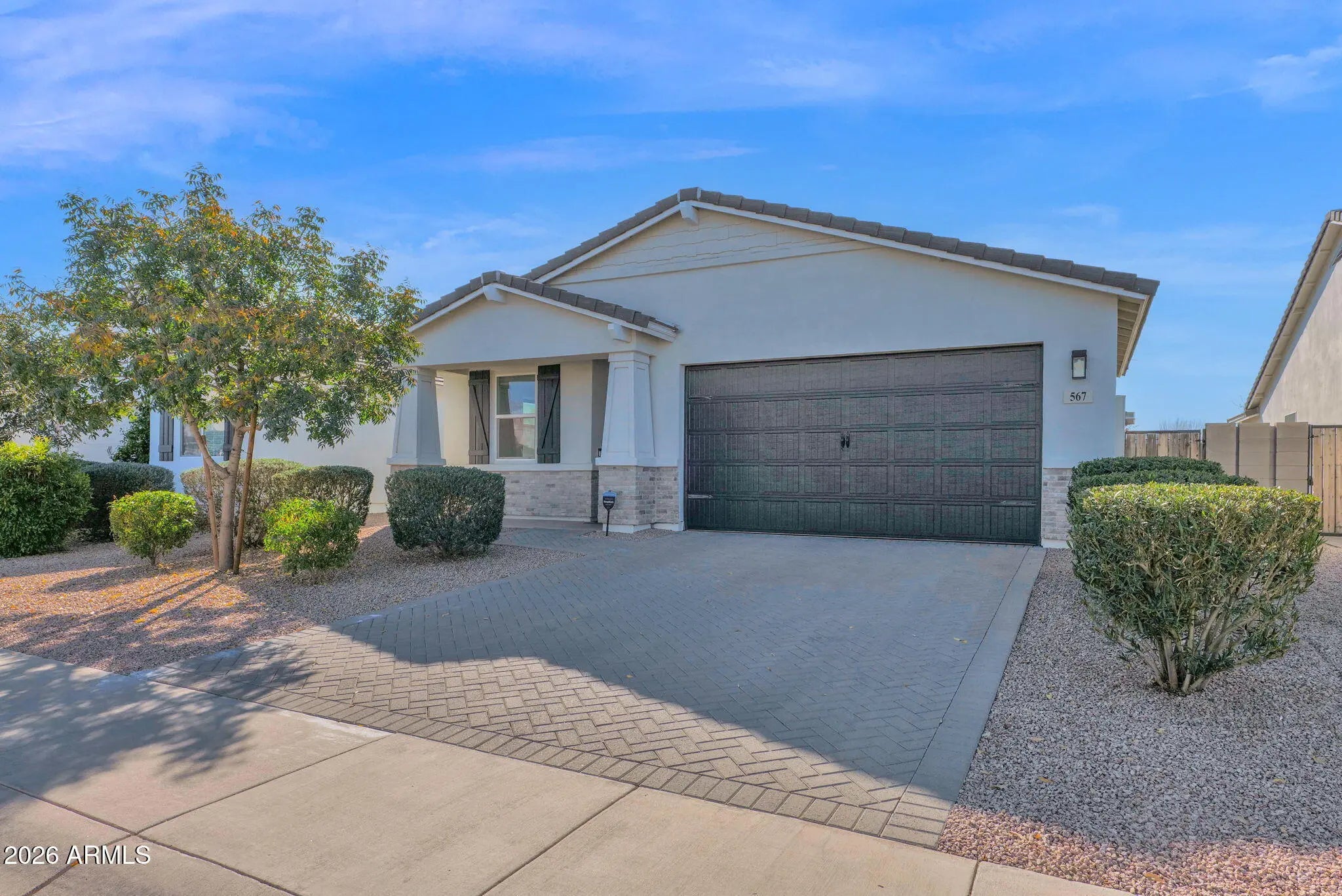 Welcome to this beautifully maintained home in a gated community, near the community play area, with a 2-car garage and desirable north/south exposure. This 4 bedroom, 2.5 bath home offers a functional layout with comfortable living and dining spaces and neutral paint throughout. The kitchen features granite countertops, stainless steel appliances, abundant cabinetry, and a walk-in pantry, along with a breakfast bar for casual seating. The primary bedroom includes a walk-in closet and an en-suite bath with dual sinks plus a separate tub and shower. Enjoy a low-maintenance yard and a covered patio out back.