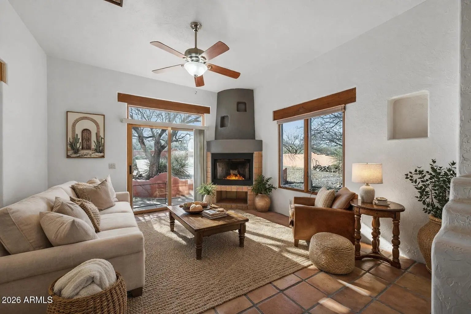 Welcome to your next home sweet home! This inviting 3-bedroom, 2.5-bathroom house in the heart of a friendly community is a gem waiting to be discovered. Imagine waking up in the spacious primary bedroom, outfitted with a fireplace and patio access, privately located on the opposite wing of two additional guest rooms and full bathroom - talk about easy living! Step into the large rustic kitchen designed with custom saguaro rib cabinetry, complete with a central breakfast bar that's perfect for cooking up a storm or just spreading out the morning paper. The open concept layout means you can flow effortlessly from one room to another, with Saltillo tile floors that add a touch of southwest authenticity underfoot. Need a little more space? The bonus room is an ideal retreat for hobbies, a home office, or just a quiet place to unwind. Plus, the enclosed courtyard provides a cozy nook for enjoying the scenery, cup of coffee in hand. Laundry facilities located in the bonus room that leads to the attached 3-car garage with plenty of room for your cars, toys, or extra storage. Situated on an oversized lot, with designated space and hook-ups for your RV, this home offers a bit more privacy and space than most. With central air to keep you cool during those hot summer days and three fireplaces to cozy up next to on the cooler nights, this house is not just a building, it's a place to call home. Outdoors, you're just up the road from Ramsey Canyon - perfect for morning jogs or leisurely evening strolls. When it comes to amenities, you're in luck! A short drive will get you to the best restaurants and shops in town. If you're looking for a place with charm, convenience, and character, look no further. It's not just a house, it's the cornerstone of your next adventure. Let's make this house your home.