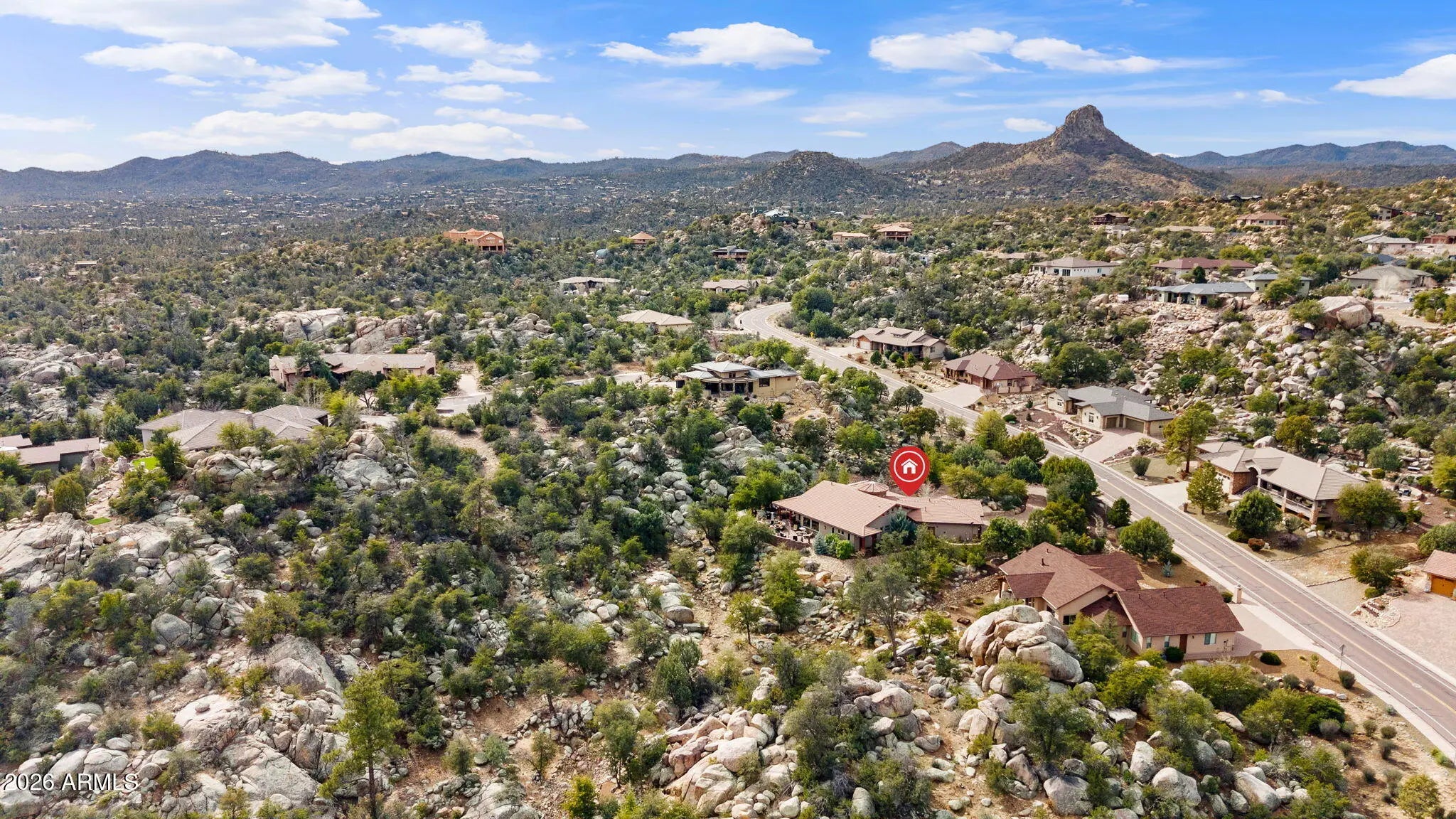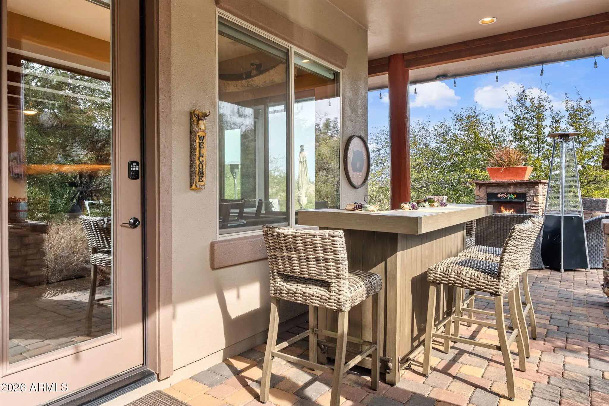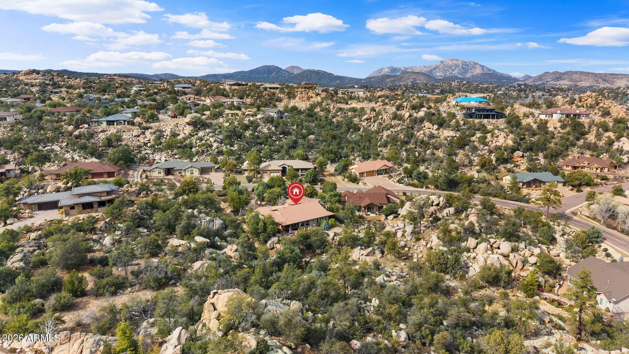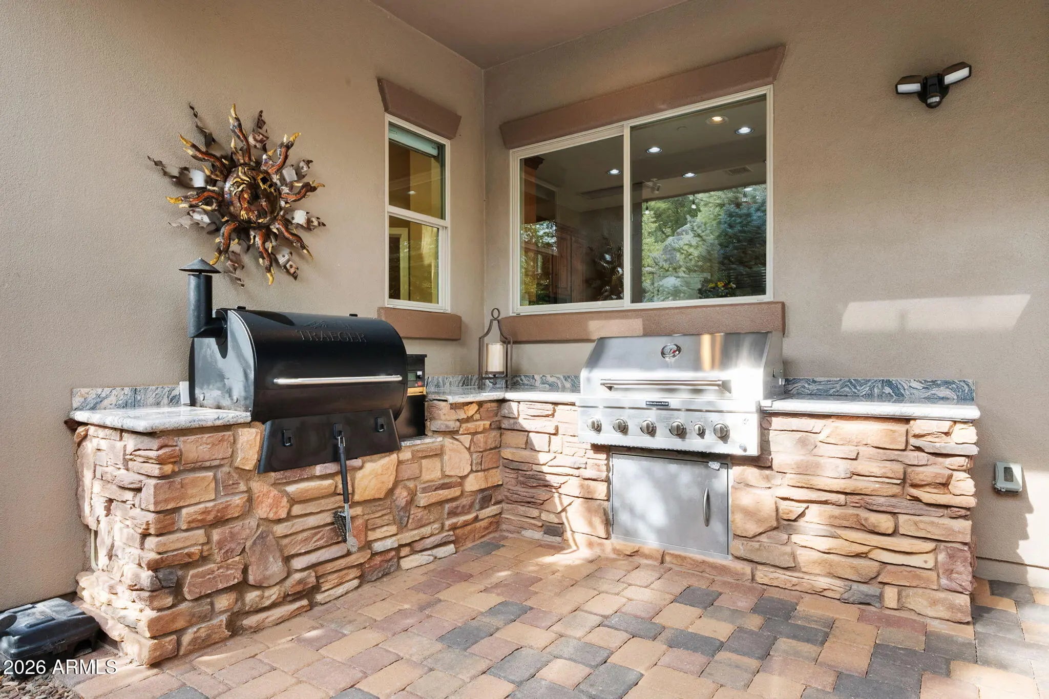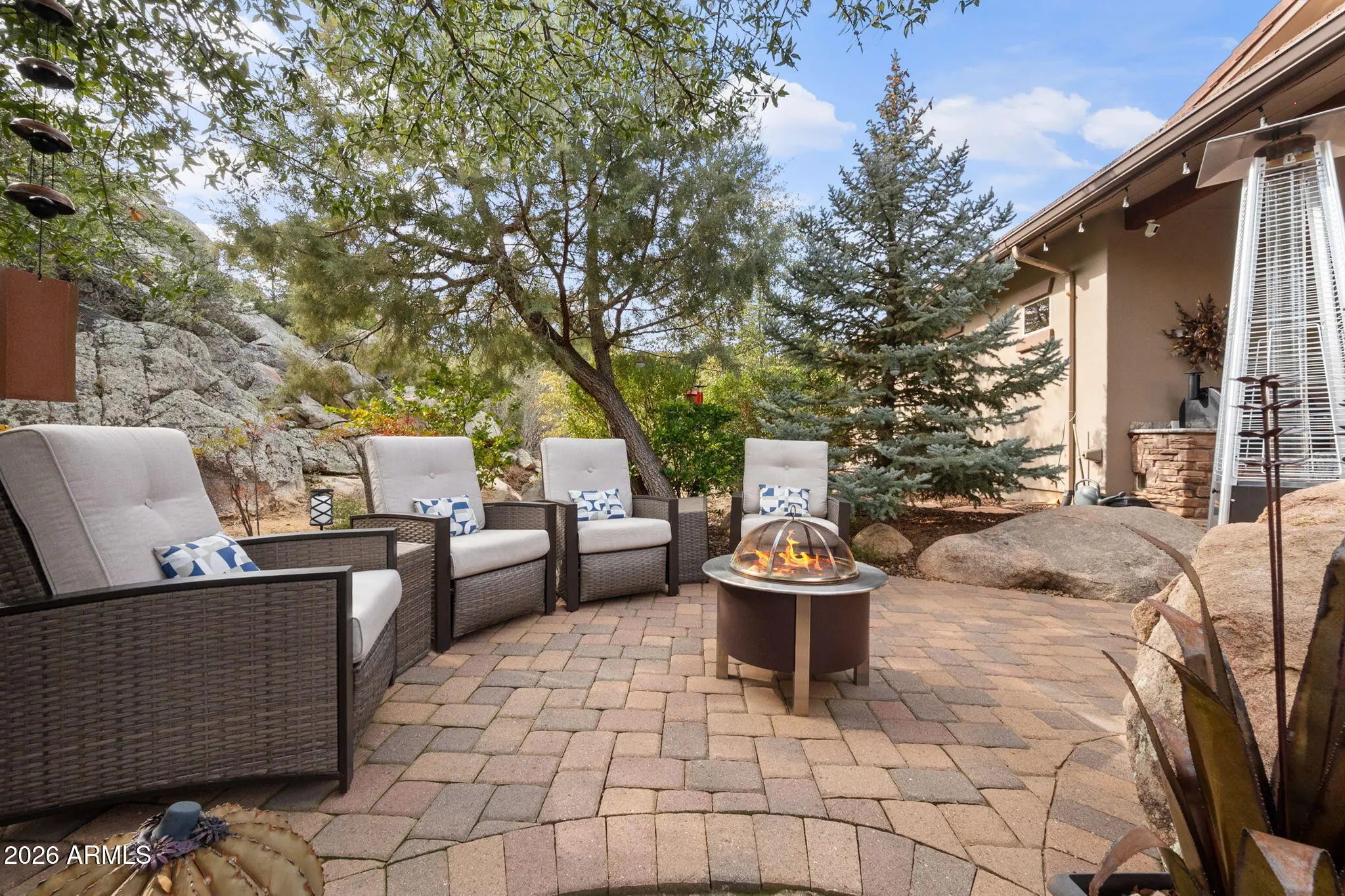 Tucked within The Preserve at Prescott, this exceptional custom home offers a rare blend of privacy, tranquility, and convenience—delivering a peaceful, remote feel while remaining just 5-10 minutes from major shopping, downtown Prescott, and Yavapai Regional Medical Center. Situated on one of the largest homesites in the community (approximately 1.2 acres), the residence is thoughtfully positioned well back from the street, creating unmatched seclusion. A remote controlled entry, a paver-accented circular driveway weaves gracefully around dramatic natural rock outcroppings, setting the tone for the architectural experience that follows. Designed with both everyday living and entertaining in mind, the home features multiple indoor and outdoor gathering areas that seamlessly connect to the surrounding landscape by mature alligator junipers, Colorado blue spruce, indigenous pines, native oaks. Enjoy expansive views toward central Prescott, an inviting outdoor fireplace, and a serene backyard enriched by towering boulders, extensive outdoor lighting, digitally- controlled drip irrigation and a seasonal creek, all contributing to a truly peaceful setting. The outdoor kitchen is a standout feature, offering a traditional, top-of-the-line Kitchen-Aide BBQ with rotisserie and a large Traeger smoker style BBQ equipped with a programmable cooking/cell phone food monitoring feature, an authentic Forni Italian pizza oven, a bar area, and an outdoor refrigeratorperfectly suited for hosting and al fresco dining. Inside, the home makes a striking first impression with a grand entry highlighted by a 23-foot rotunda ceiling, a Canadian-sourced antler chandelier, and a custom Navajo-crafted granite tile floor medallion. The gourmet kitchen anchors the living space with an impressive 30-square-foot center island, surrounded by top-of-the-line built-in appliances, a wine refrigerator, trash compactor, and a double-door Sub-Zero refrigeratorideal for both entertaining and daily use. The primary suite offers a private retreat complete with his and hers walk-in closets, his and her sinks and make-up bar, a spacious shower, freestanding soaking tub, dedicated exercise room, and a cedar lined built-in sauna, creating a spa-like experience at home. A second primary suite offering a private bedroom and bath adorned with quartz finishes, full-size shower and walk-in closet further complement this thoughtfully designed home With a semi-wooded setting, rolling terrain, and a thoughtfully designed custom build, this property captures the essence of The Preserve at Prescottwhere natural beauty, privacy, and refined living come together in one of Prescott's most desirable communities.
