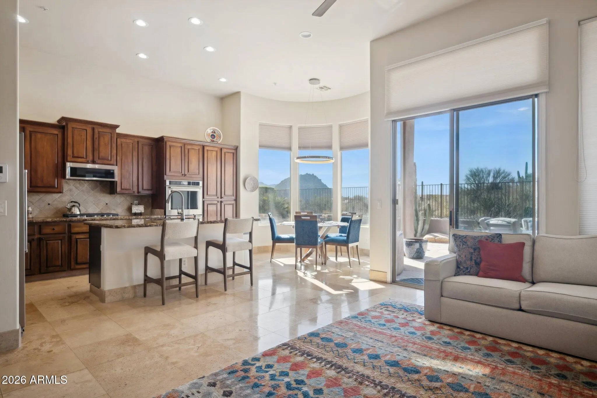 Lovely 3 bedroom 2 bath home with beautiful views of the McDowell Mtns. from your backyard pool! Gated neighborhood in Troon North with south facing backyard. Travertine tile though out the home with the exception of bedrooms have carpet. Kitchen has granite counters, beautiful cabinets, stainless appliances. Roof was redone in 2021 and pool equipment replaced in 2021.