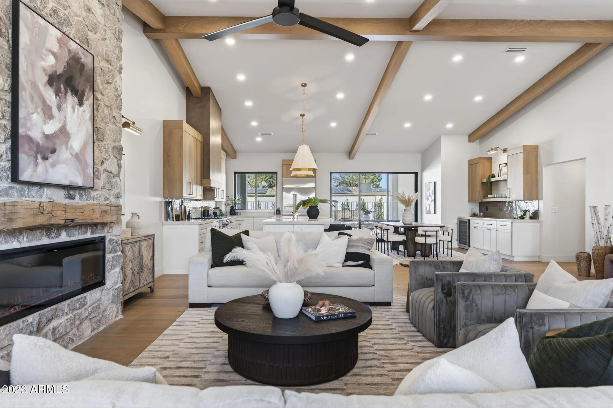 THIS IS NOT A REMODEL, THIS IS A COMPREHENSIVE REBUILD. The property was taken down to only a few original exterior walls and trusses, then rebuilt to modern construction standards. Ceilings were raised in the main living areas, and a 1,200 square foot addition was added, creating a massive primary suite, oversized laundry room, and walk-in pantry—all with 10-foot ceilings. Every major system is brand new: plumbing, electrical, HVAC, roof, framing, foam insulation, drywall, windows, doors, finishes, landscaping, and pool. Designer finishes throughout, vaulted ceilings, 36'' gas range, 42'' built-in fridge, 14ft island, 3 car garage, stone accents inside and out. 5 bedrooms plus dedicated office, this home checks all the boxes. Fantastic location right near the reimagined PV entertainment district, with countless dining and shopping options within walking distance.