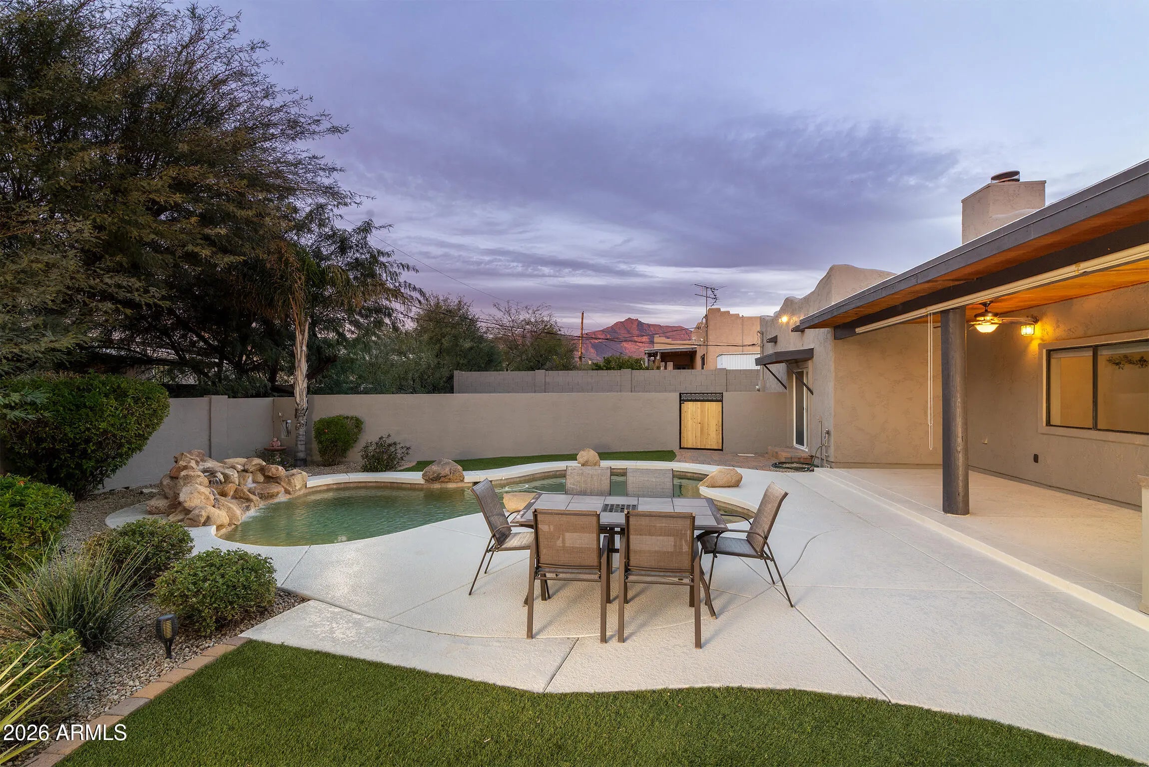Tucked into a desirable no-HOA neighborhood in the heart of Gold Canyon, this property offers incredible space and flexibility. Large private lot with RV parking on two sides, boat parking, two RV gates, attached carport, and 220V power in the garage. Enjoy true outdoor living with a beautiful private pool just steps from the home, built-in BBQ, expansive cool decking, and synthetic grass areas perfect for entertaining. The open floor plan layout creates a seamless indoor-outdoor flow ideal for gatherings or relaxing evenings. New bedroom carpet, updated walk-in master shower, wood burning fireplace and more! Rare setup with room for all your toys while still offering privacy, functionality, and convenience close to dining, golf, hiking, off roading and all that Gold Canyon has to offer!