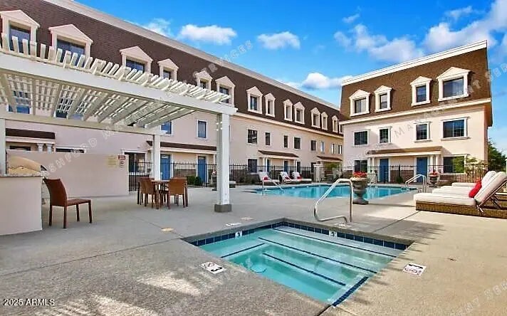Experience luxury living in this stunning three-story split-master home in the gated Rosedale community. Enjoy resort-style amenities including a pool, heated spa, BBQ area, and scenic mountain and city light views. Inside, an open layout with 11-ft ceilings and large windows fills the home with natural light. The gourmet kitchen features a spacious island, walk-in pantry, built-in microwave, and upscale GE stainless steel appliances. Both master suites offer walk-in closets and full en-suite baths. Elegant finishes include tile, hardwood, and carpet flooring. Additional features include an in-unit washer and dryer, private two-car garage, and ideal north/south exposure. Close to shopping, dining, and SR 51 access.