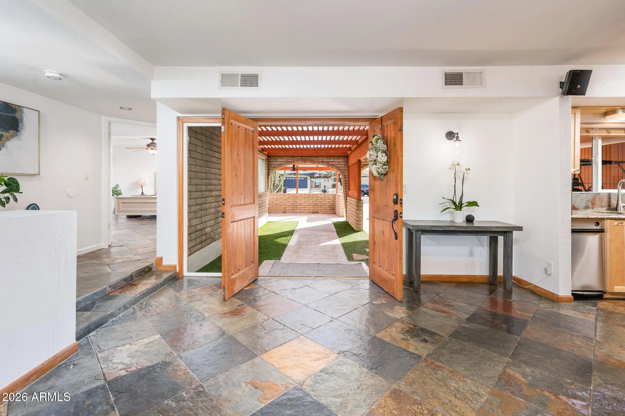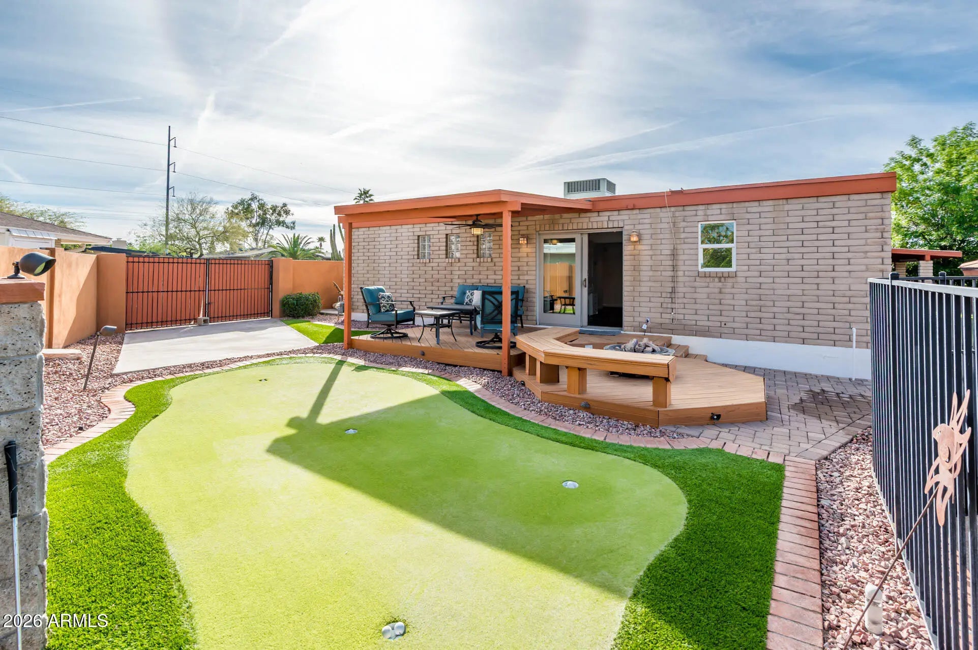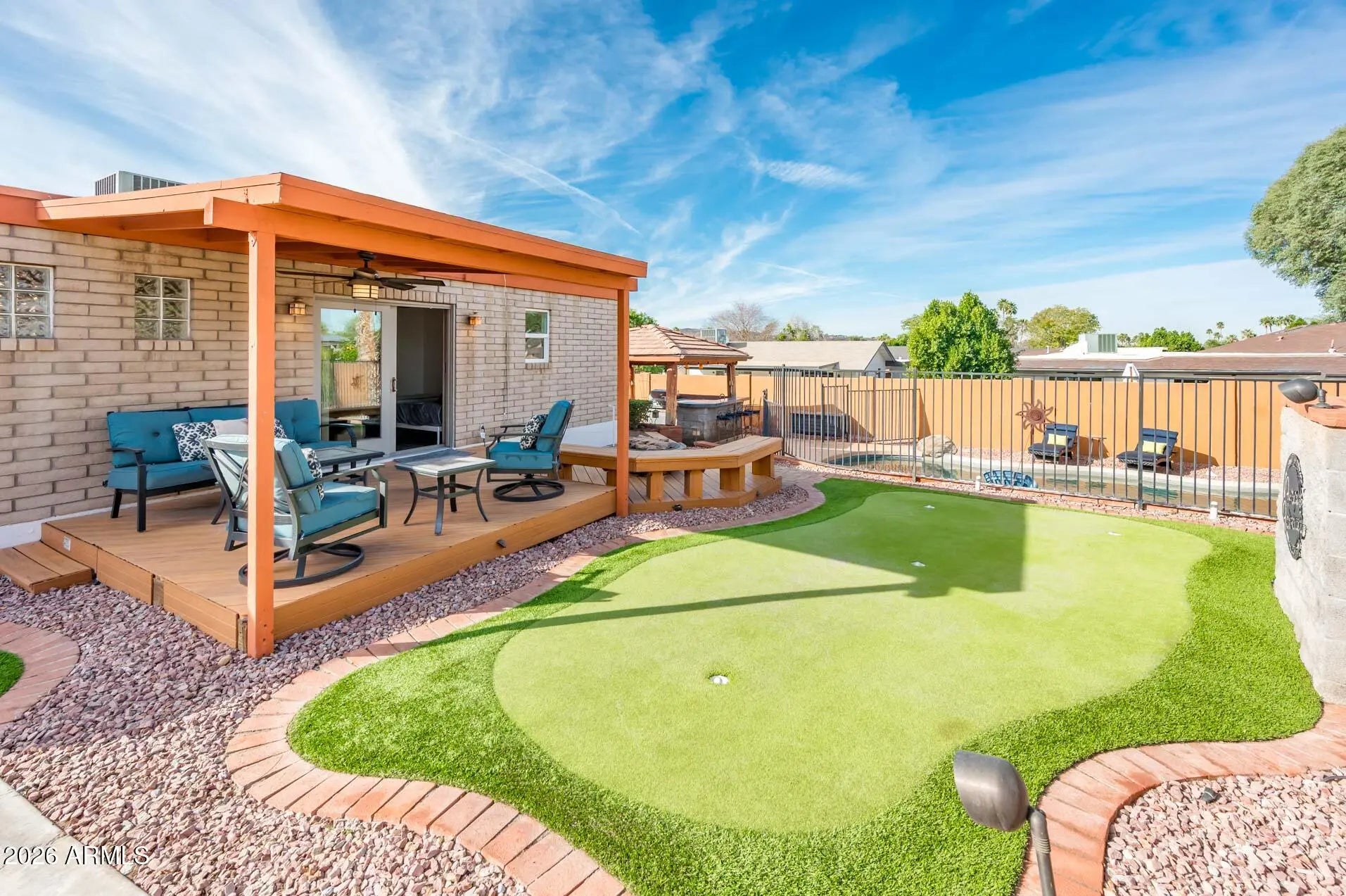 Welcome! This home offers exceptional indoor-outdoor living on an elevated lot in a desirable Moon Valley setting. The kitchen features wood cabinetry, stainless steel appliances, a gas cooktop and walk-in pantry with beverage refrigerator, opening to spacious living & dining areas with built-in buffet cabinetry. The primary suite & bedroom 2 both enjoy sliding-door access to the outdoors. Step outside to a covered patio, raised & covered deck, putting green, grass area and pool with waterfall. A ramada with built-in BBQ, sink, spot for outdoor refrigerator, counters & seating creates an ideal entertaining space. More highlights: new windows, RV gate, mature lemon tree, palms, ample storage closets and area, covered front patio and artificial turf entry. This is Arizona living!
